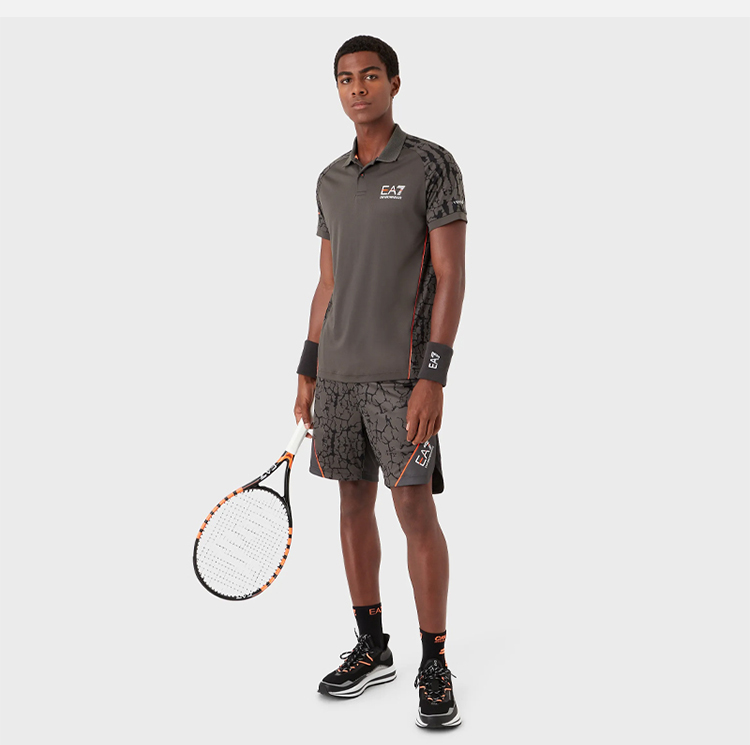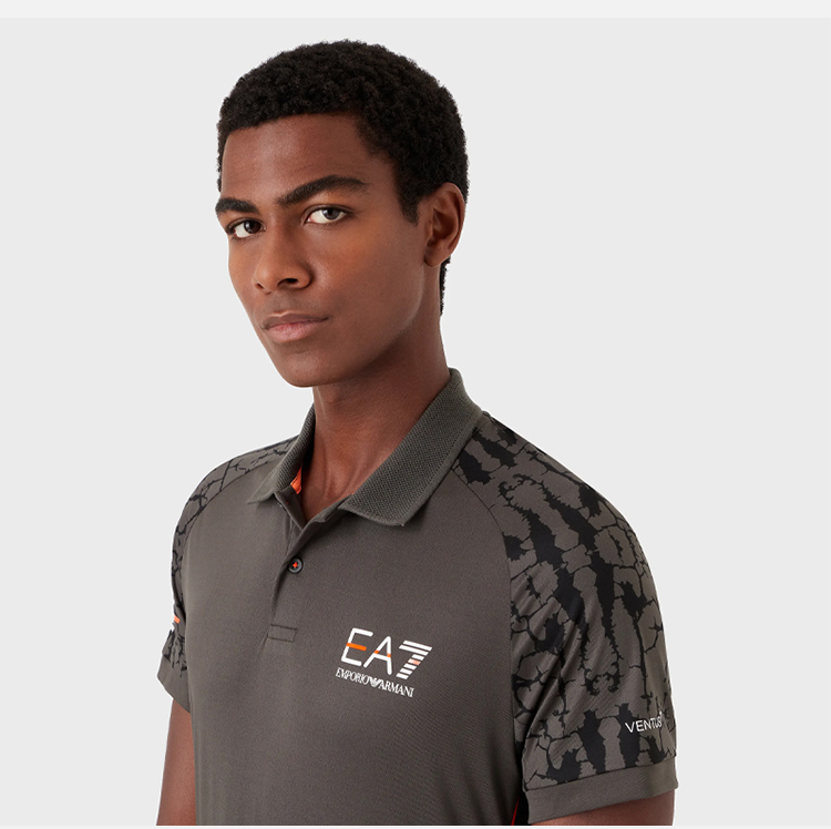 EMPORIO ARMANI EA7 阿玛尼 男士字母徽标印花短袖polo衫 深棕色 3RPF23 PJPCZ 1997