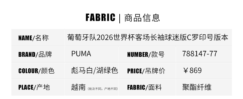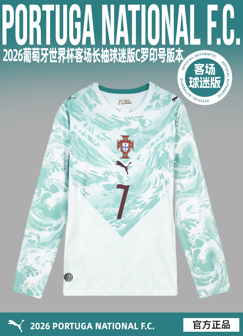 SFS彪马2026世界杯葡萄牙客场长袖球迷版C罗印号球衣 788147-77