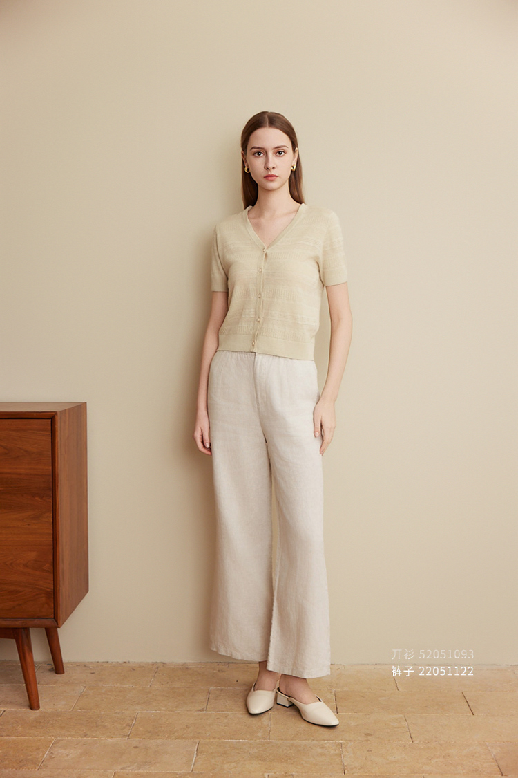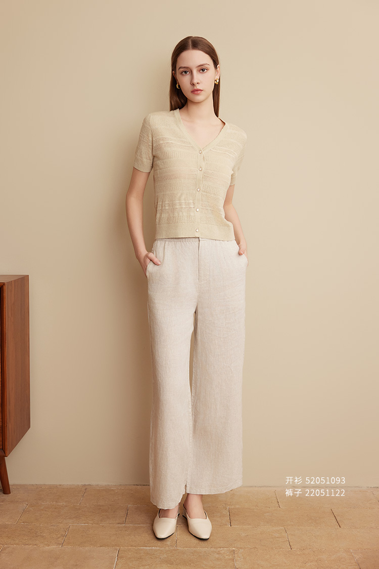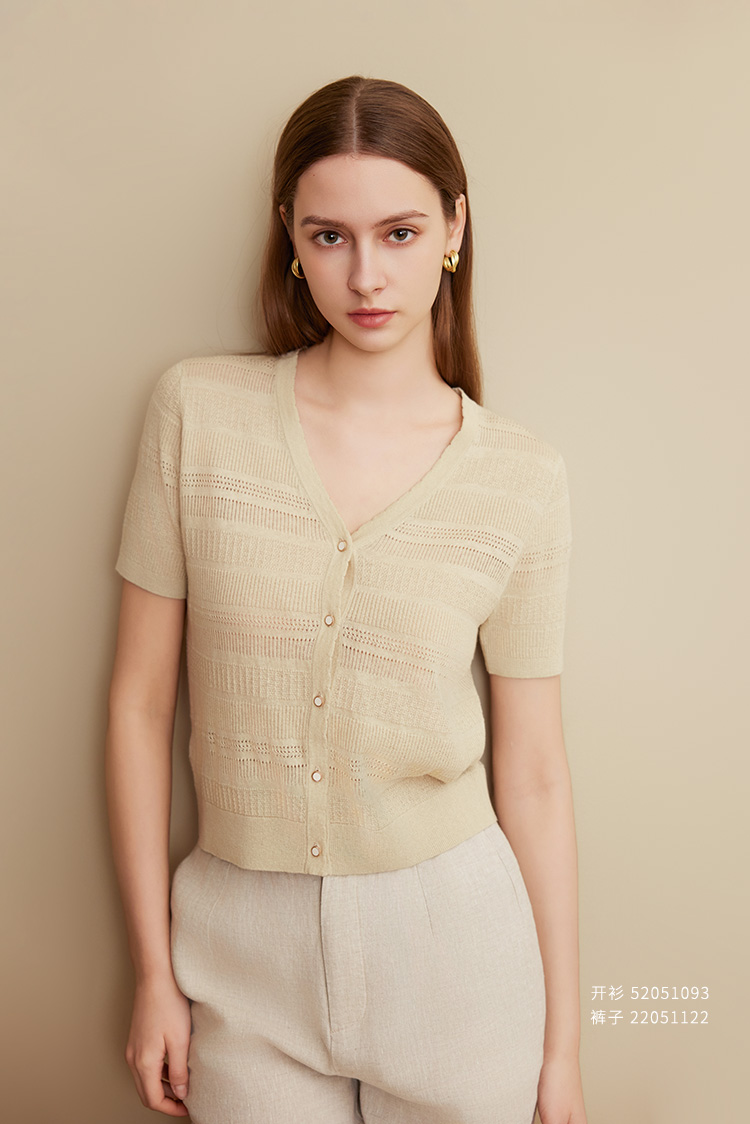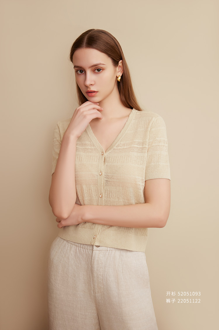【棉麻镂空针织开衫】25年夏季新品女士V领短款薄款针织小外套