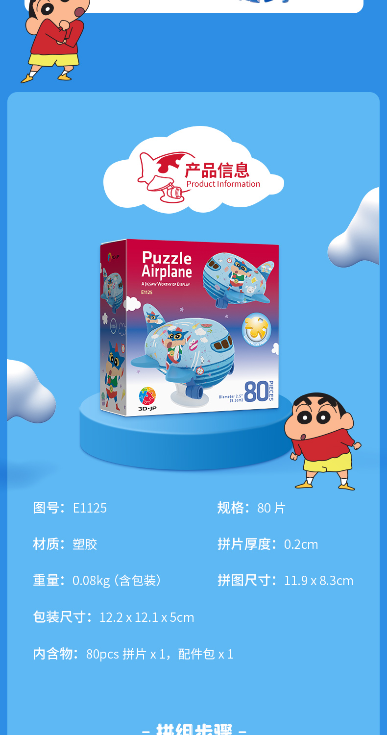 80片 飞机塑料拼图 E1125 蜡笔小新-动感飞天
