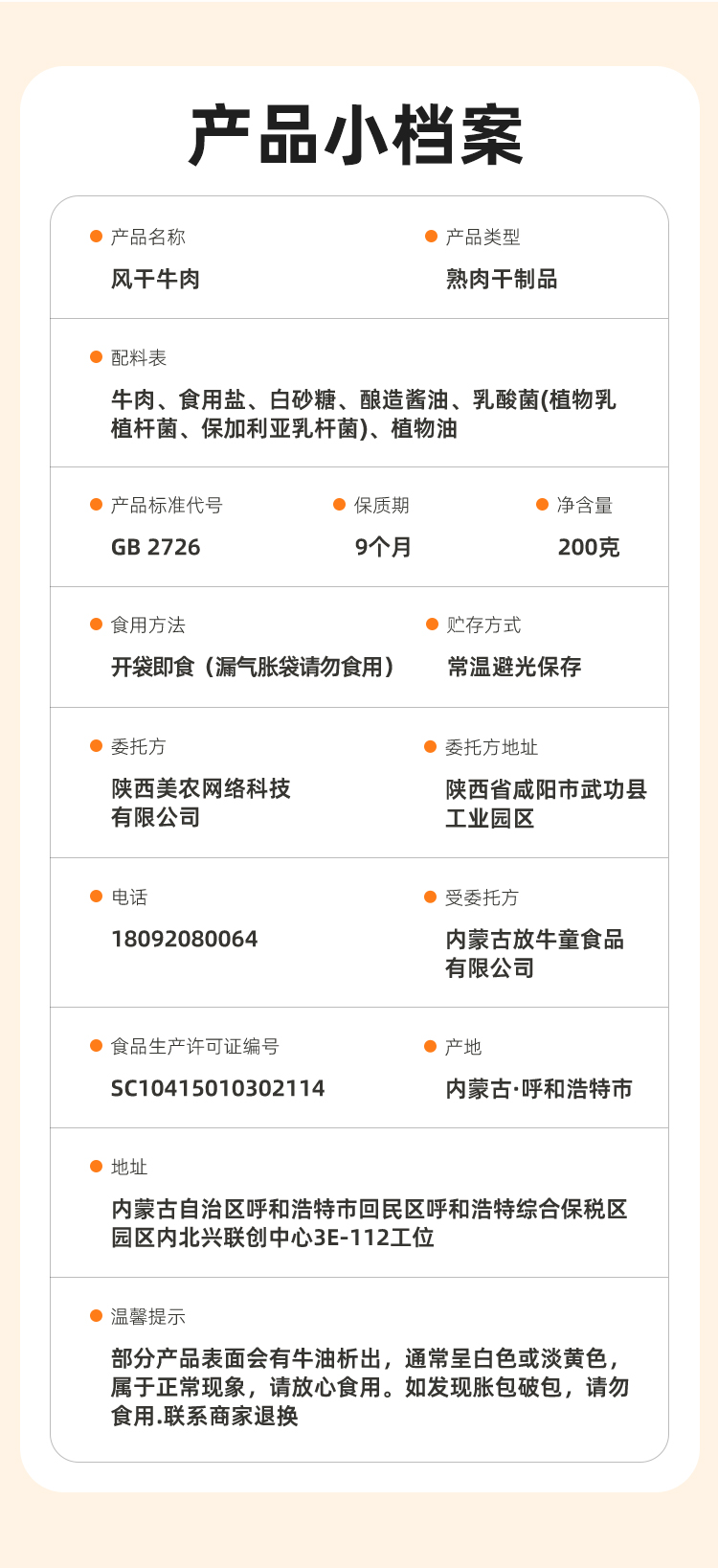 西域美农 正宗内蒙古益生菌手撕牛肉干200g 双段控温风干 轻弹不柴口 开袋即食 48小时发货