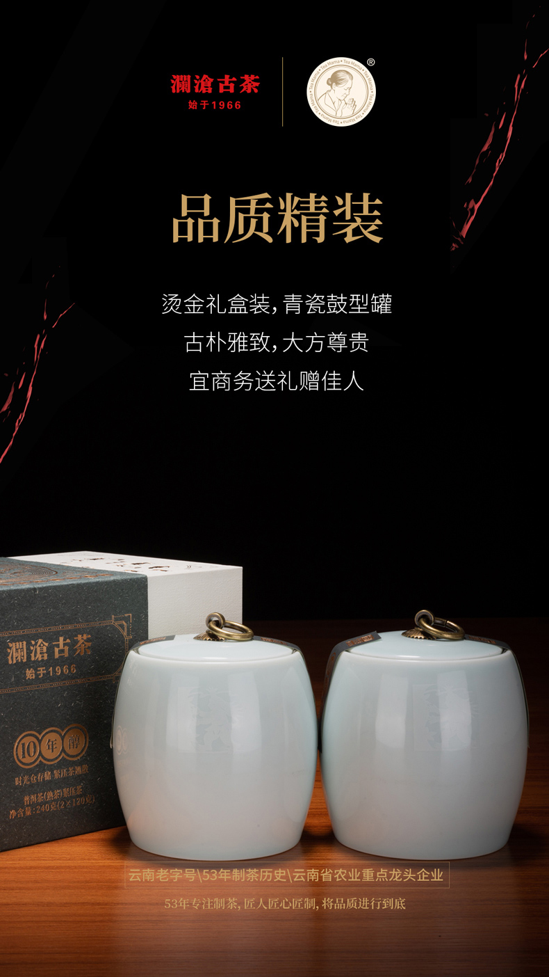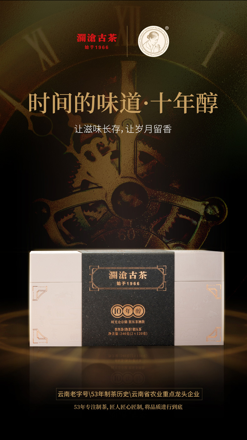 澜沧古茶时间的味道10年醇普洱茶熟茶饼茶云南茶叶熟普礼盒装240g