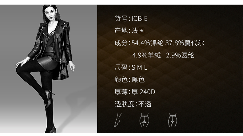 Gerbe格伯 法国进口女士羊绒连裤袜 女丝袜 ICBIE 240d