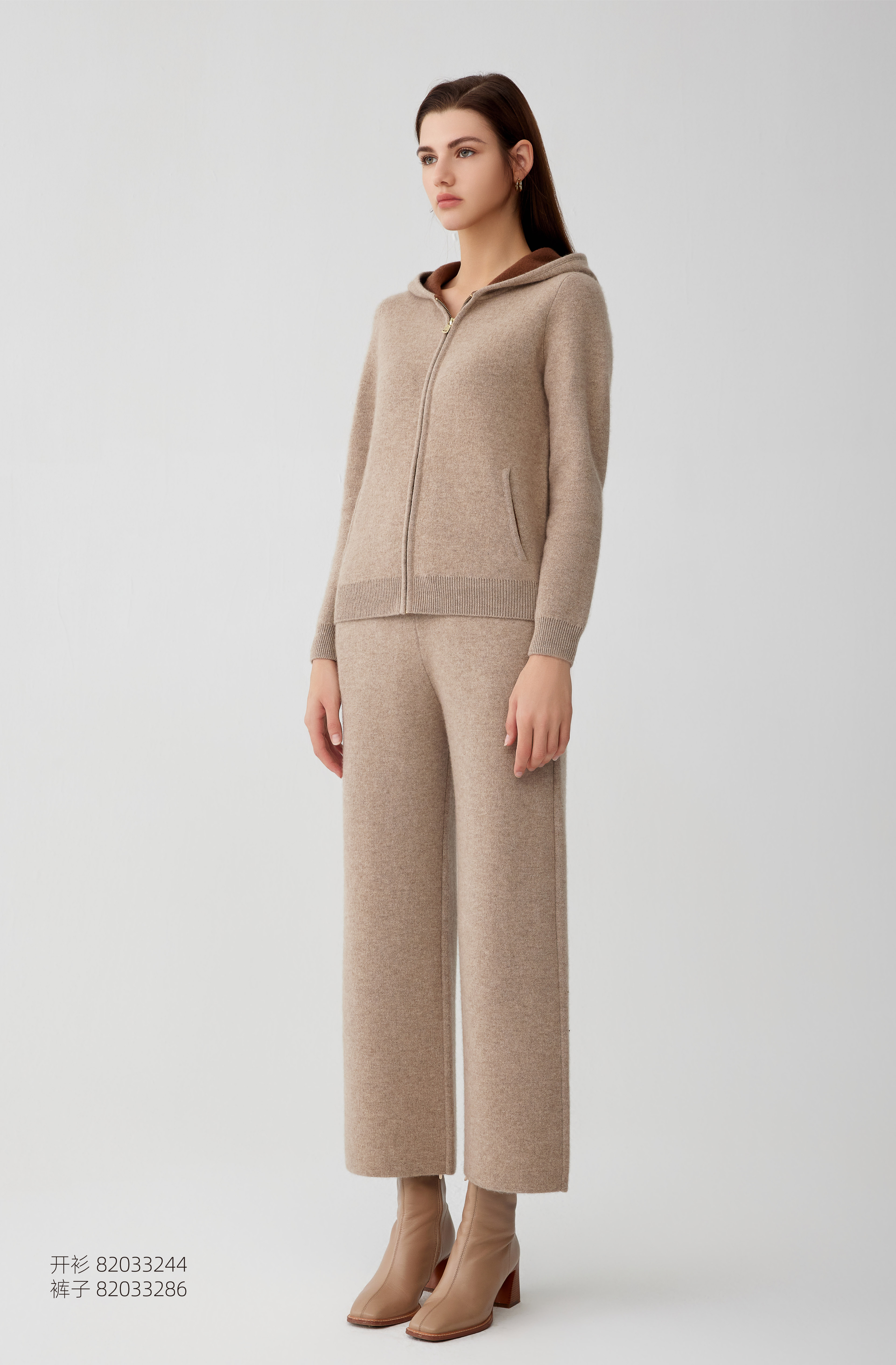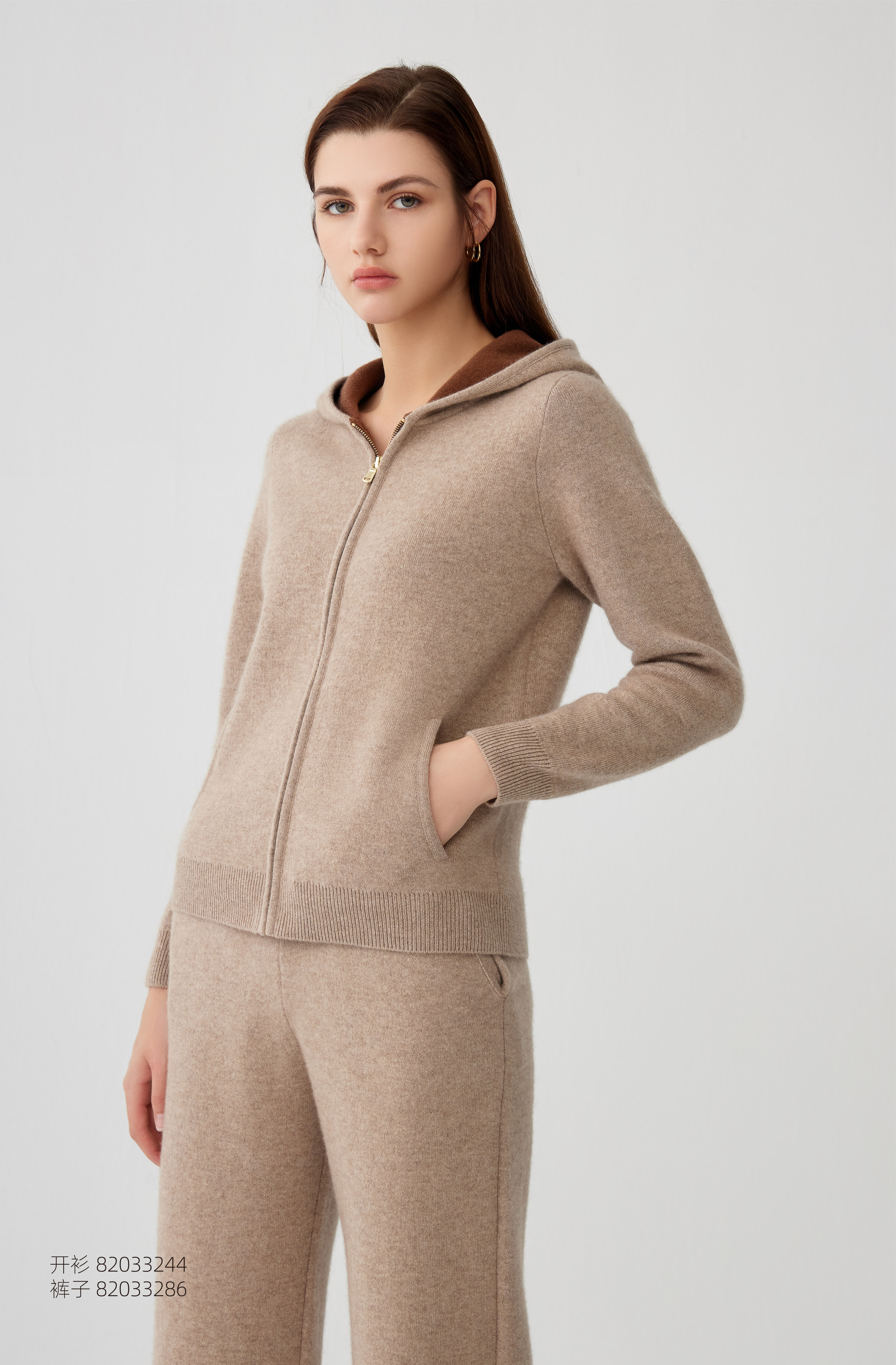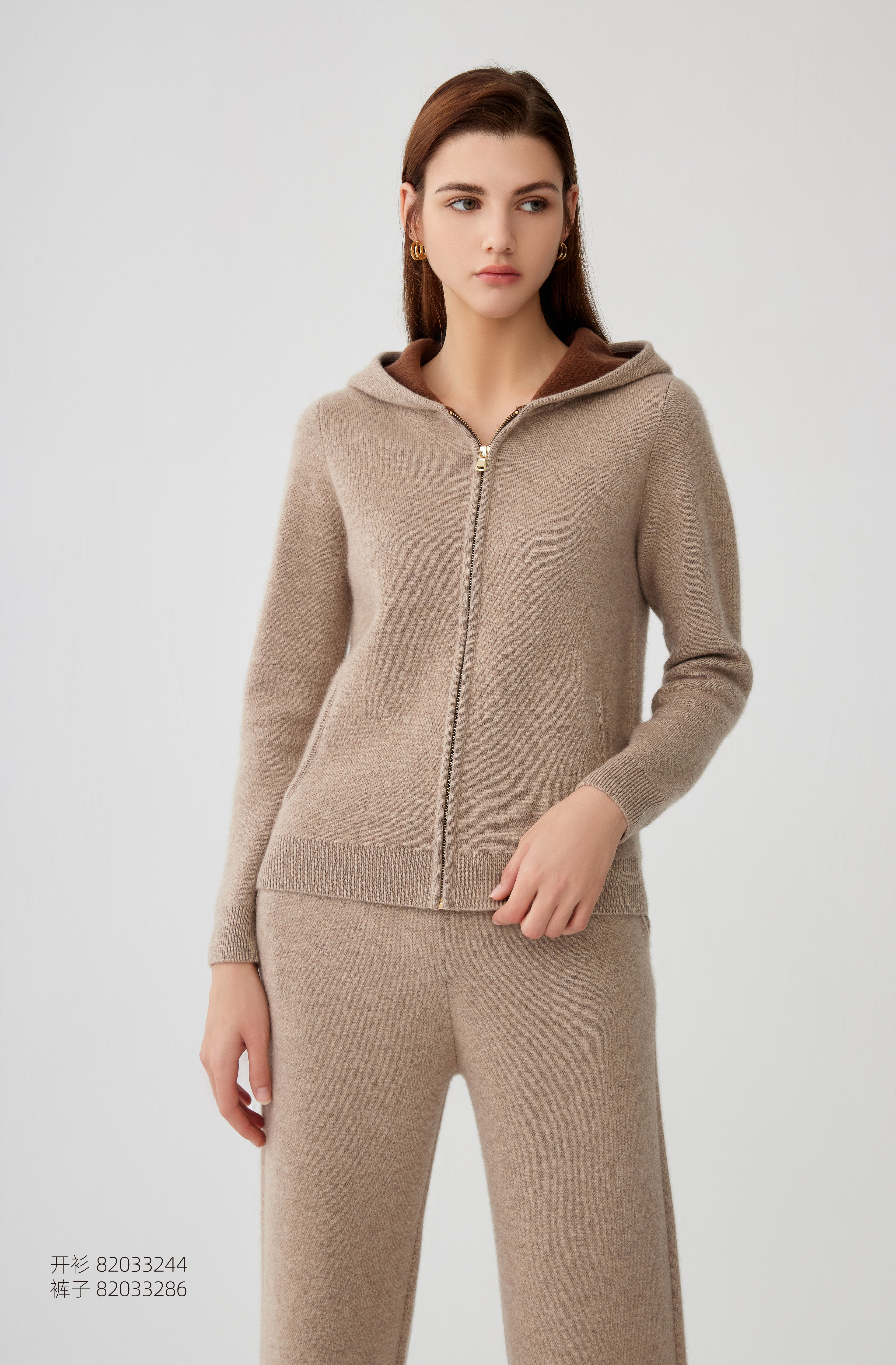 【纯羊绒连帽运动外套】羊绒世家秋冬新品女士高织保暖运动针织外套