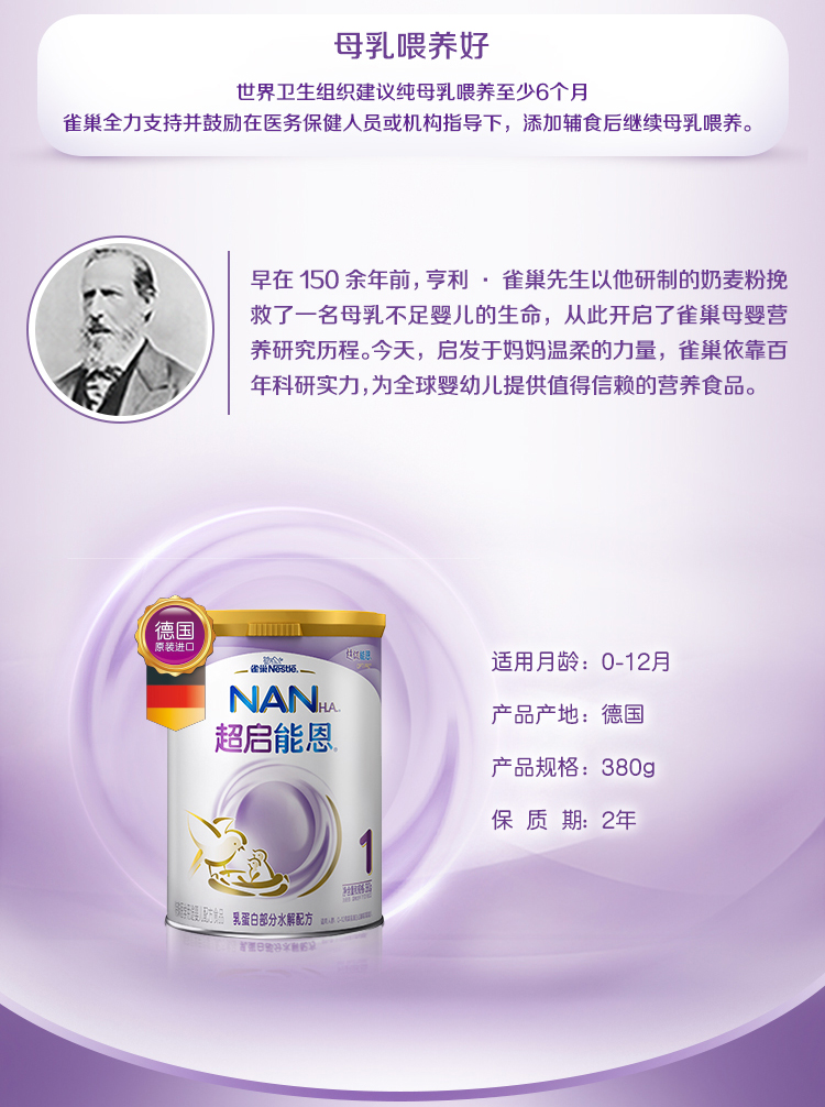 【小罐】雀巢超启1段进口婴幼儿牛奶粉380g罐装/QUC-56942