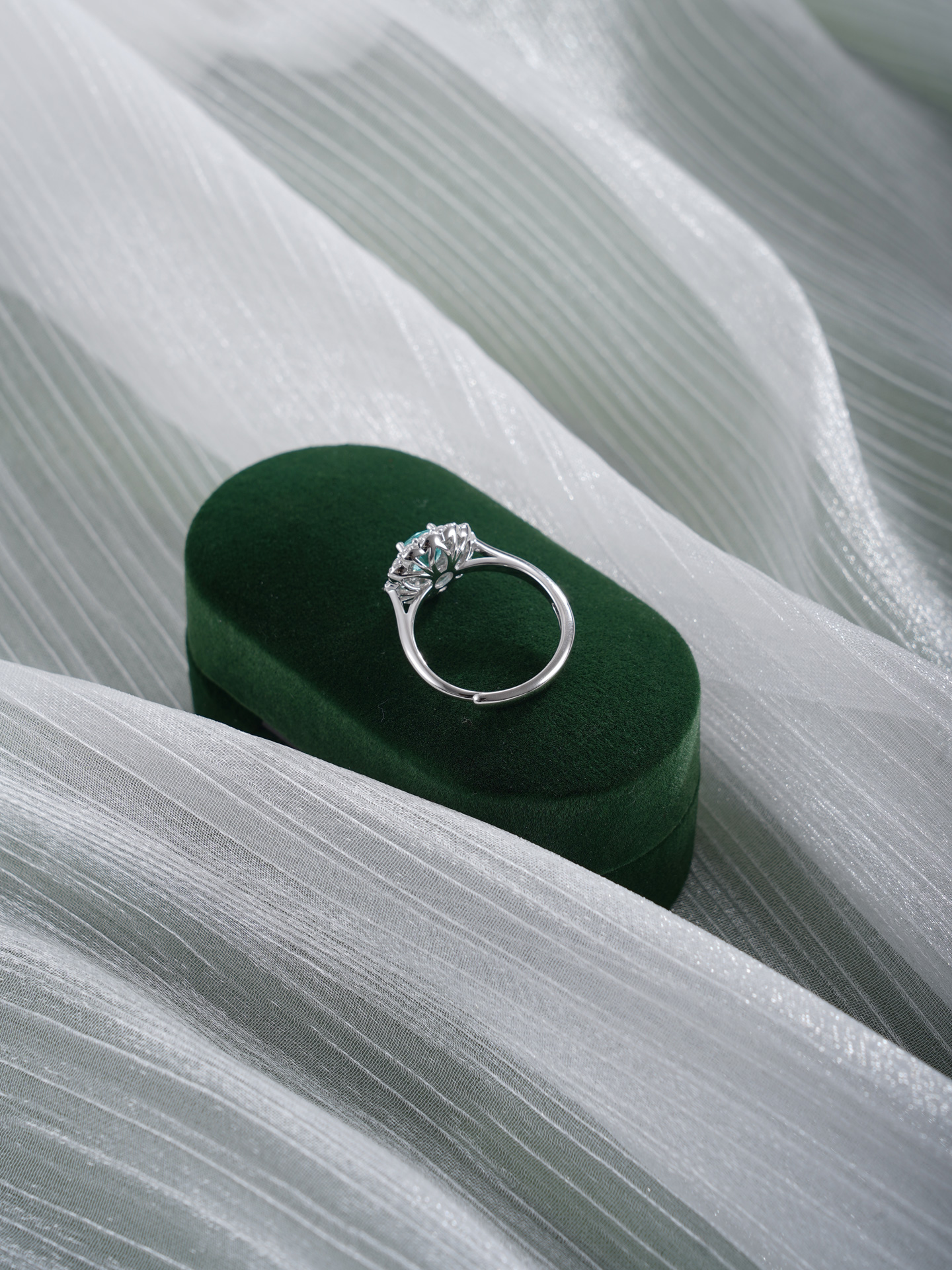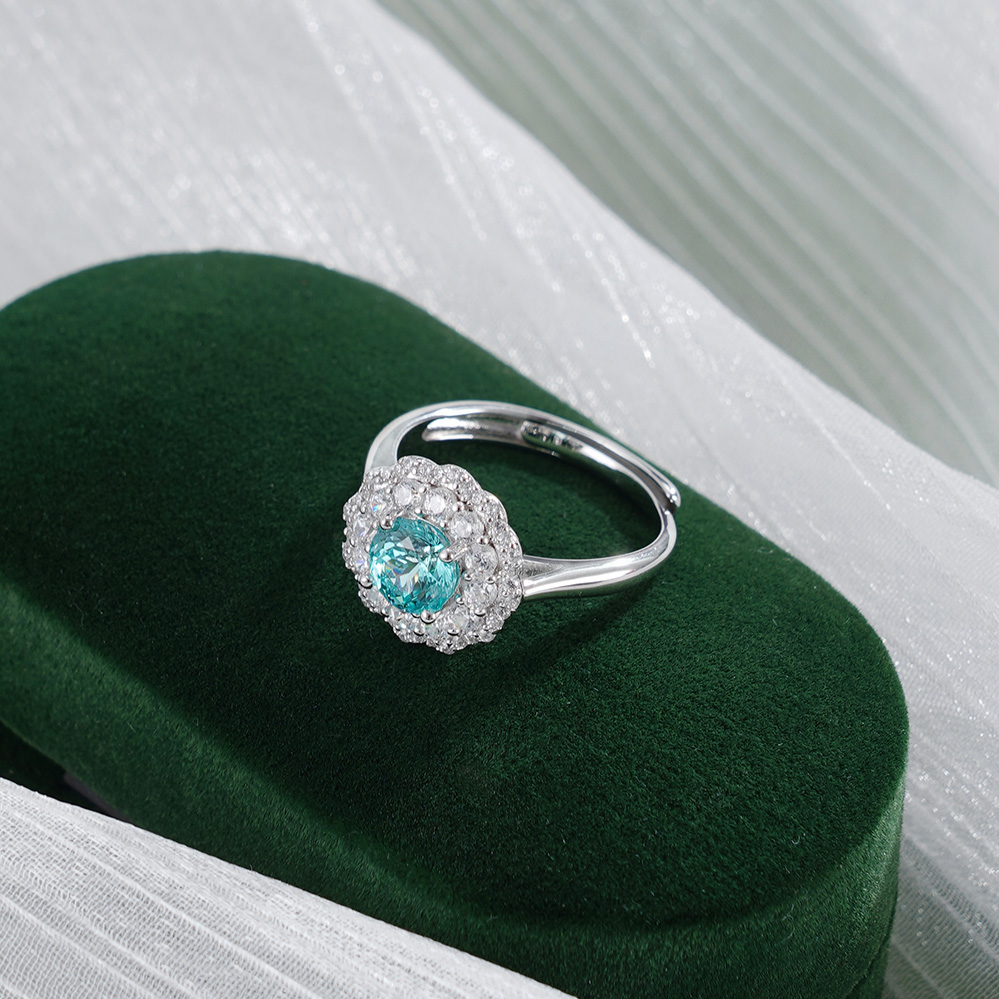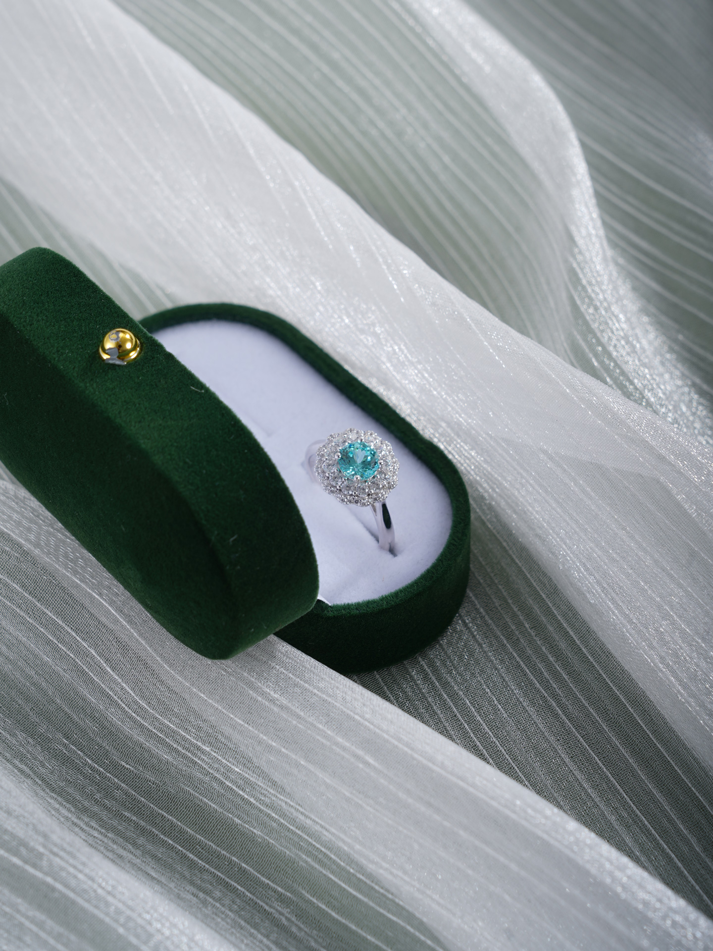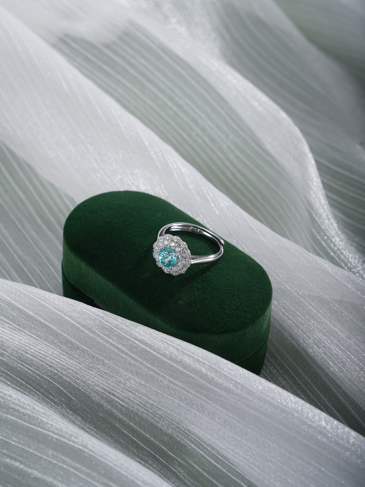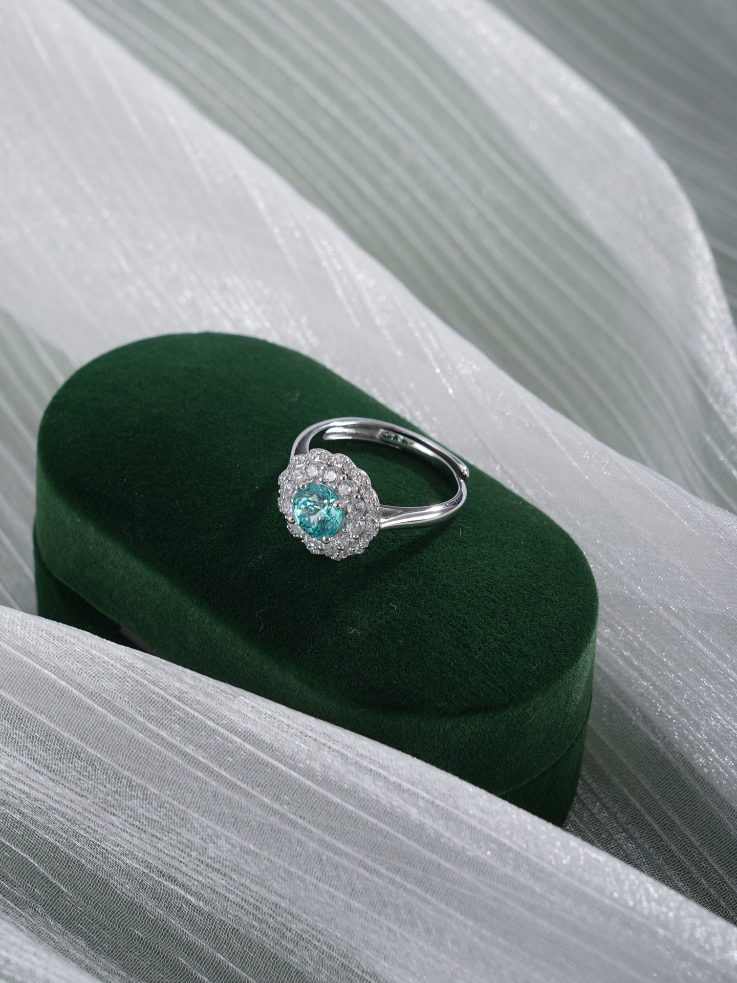 【寓意】:采用S925纯银为戒托,以锆石勾勒花瓣柔弧,碧玺镶嵌,如晴空下涟漪凝成的花影,象征璀璨光华似生命长河,永驻流年。