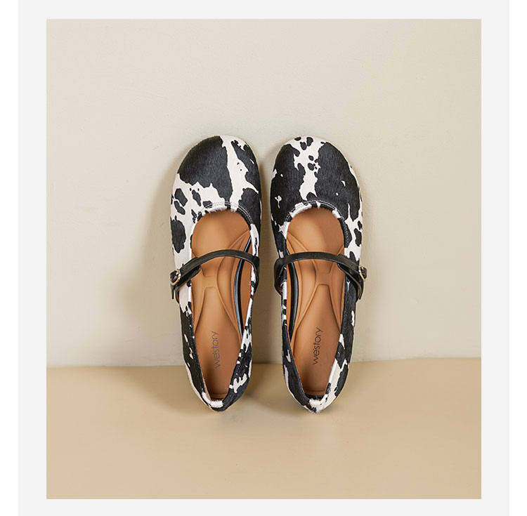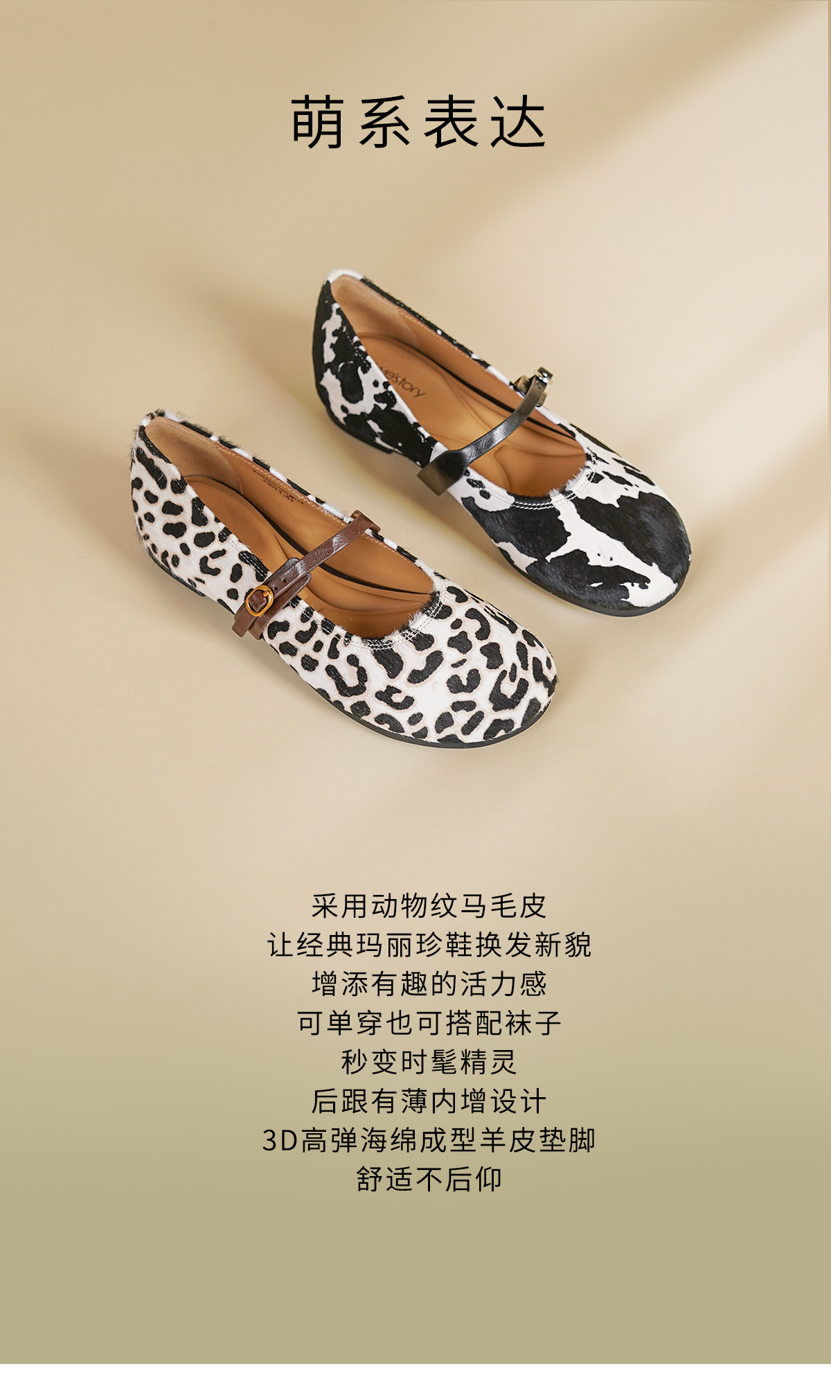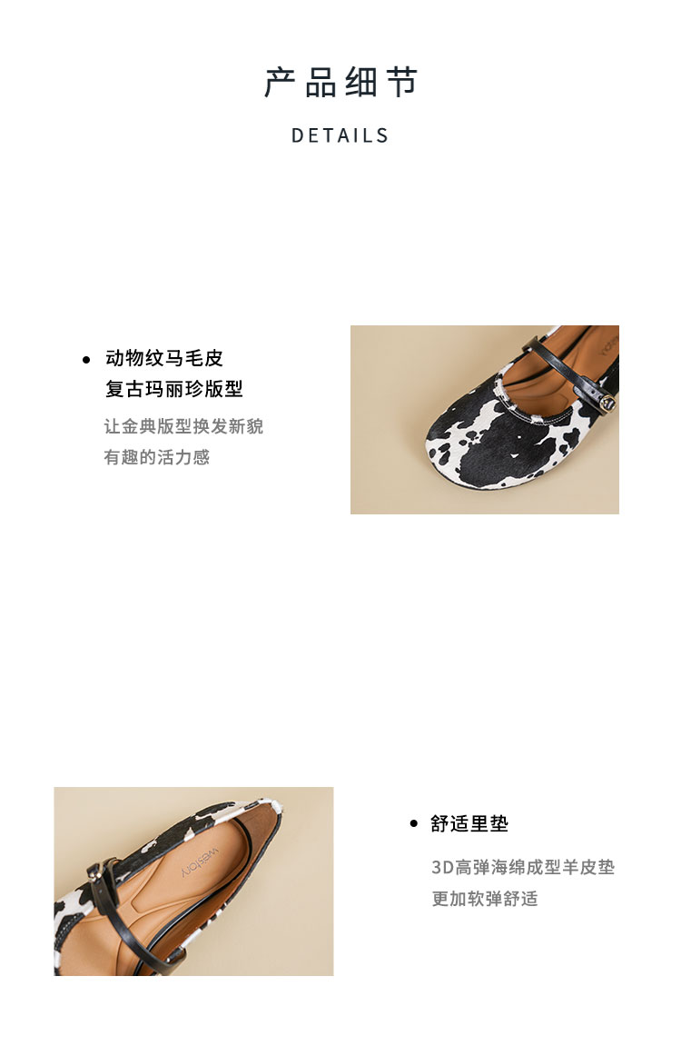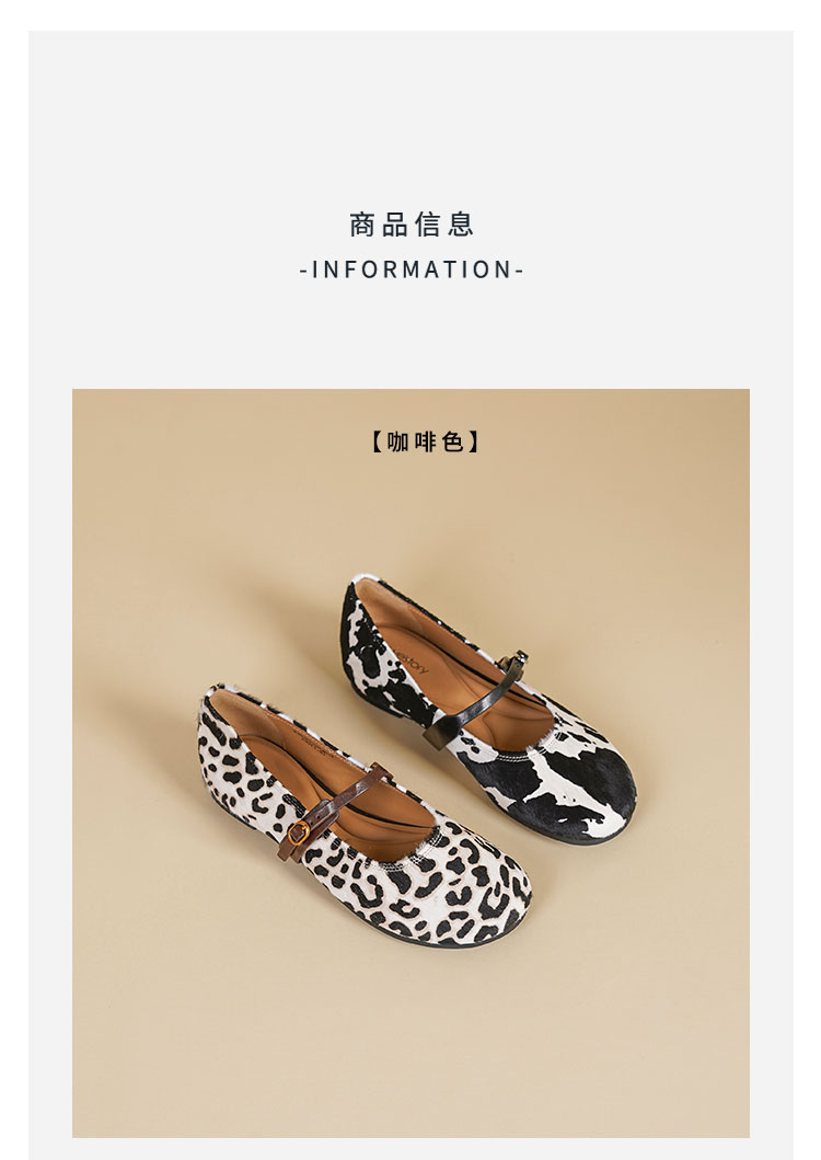 Westory2026年春季圆头平底豹纹马毛皮休闲浅口鞋玛丽珍单鞋W26AE51001