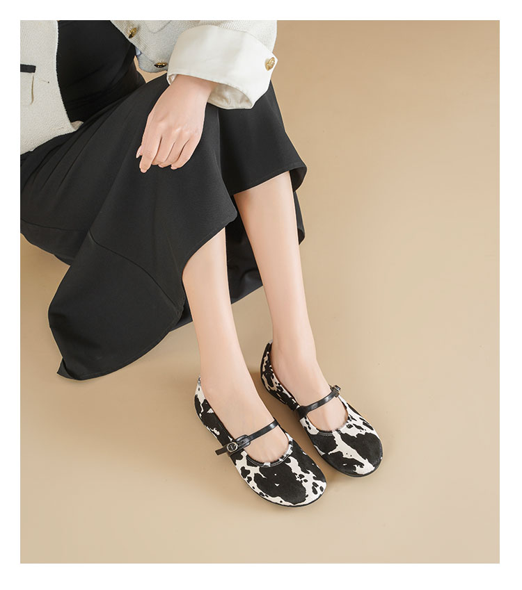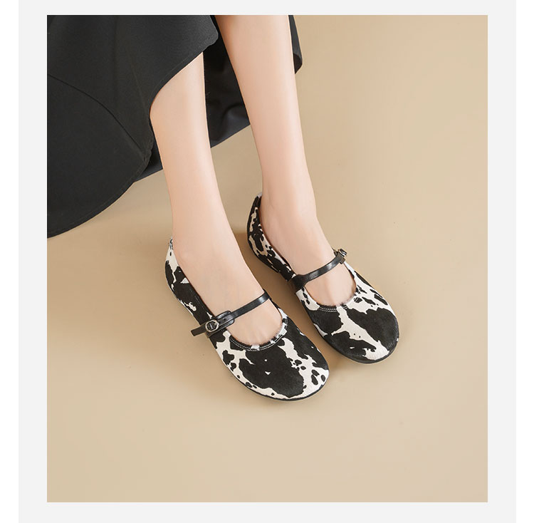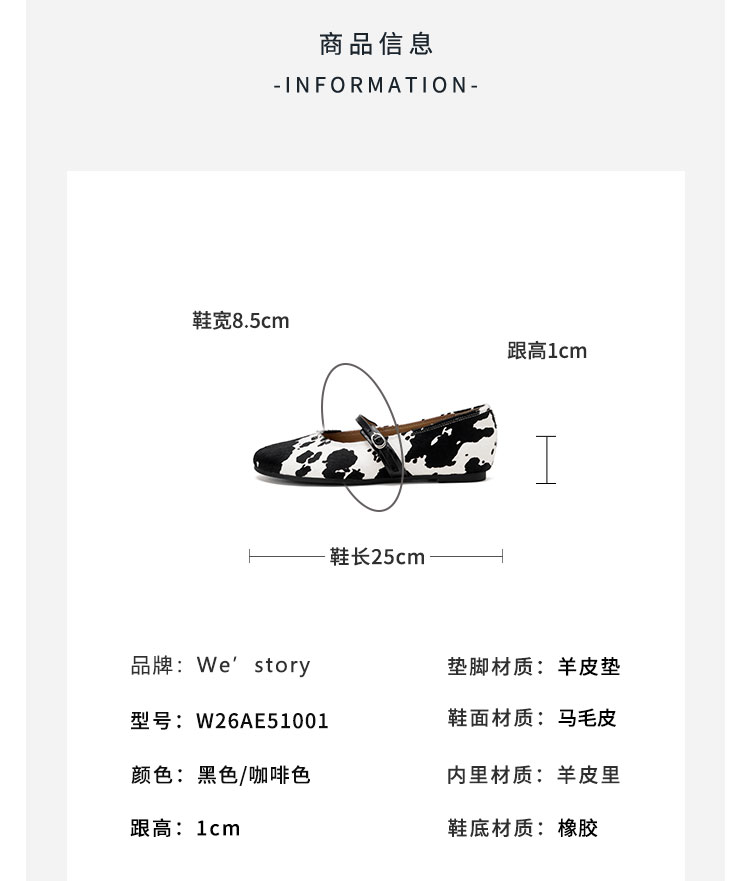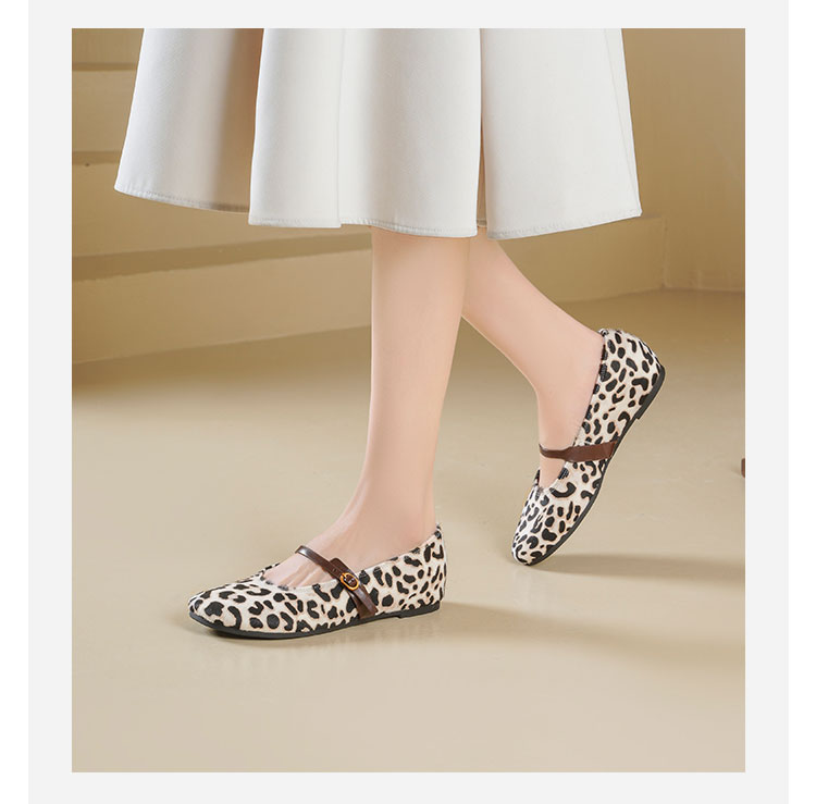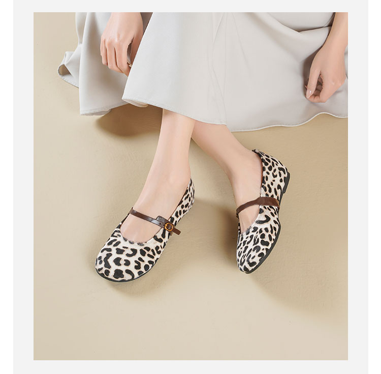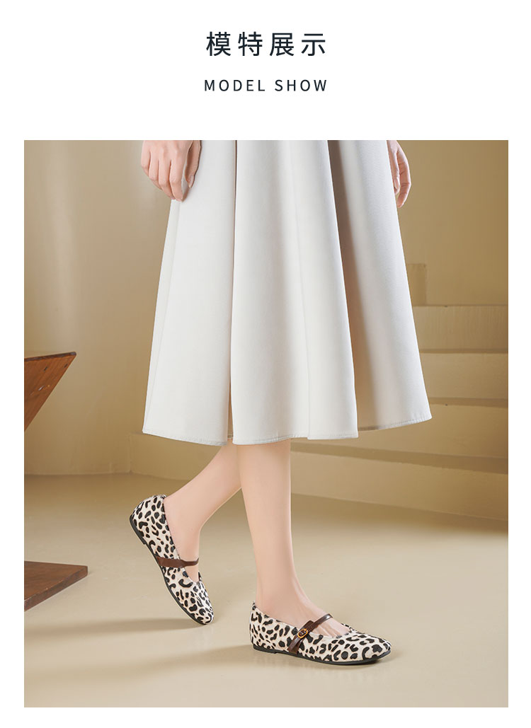 Westory2026年春季圆头平底豹纹马毛皮休闲浅口鞋玛丽珍单鞋W26AE51001