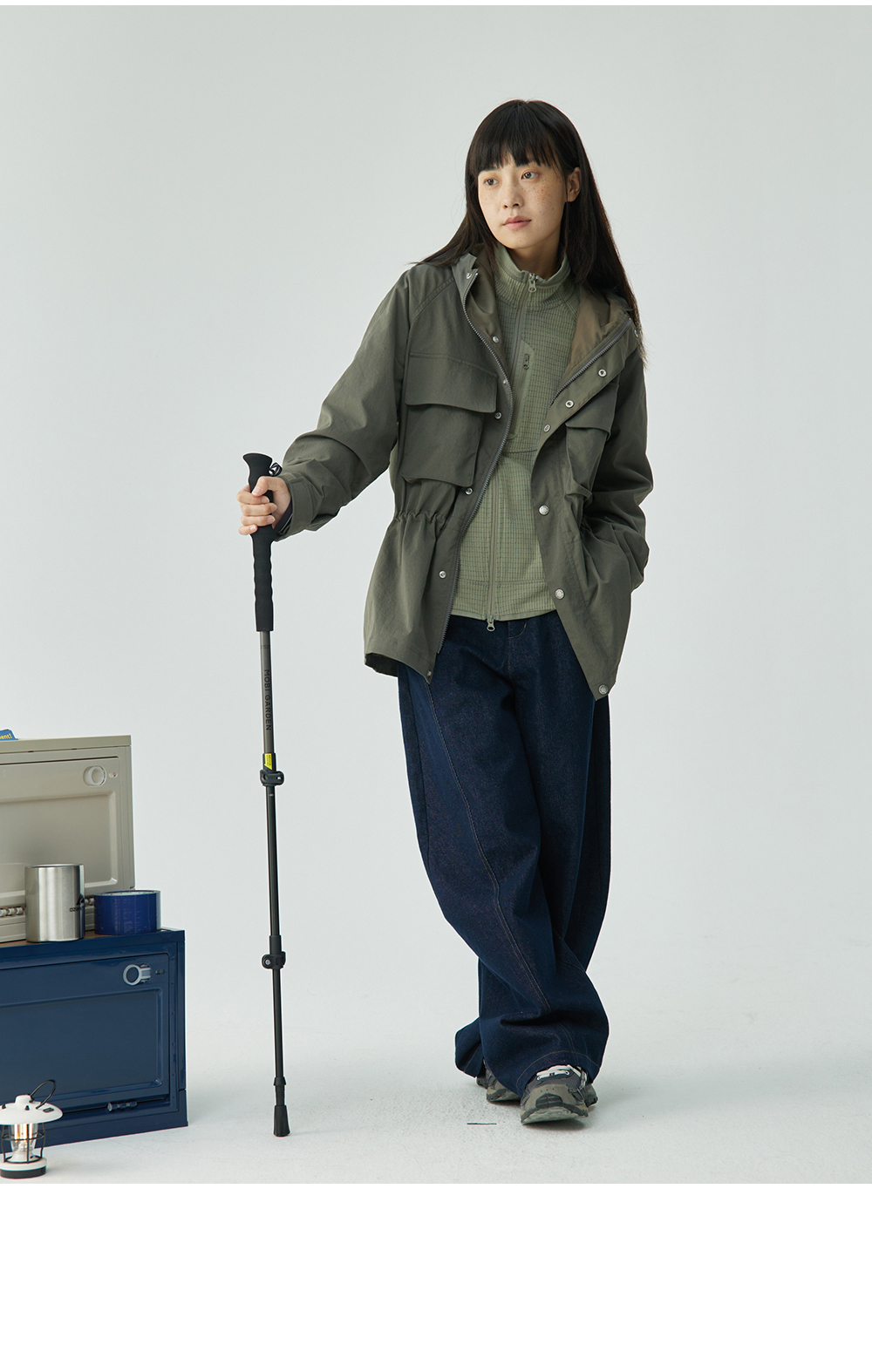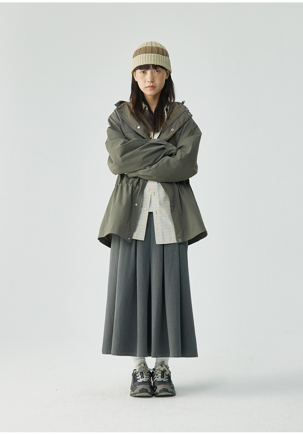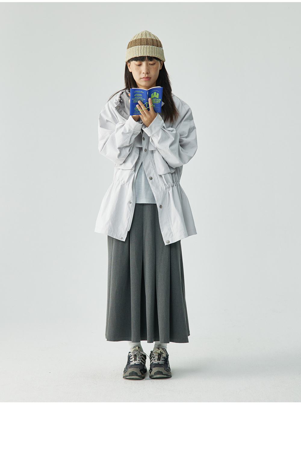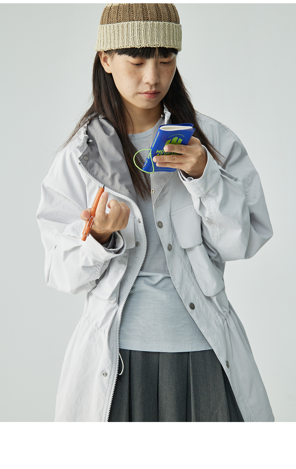 步履不停/4C23117C/收腰一手长灰色绿色工装上衣风衣外套