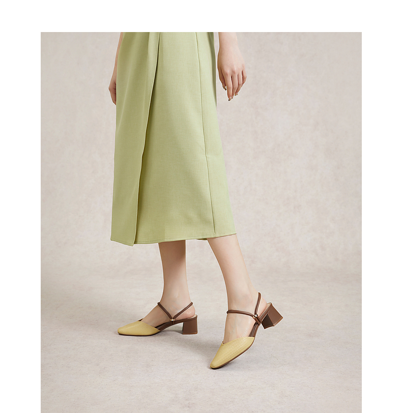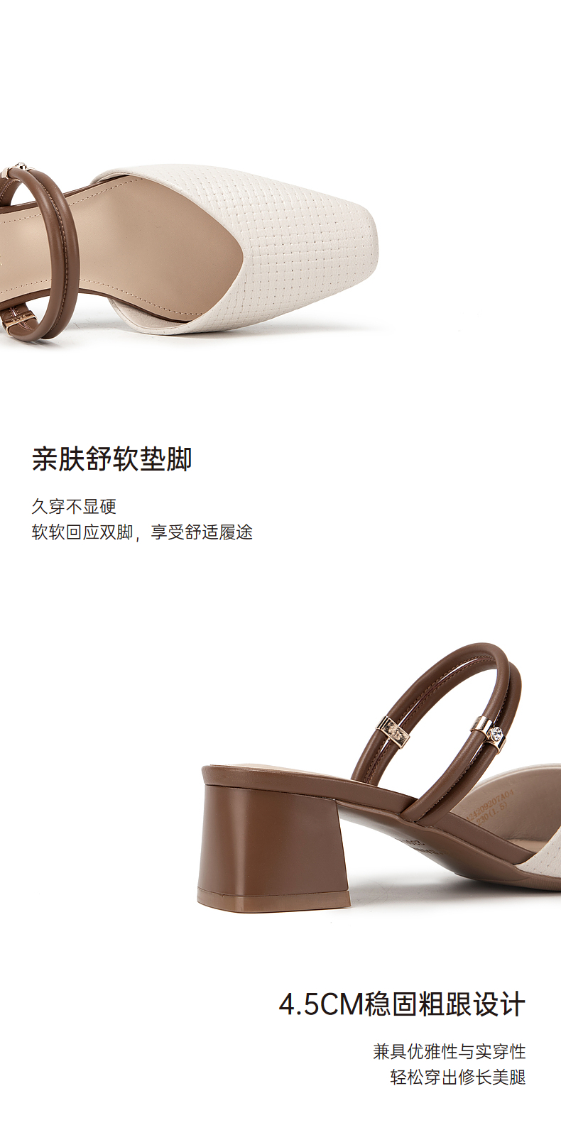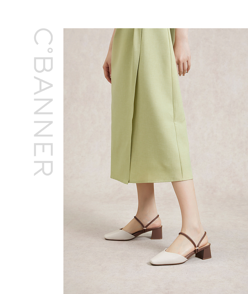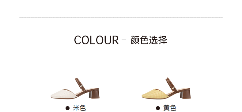 千百度羊皮时尚包头拖女款夏季粗跟尖头通勤凉拖鞋外穿A24209207