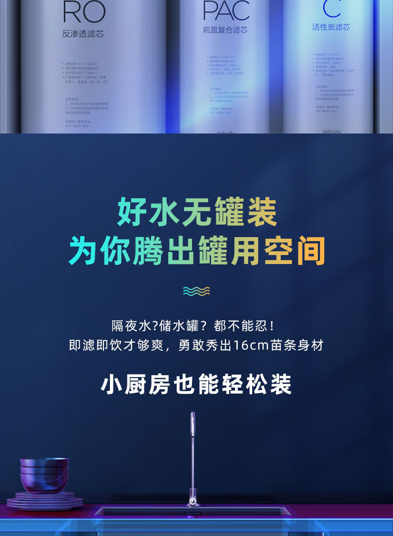 华凌净水器_WAH600-01 美的出品家用橱下式直饮600G大通量长效滤芯净水直饮机
