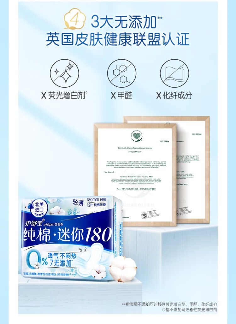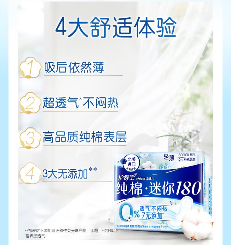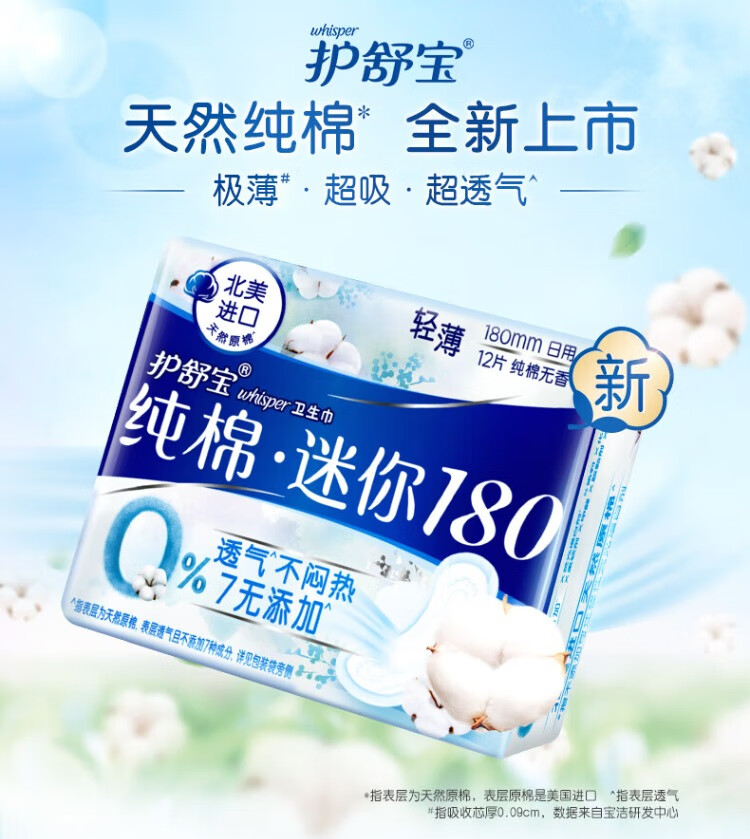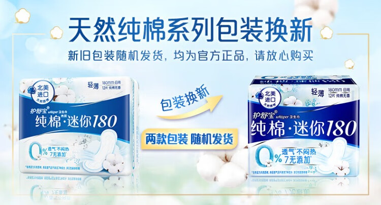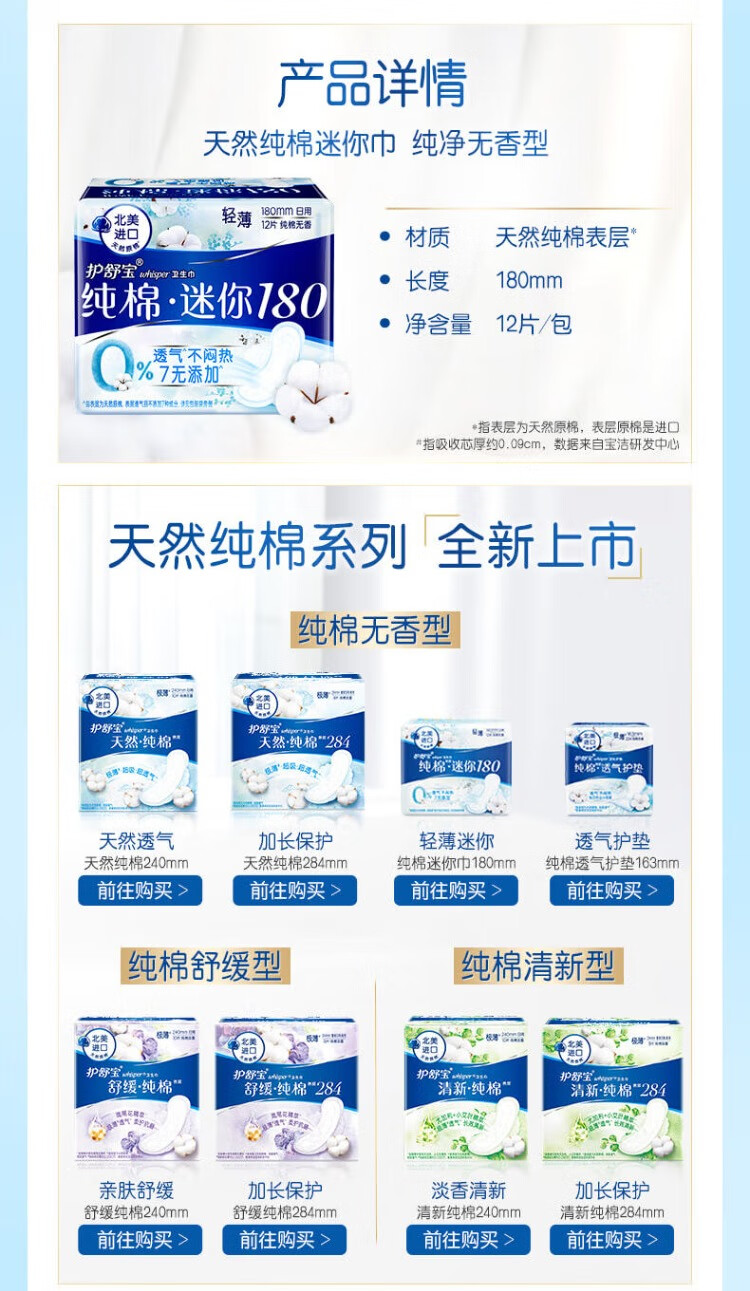 护舒宝纯棉迷你卫生巾无香型日用180mm12片