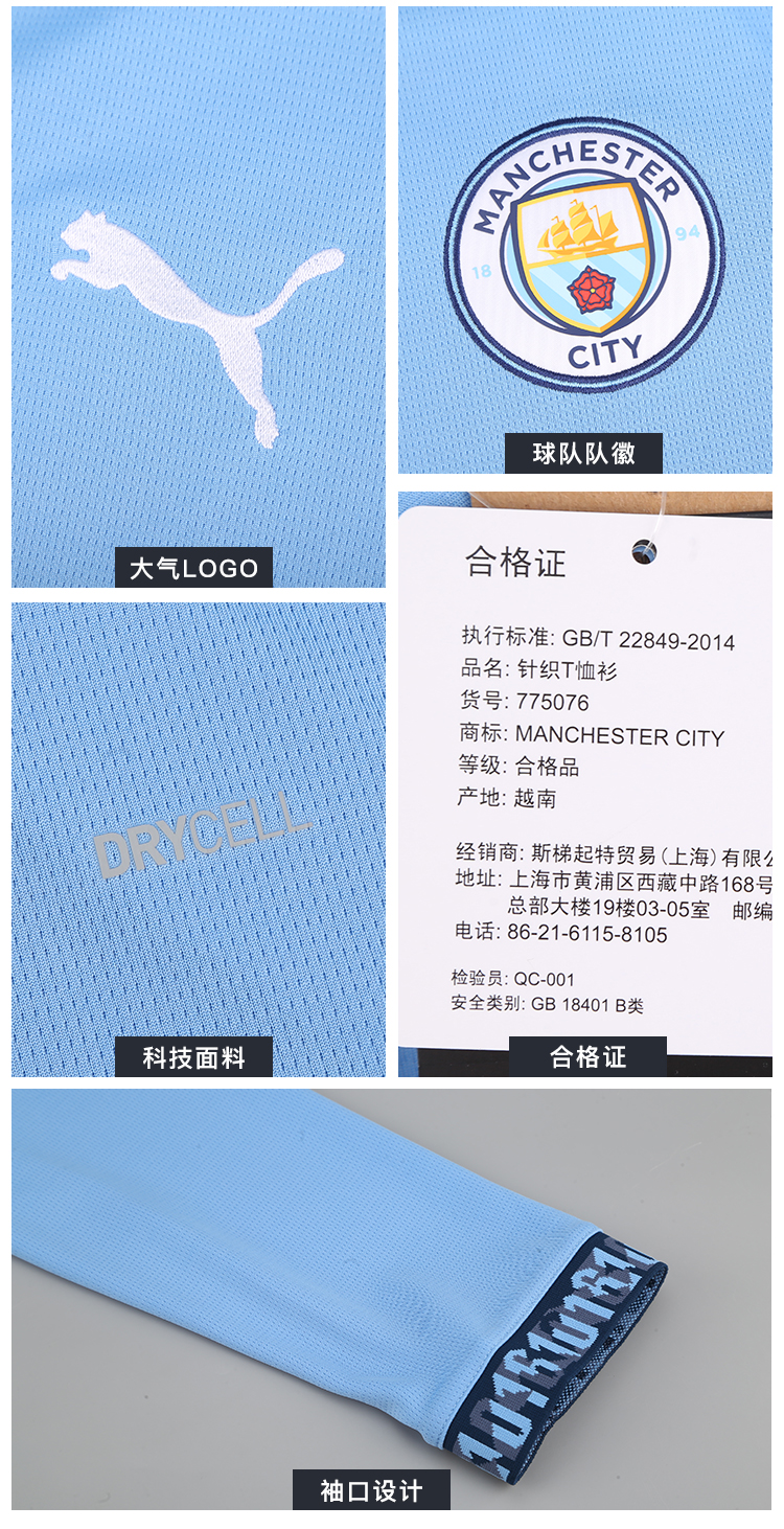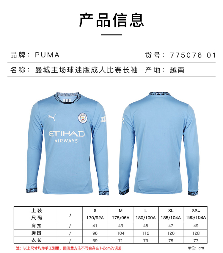 小李子PUMA彪马24-25赛季曼城主场球迷版球衣长袖成人男775076 01