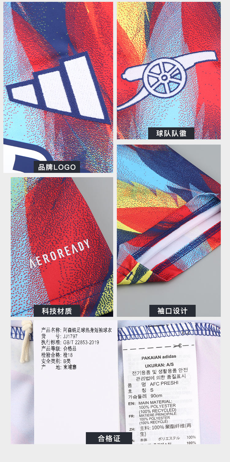 小李子ADIDAS阿迪达斯阿森纳足球运动热身短袖训练服成人男JJ1797