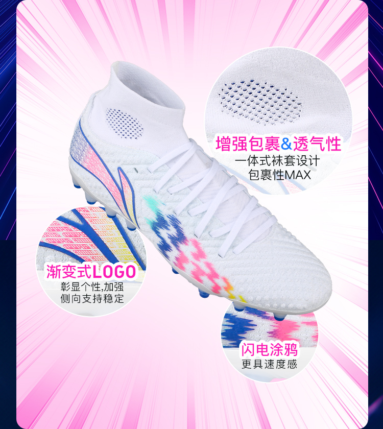 小李子Lining/李宁疾影次高端MG钉短草地足球训练鞋成人男YSFU013-2