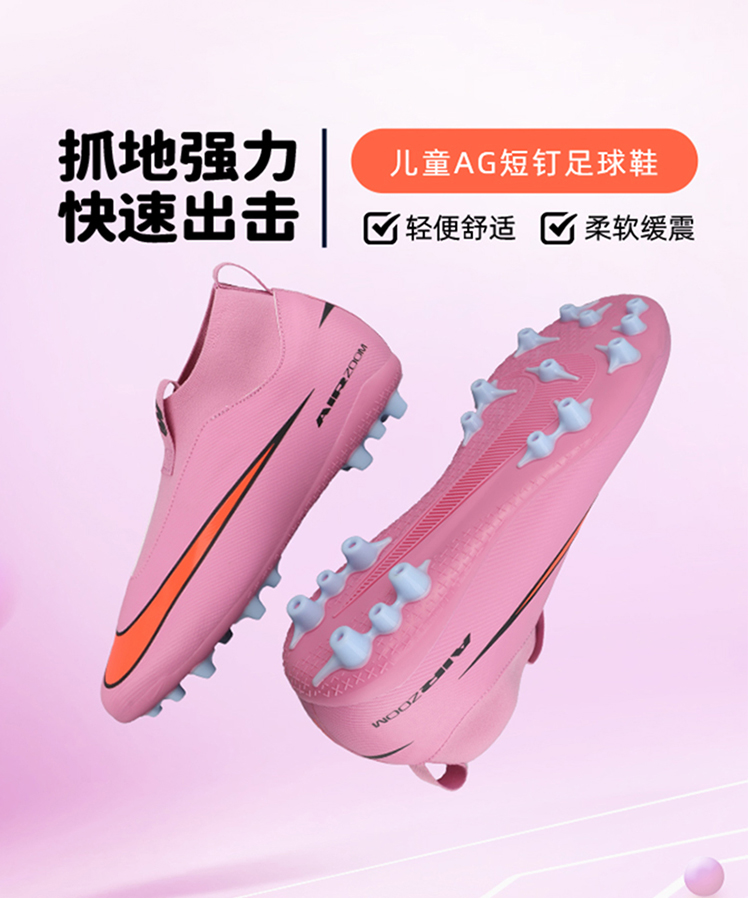小李子耐克儿童足球鞋刺客16高帮AG短钉足球鞋男女孩FQ8308-600