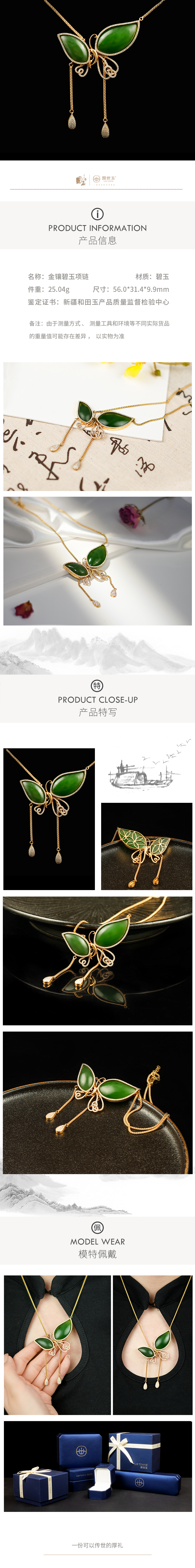 新疆国玉盟世玉和田玉金镶碧玉项链【带证书·顺丰物流】