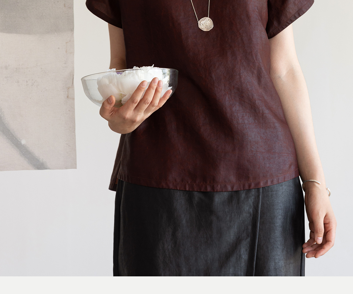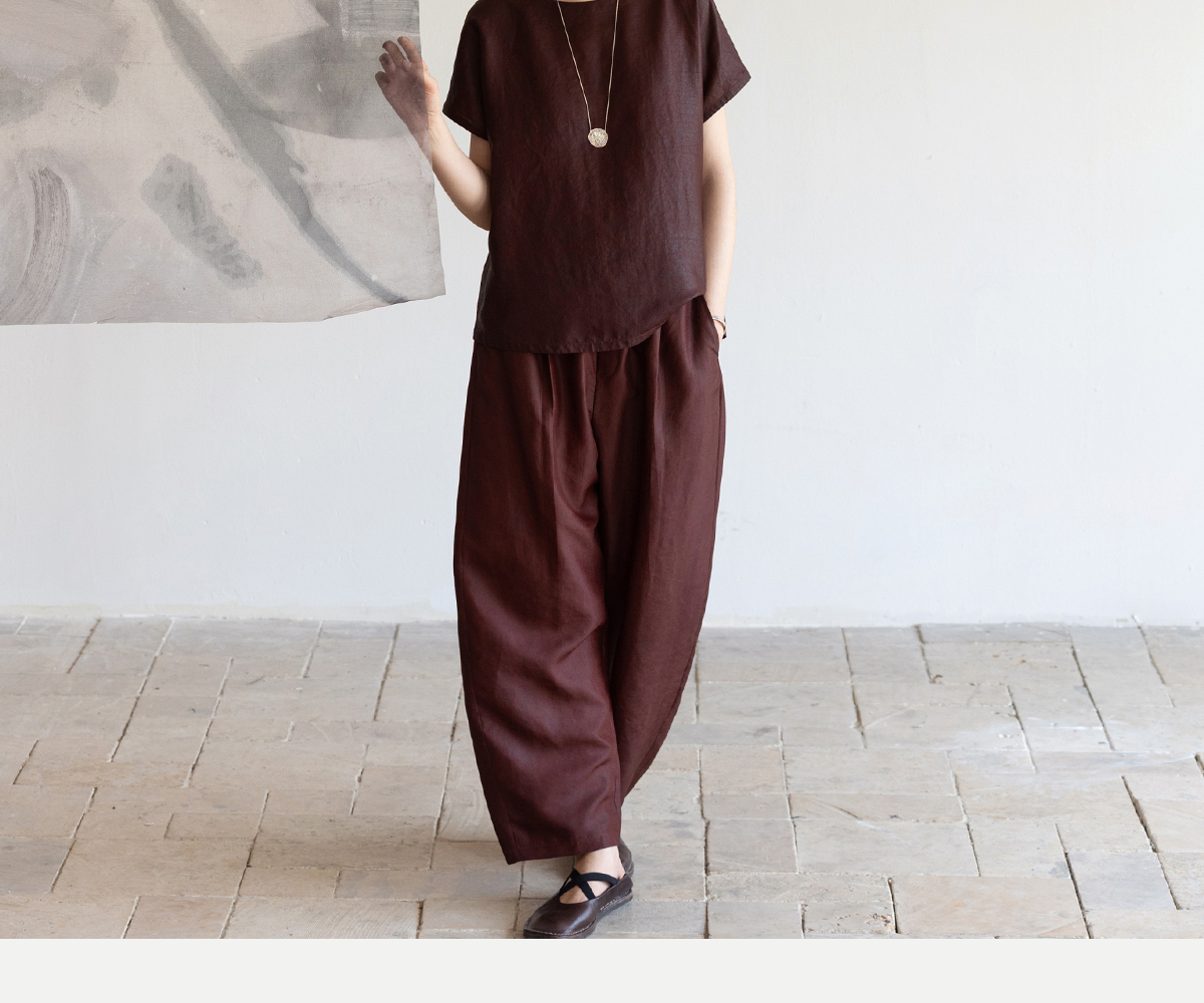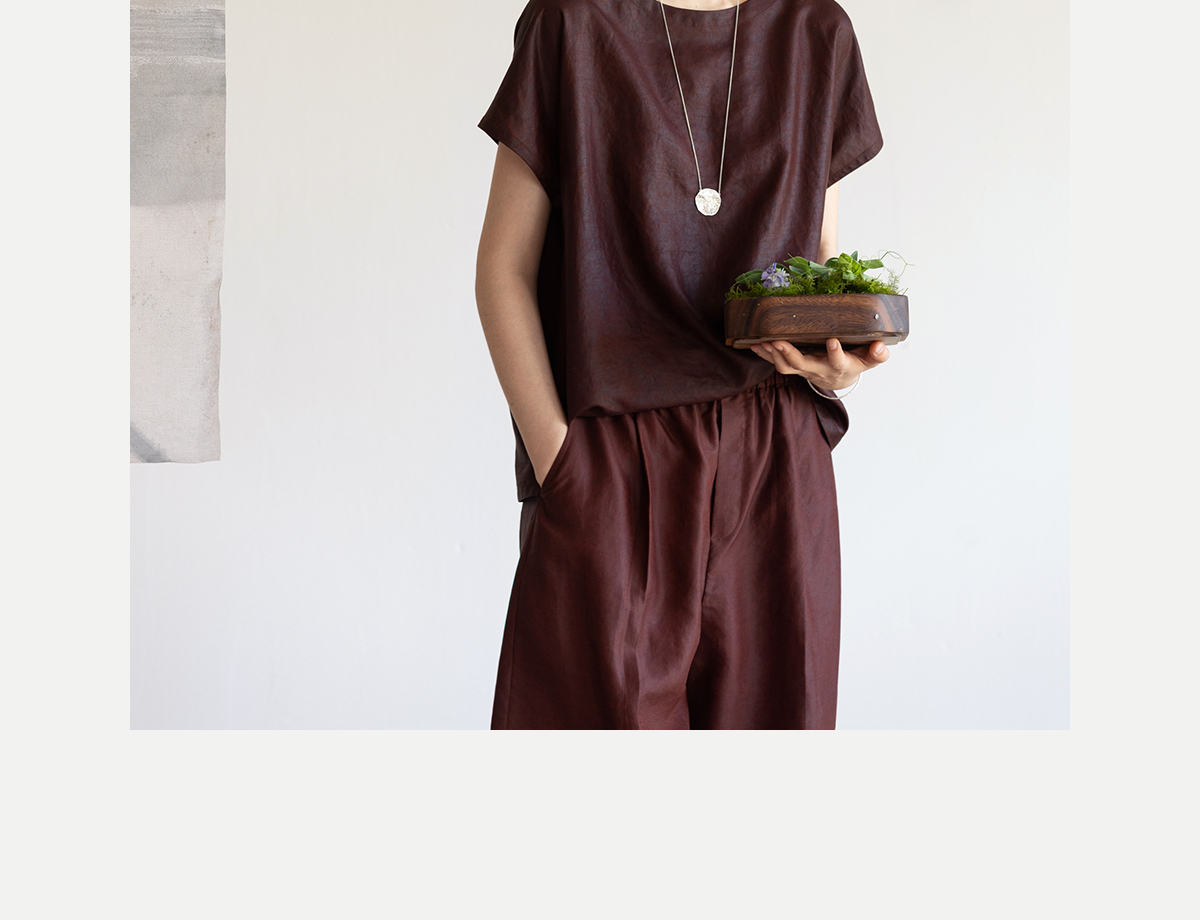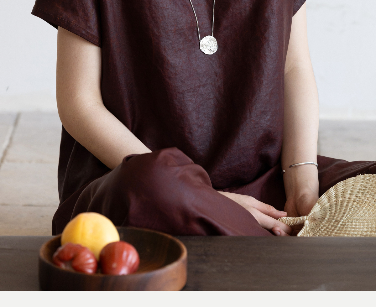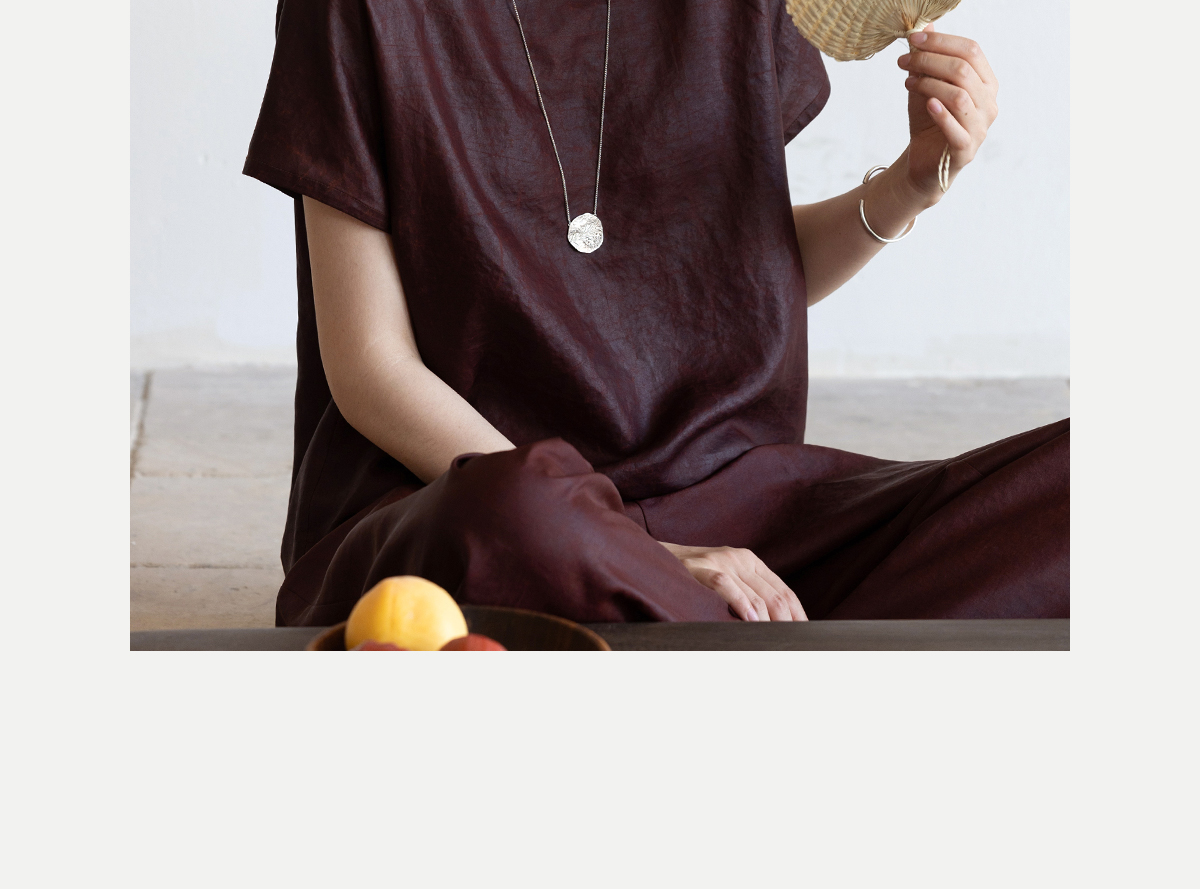 牧衣游原创 醇正薯莨红桑蚕丝套头衫轻薄圆领文艺复古上衣 泽芝
