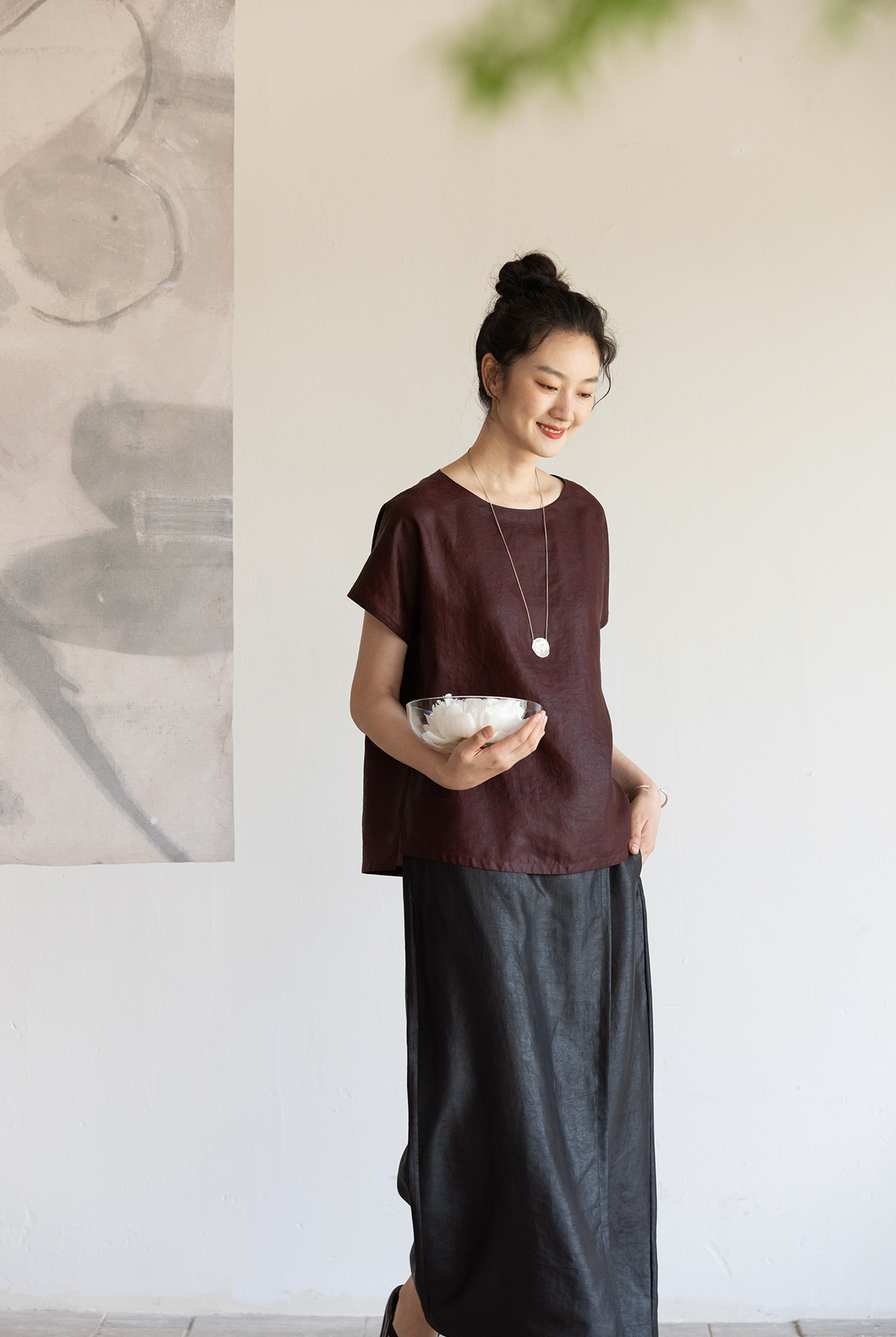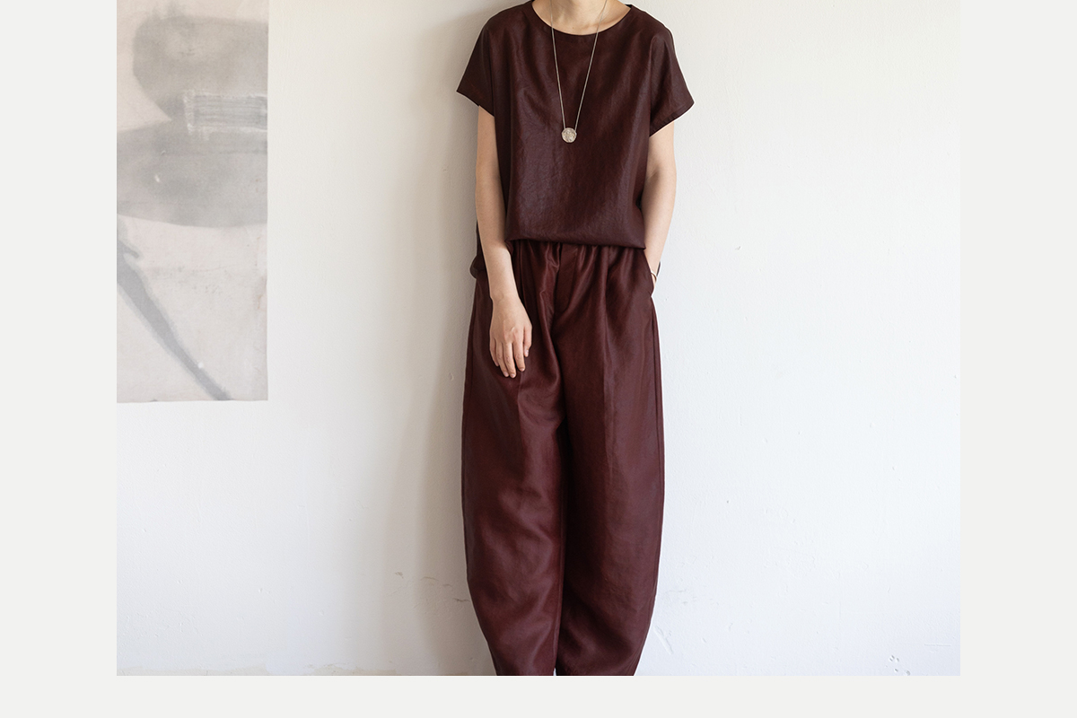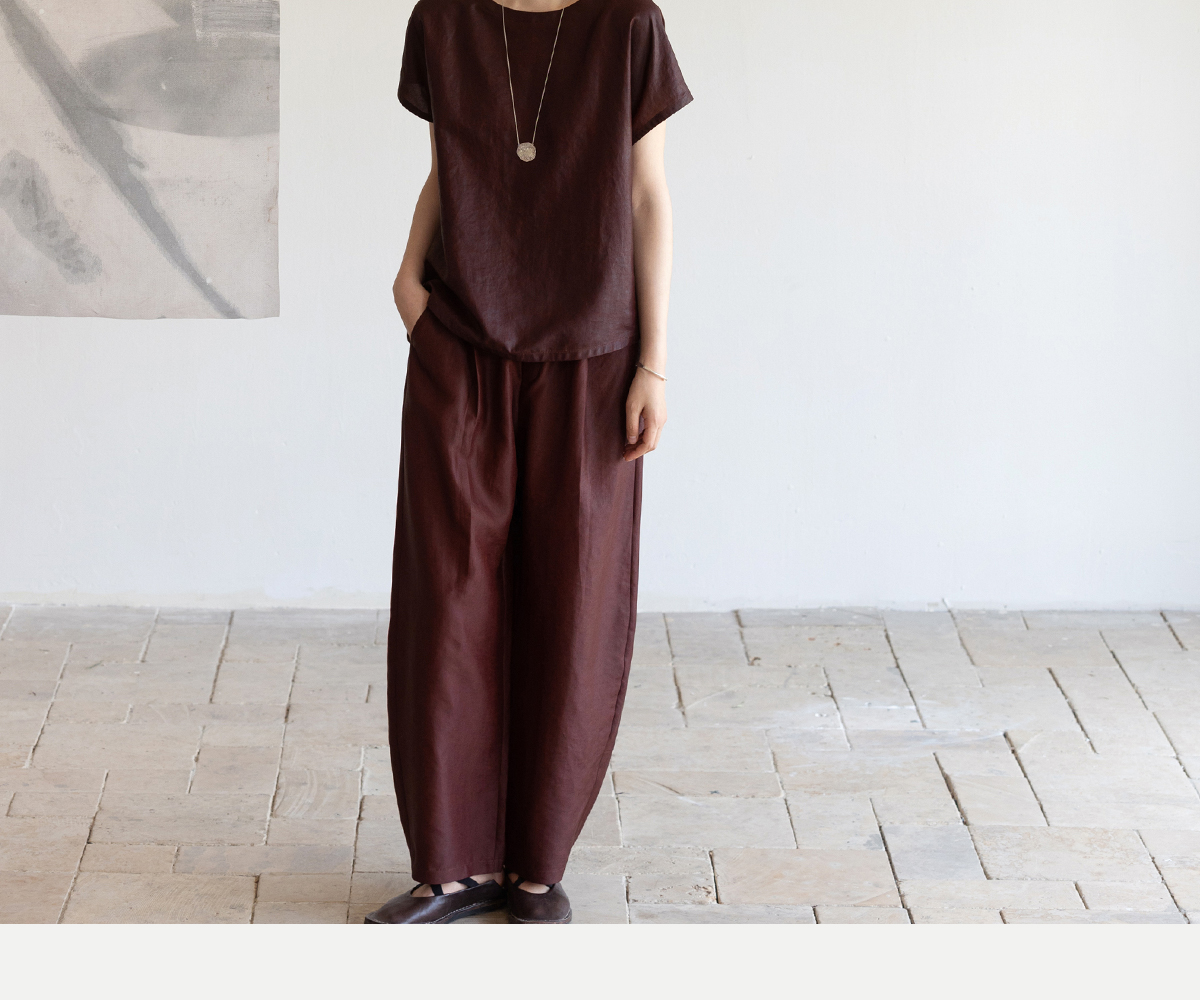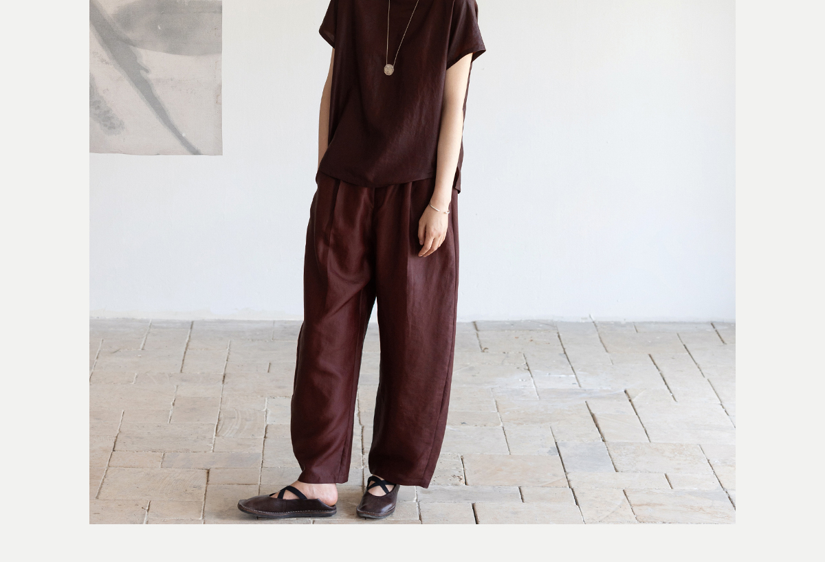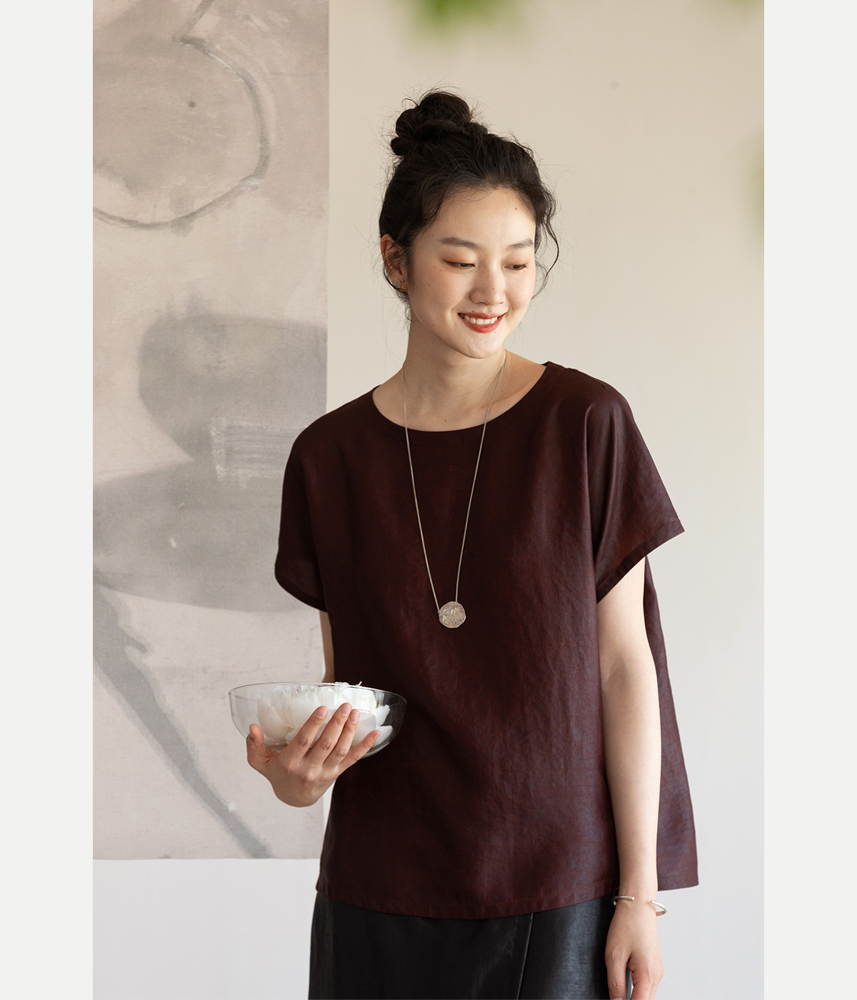 牧衣游原创 醇正薯莨红桑蚕丝套头衫轻薄圆领文艺复古上衣 泽芝