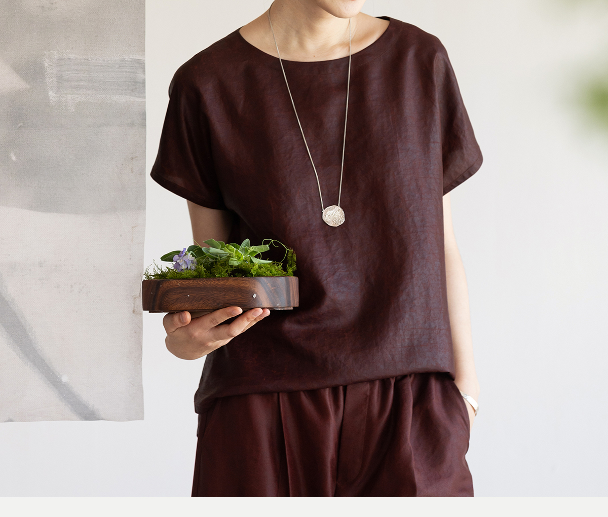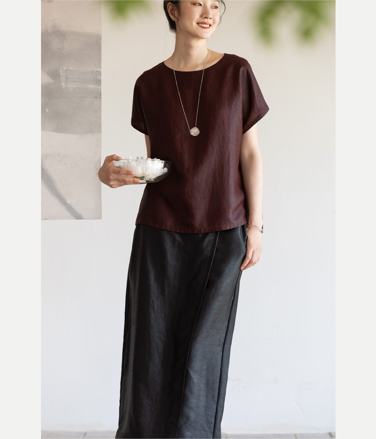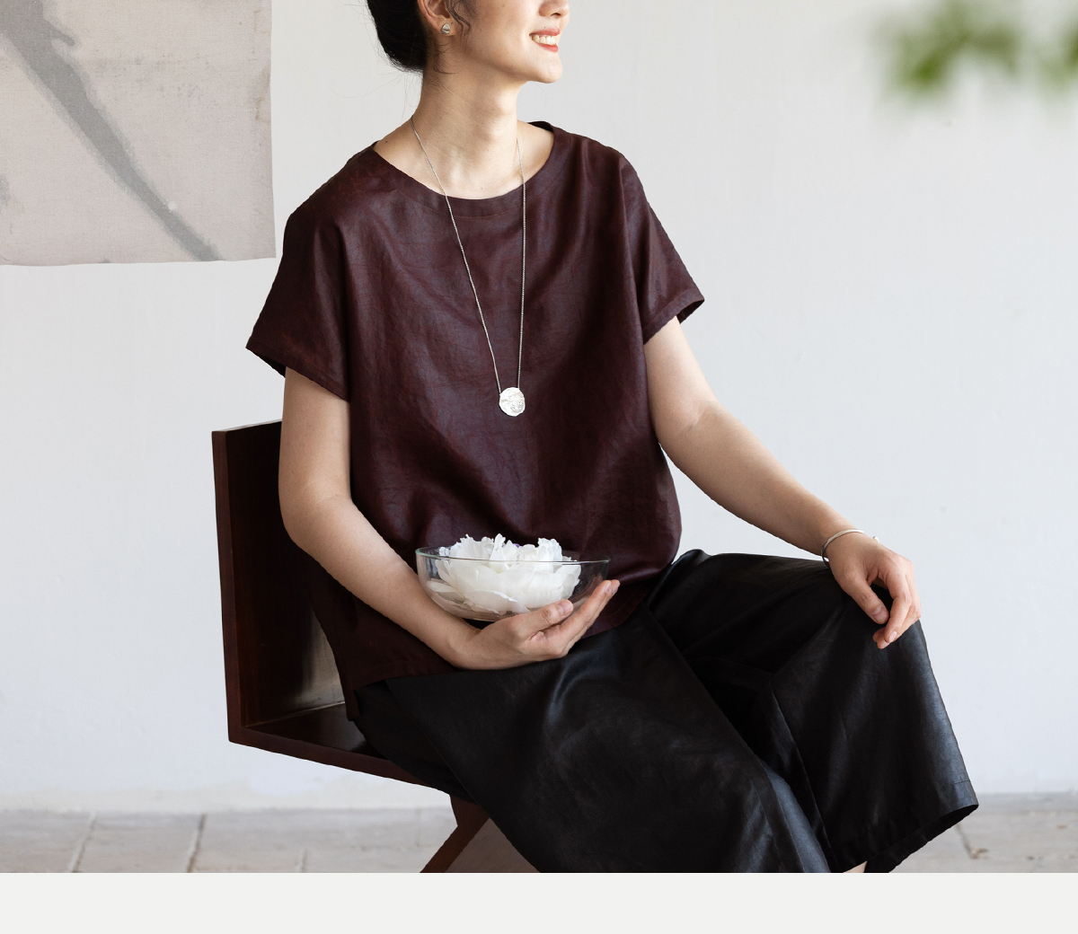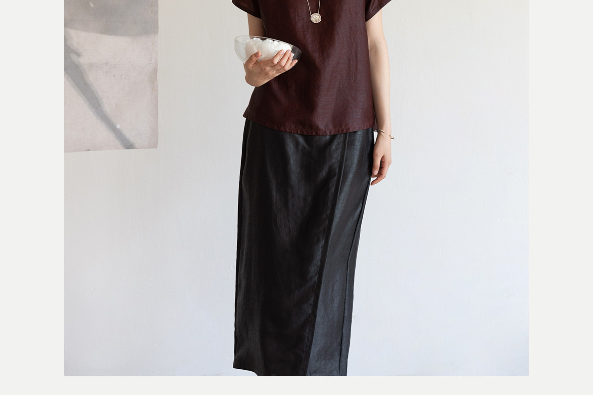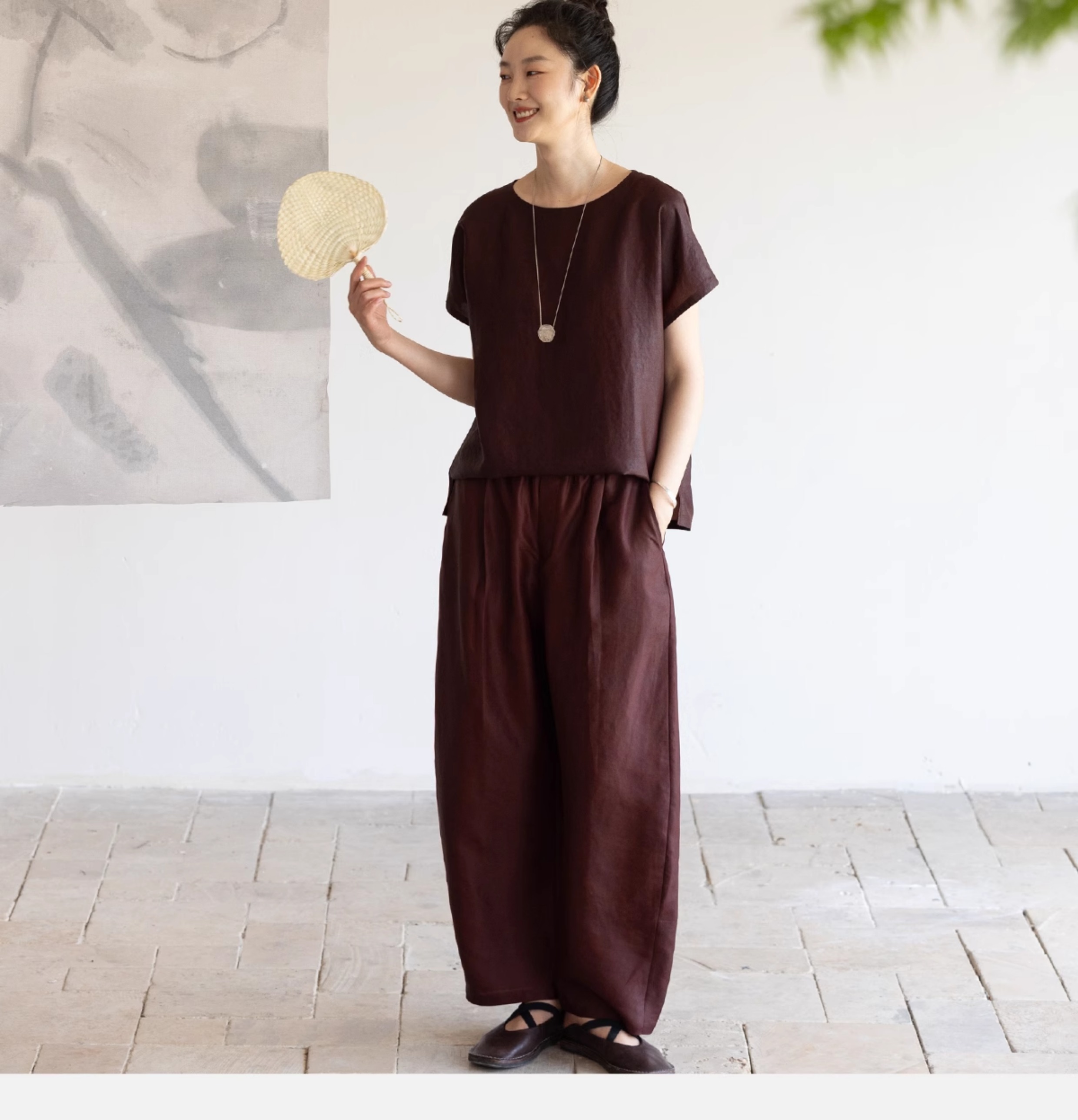 牧衣游原创 醇正薯莨红桑蚕丝套头衫轻薄圆领文艺复古上衣 泽芝
