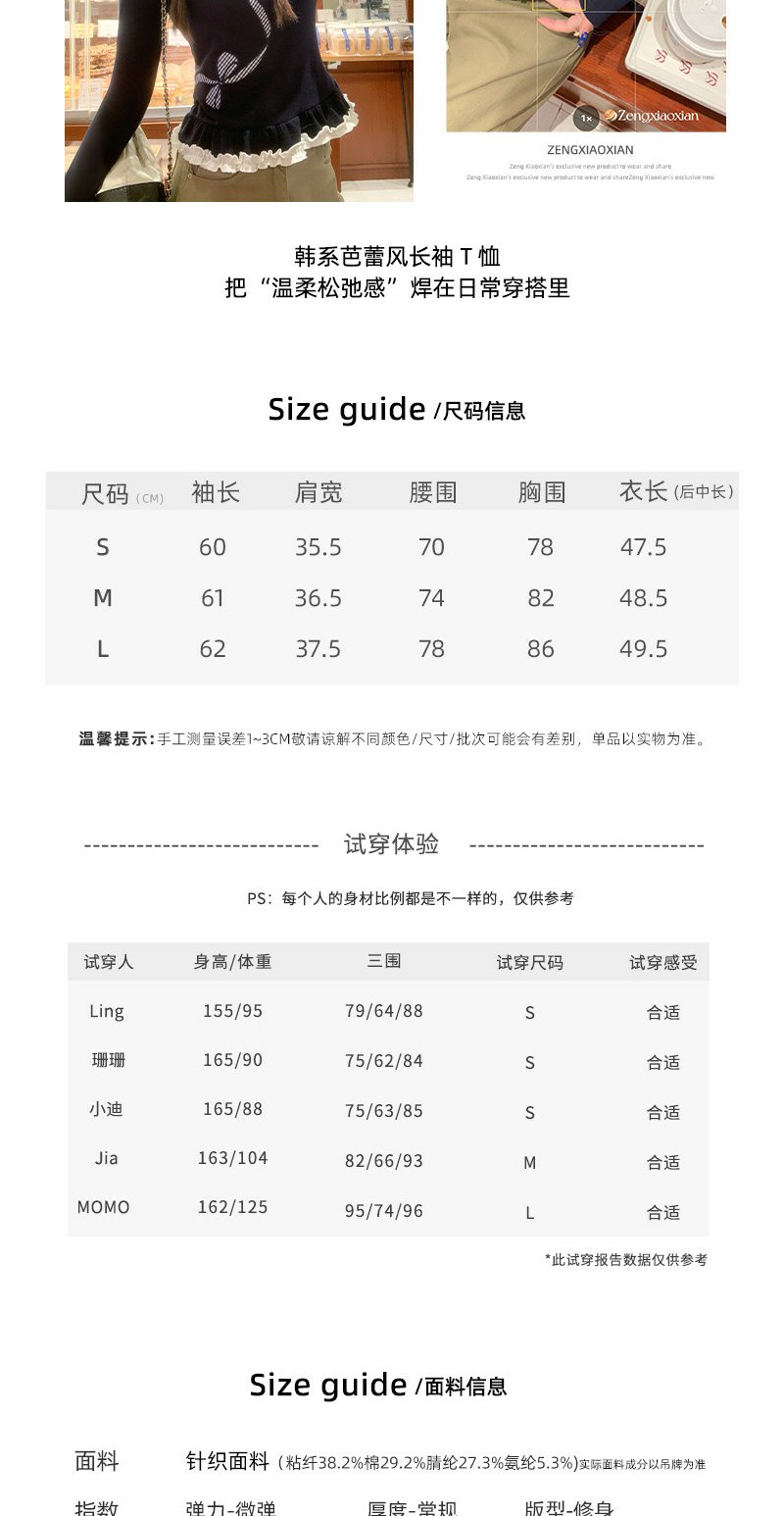 【129元任选2件】现货!韩系芭蕾风T恤上衣女长袖
