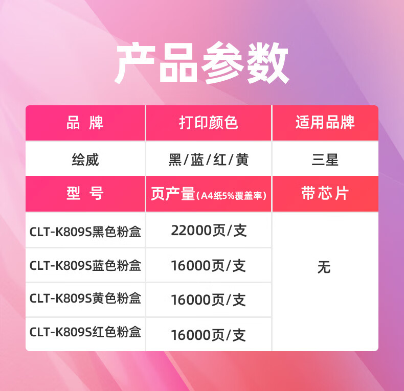 绘威CLT-K809S粉盒 适用三星Samsung CLX-9201ND 9201NA 9251ND 9251NA 9301NA打印机墨粉盒 硒鼓