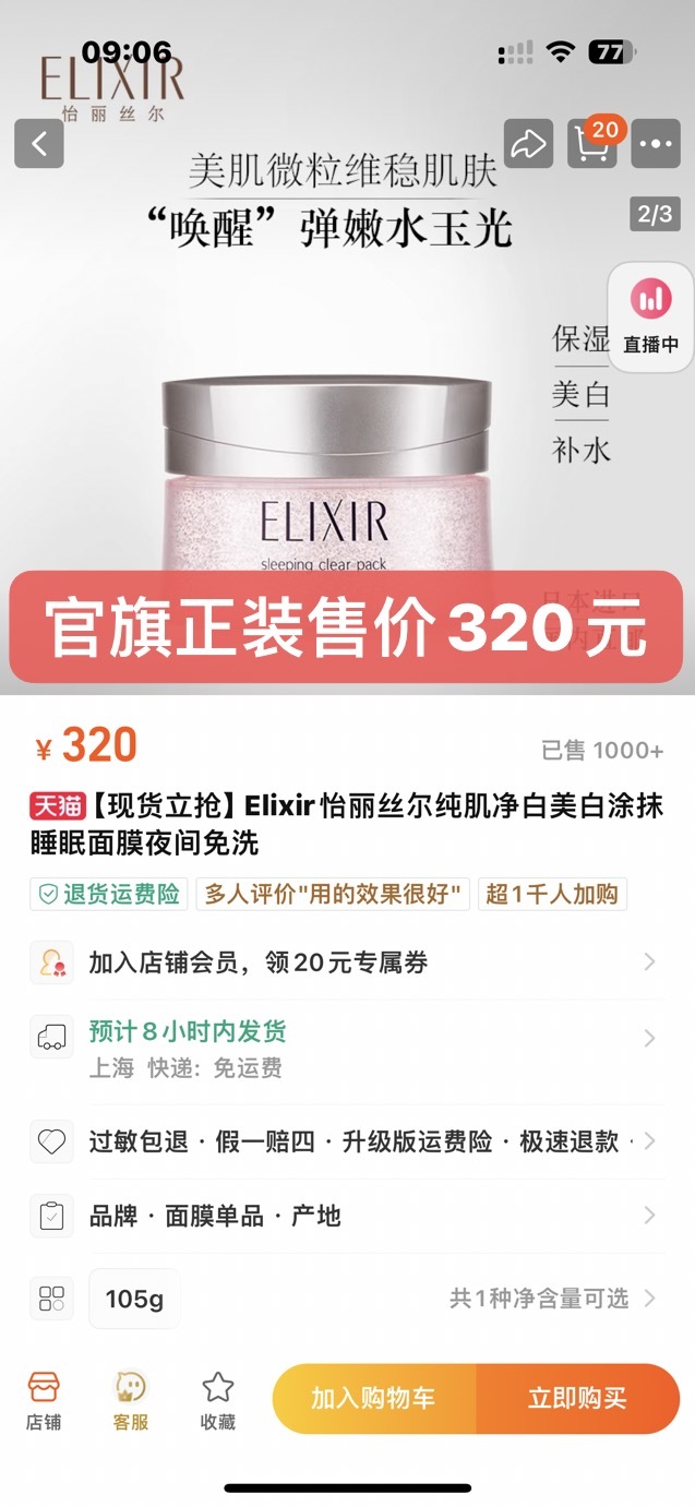 这价格是真实存在的吗❗越睡越白、真“美容觉”【怡丽丝尔纯肌净白睡眠面膜5g】熬夜党必入面膜、补水美白款!