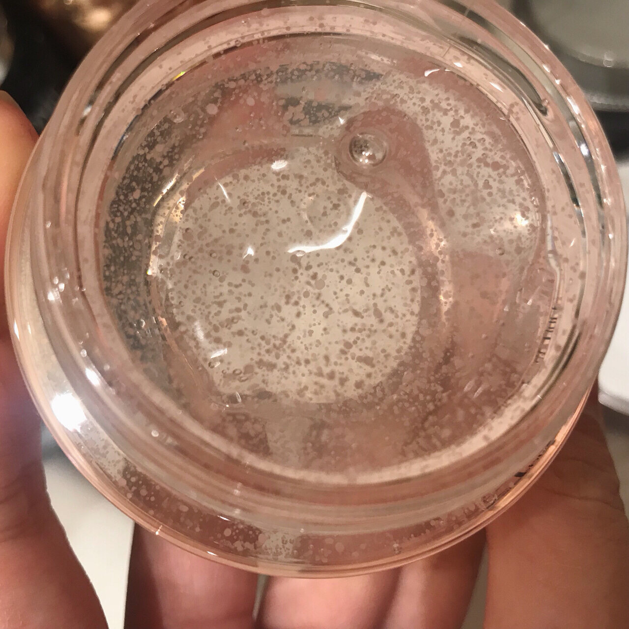 透明啫喱状的质地,还有点粉粉的!