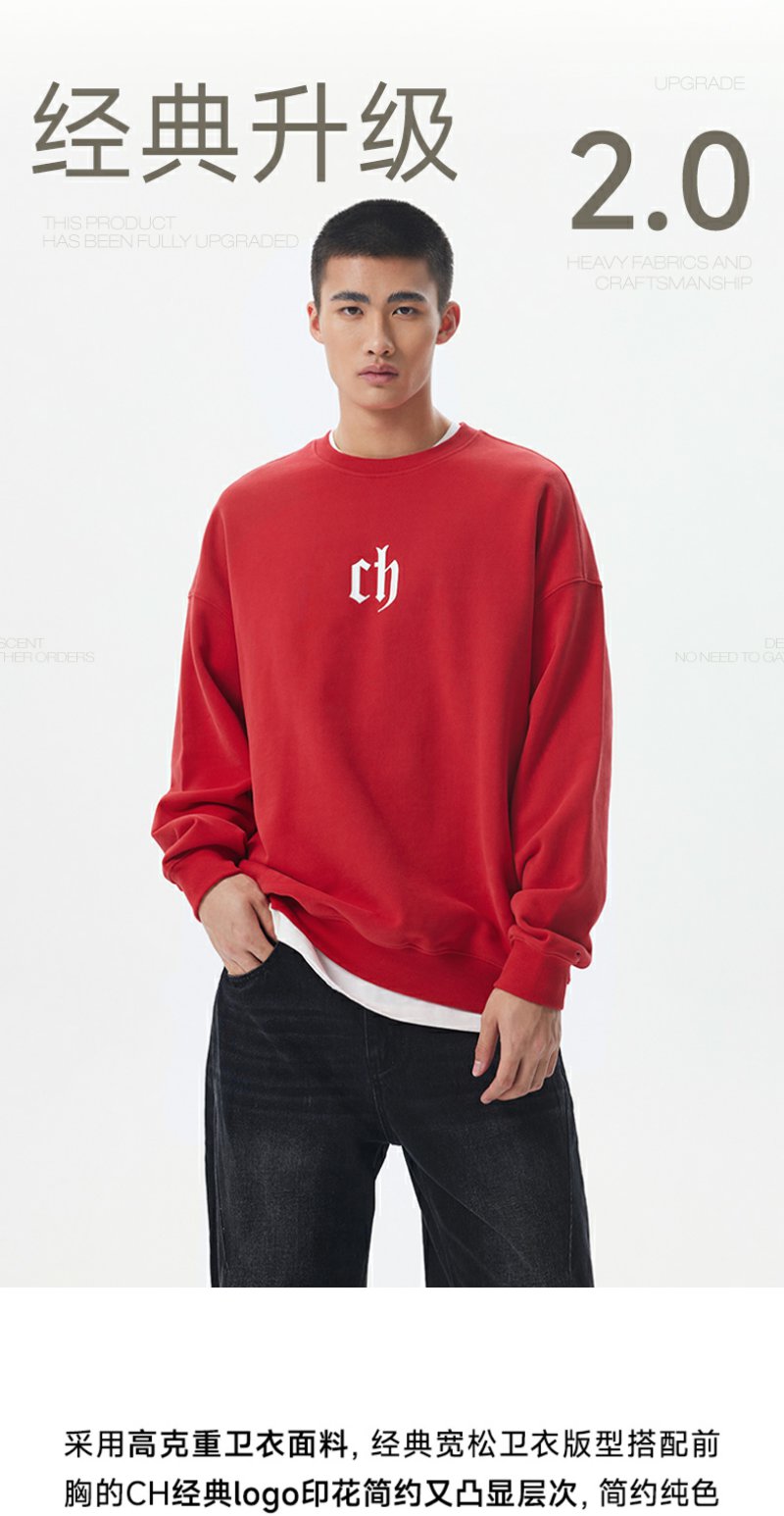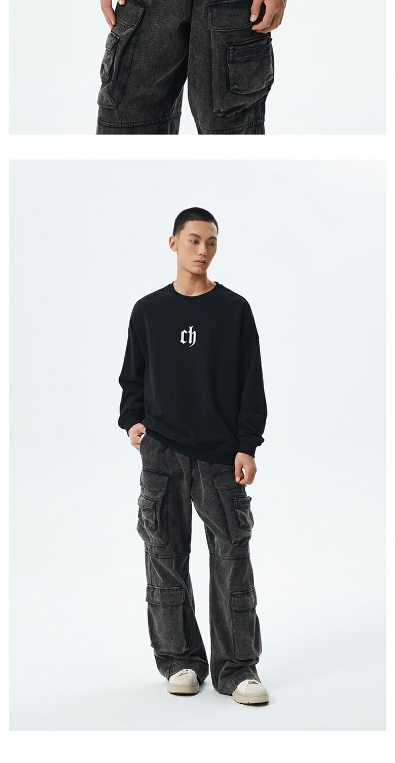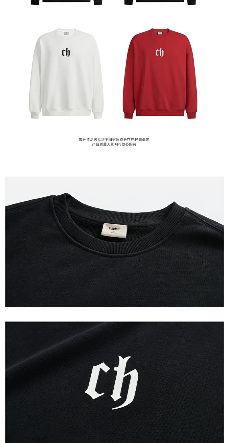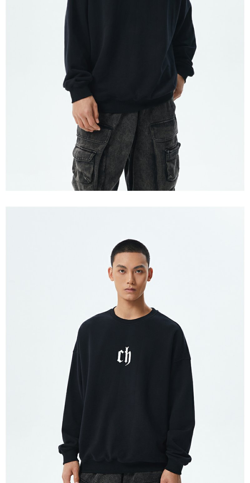 CHINISM赤尘 水洗黑重磅圆领卫衣男春季美式做旧男士套头长袖上衣