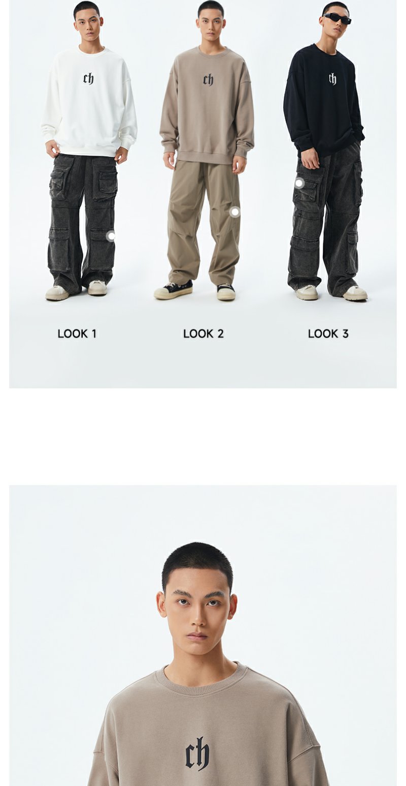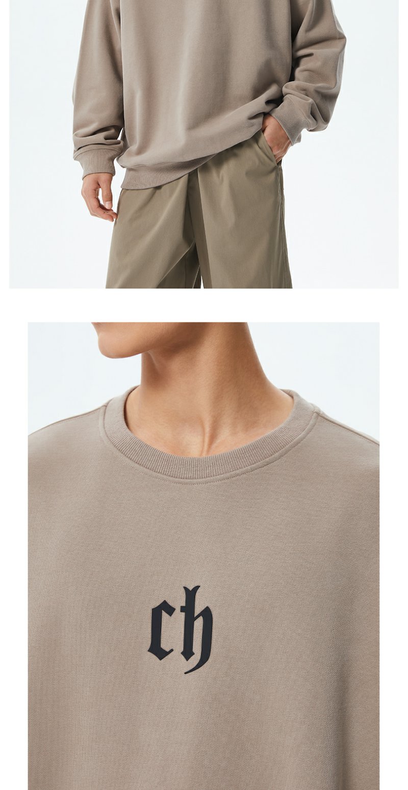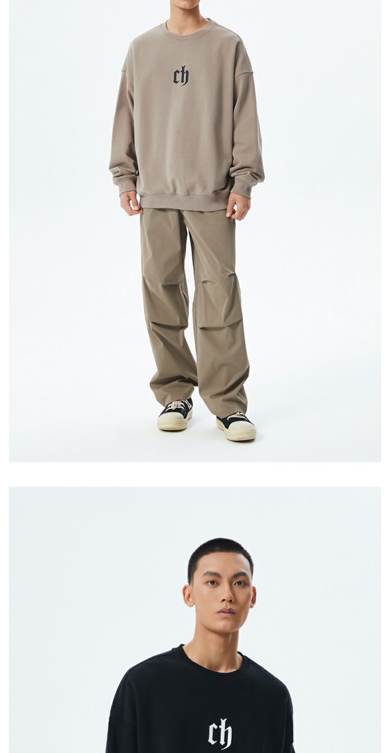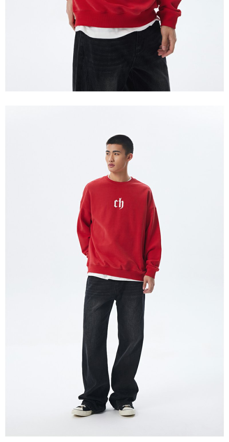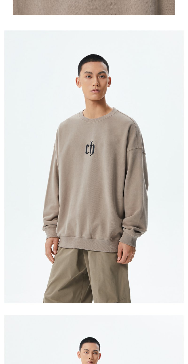 CHINISM赤尘 水洗黑重磅圆领卫衣男春季美式做旧男士套头长袖上衣