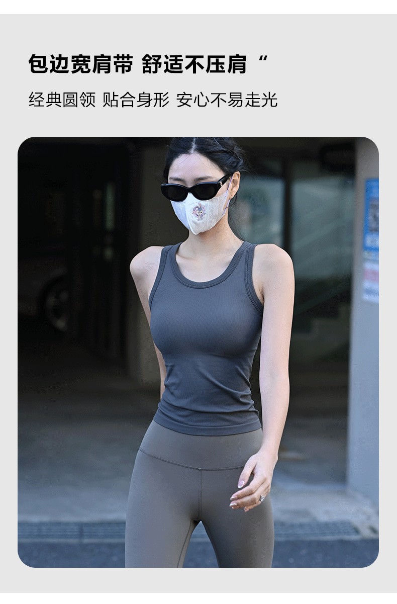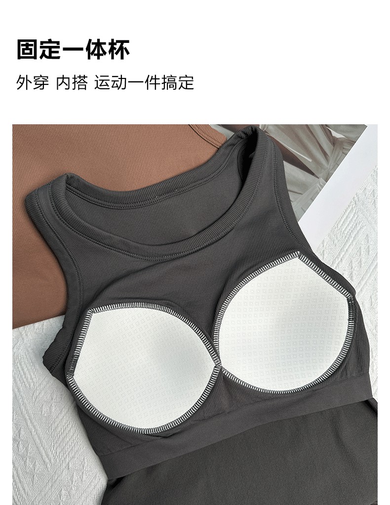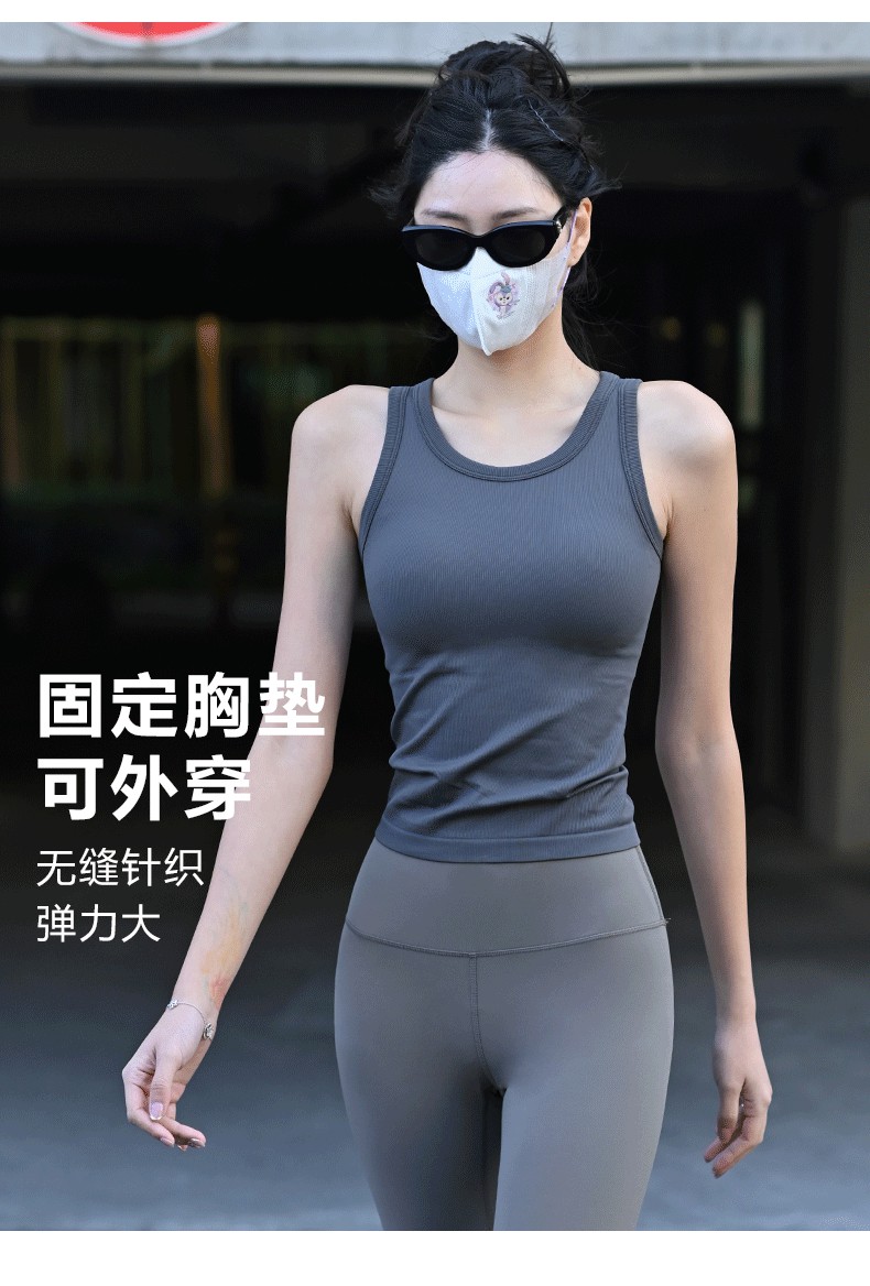 Beemen固定一体杯运动背心女外穿健身秋冬季瑜伽服上衣