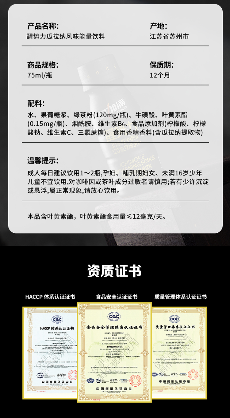 日加满 醒势力 瓜拉纳风味能量饮料 75ml*12瓶