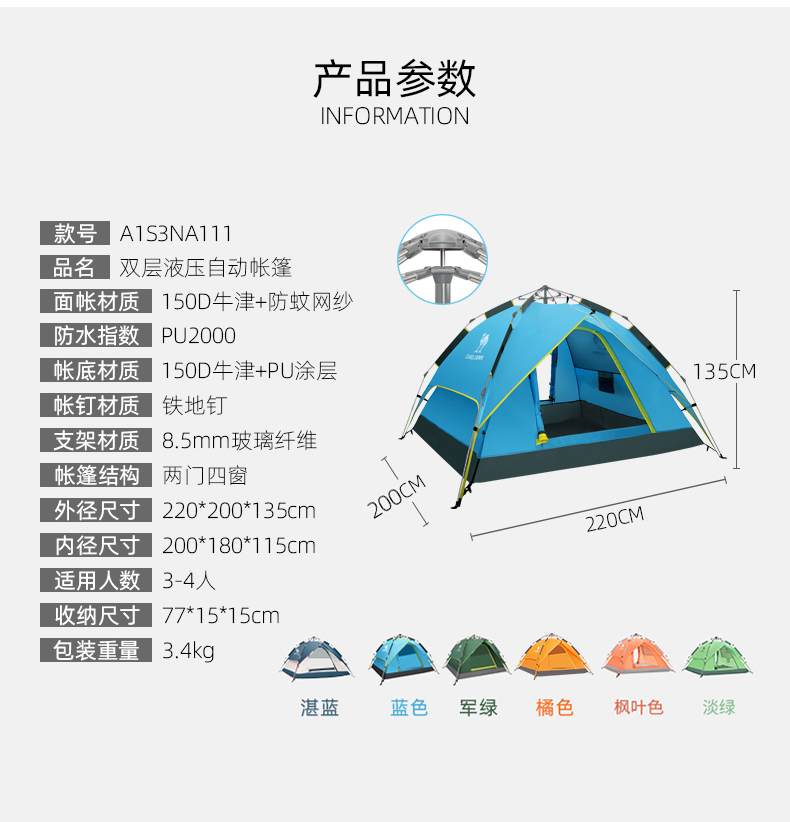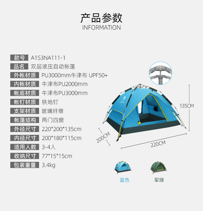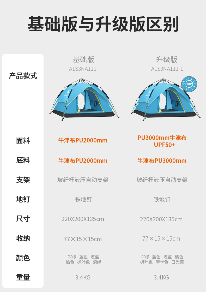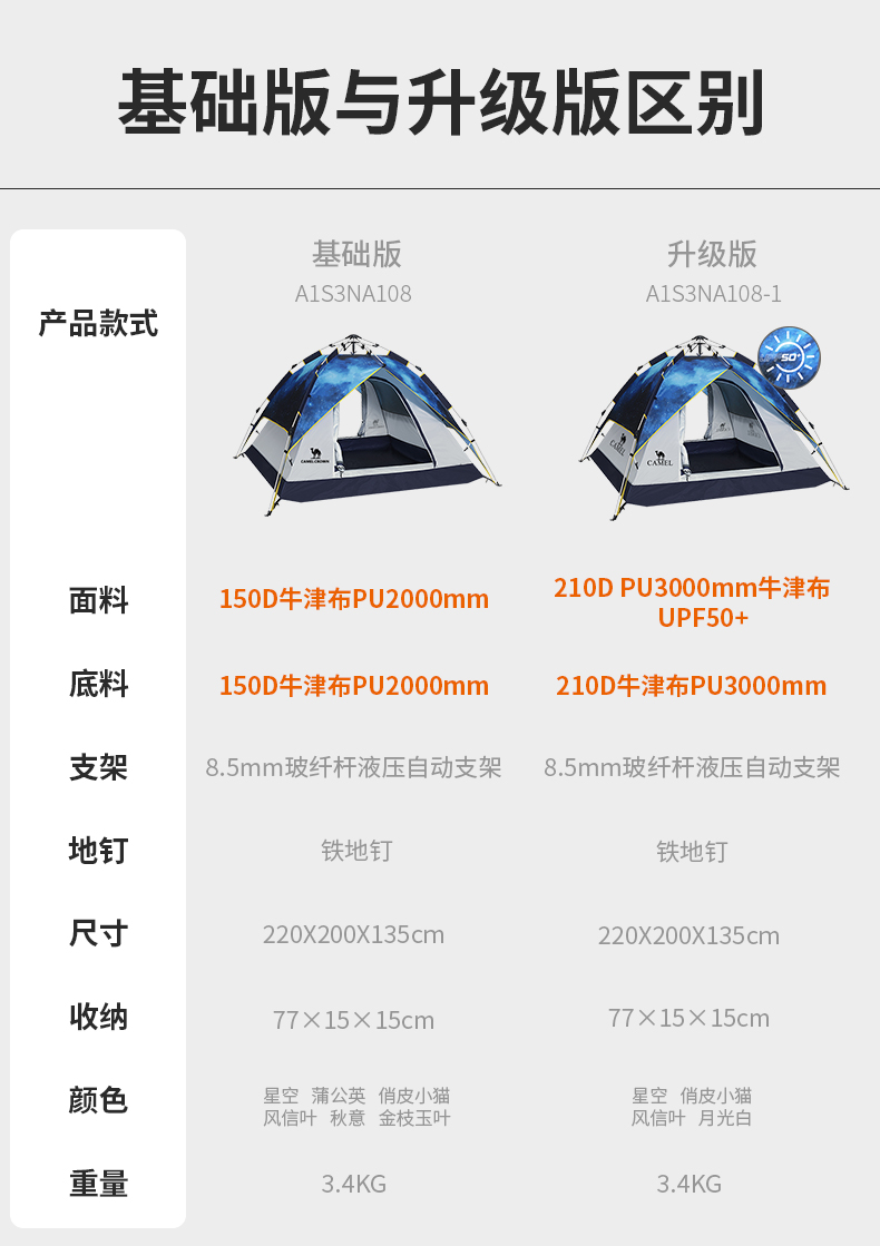 骆驼户外帐篷便携式折叠加厚全自动防雨儿童公园遮阳防护露营装备 A1S3NA111-1_A1S3NA111_A1S3NA108-1_A1S3NA108