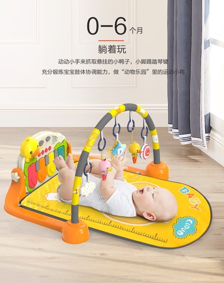 缔利大黄鸭健身架,优乐恩健身架有满7送1原品的活动健身架,摇铃是母婴门店的常规类目参加活动更合适