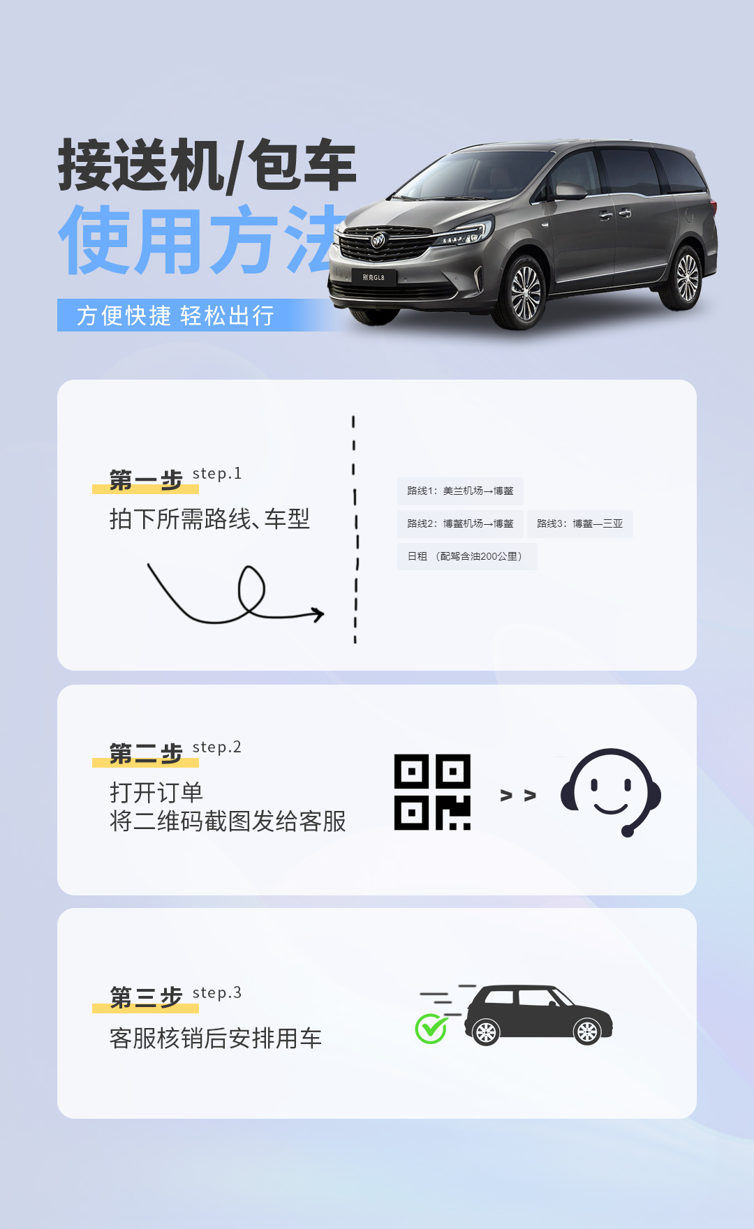 【接送机/包车】GL8商务车/五座车(美兰机场+博鳌机场+博鳌+三亚)