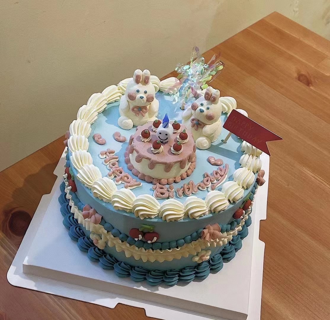 两只小兔兔复古蛋糕-低糖处理无添加