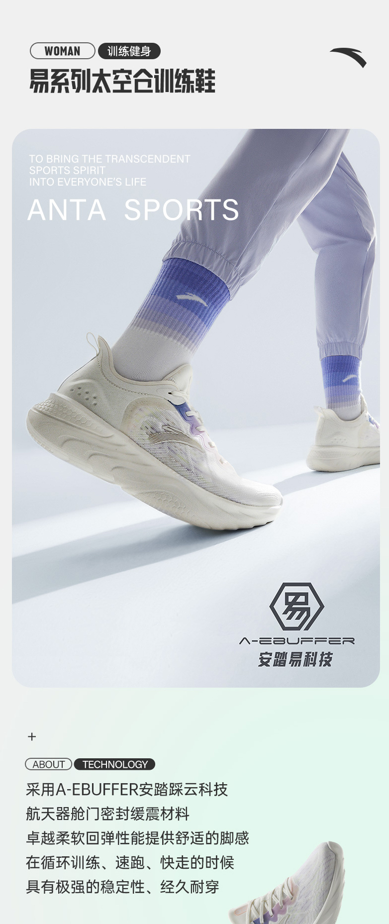 安踏综训鞋女鞋2022夏季新款软底轻便健步健身训练鞋122227721-6
