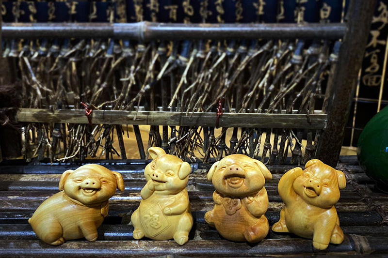 萌猪小摆件°黄杨木&竹