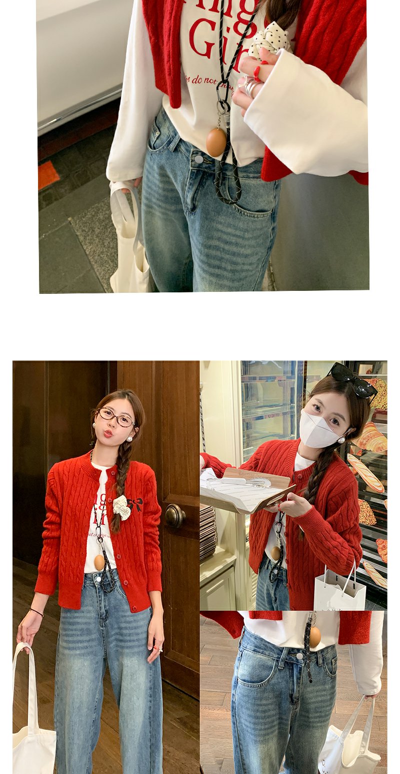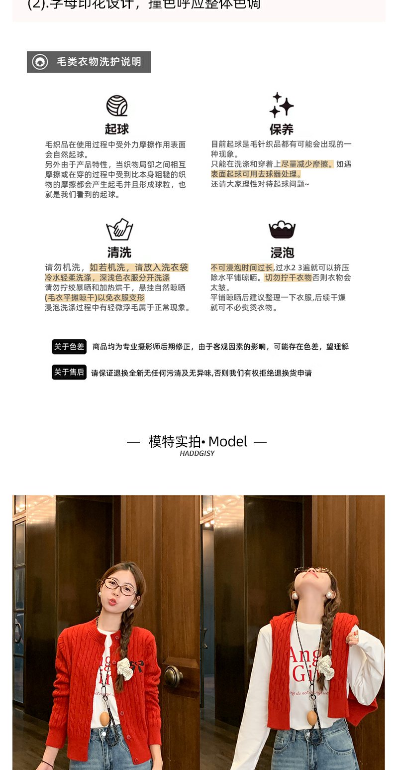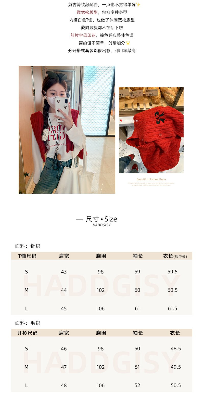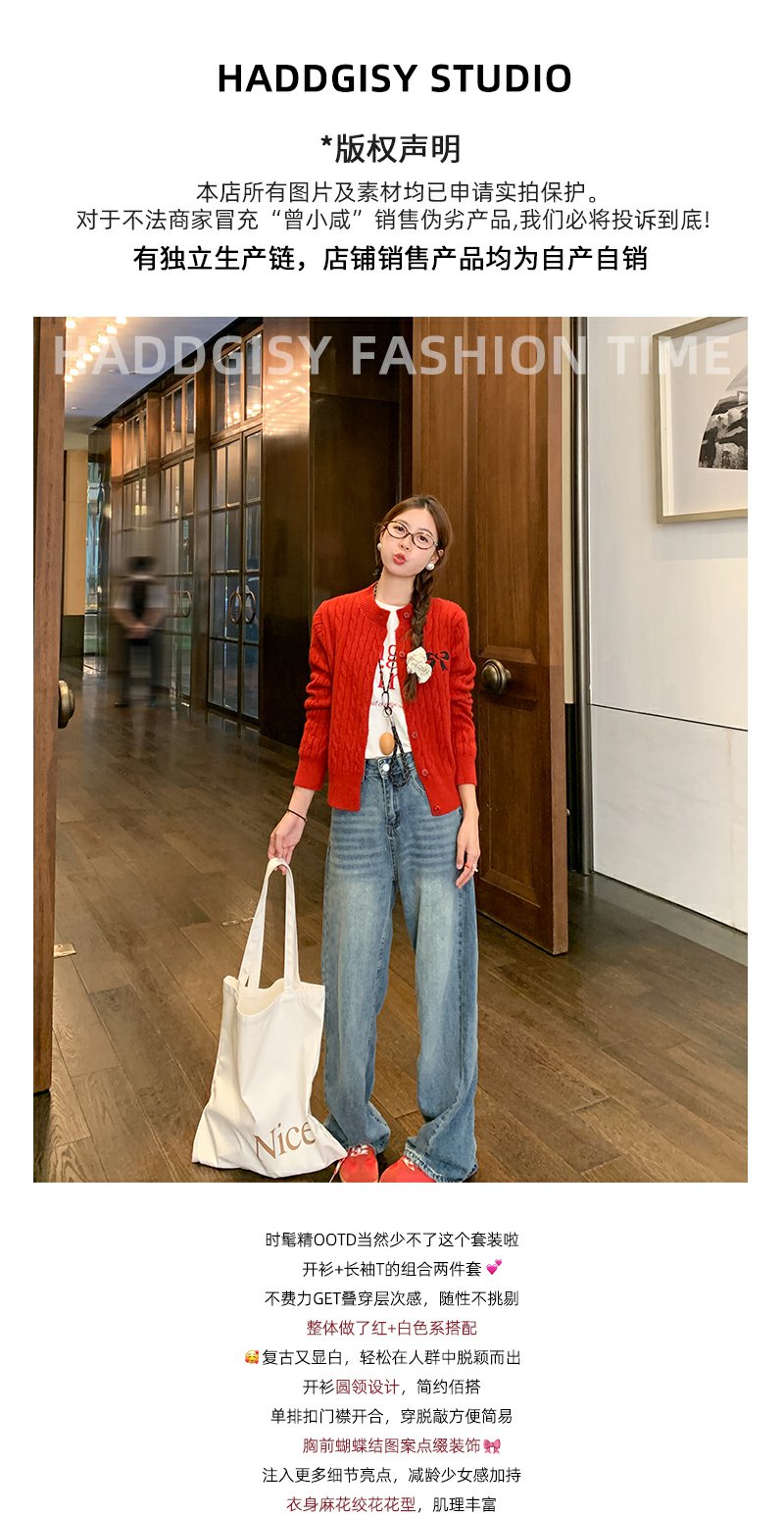 <曾小咸推荐>红色开衫+字母T恤+高腰牛仔裤