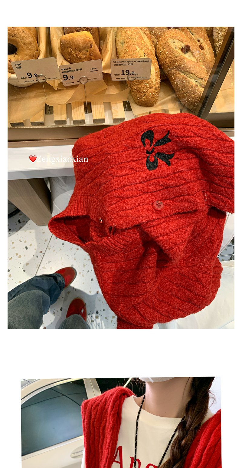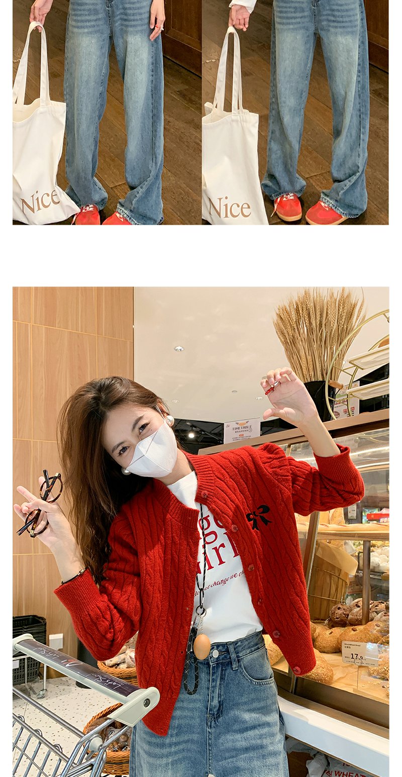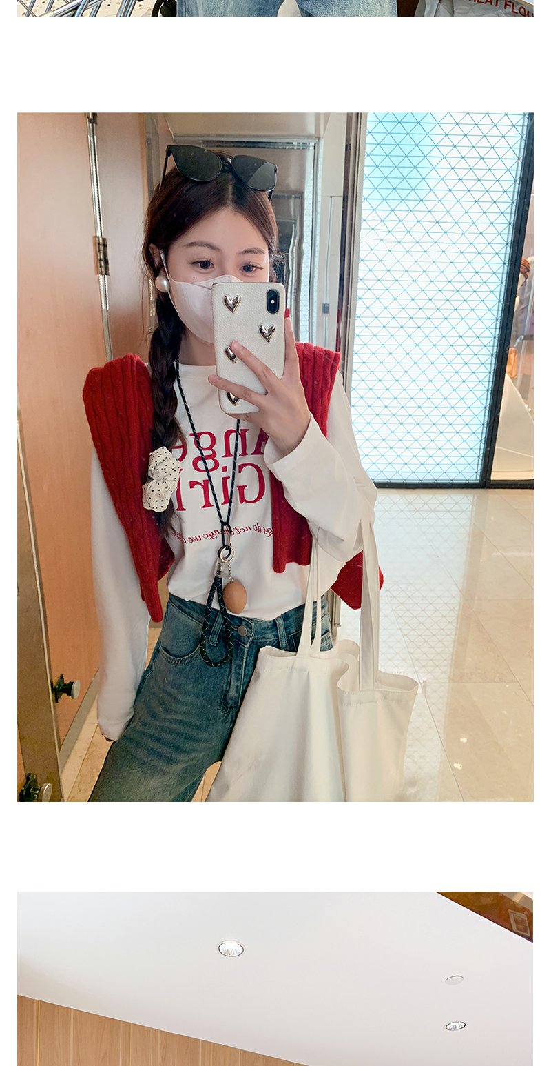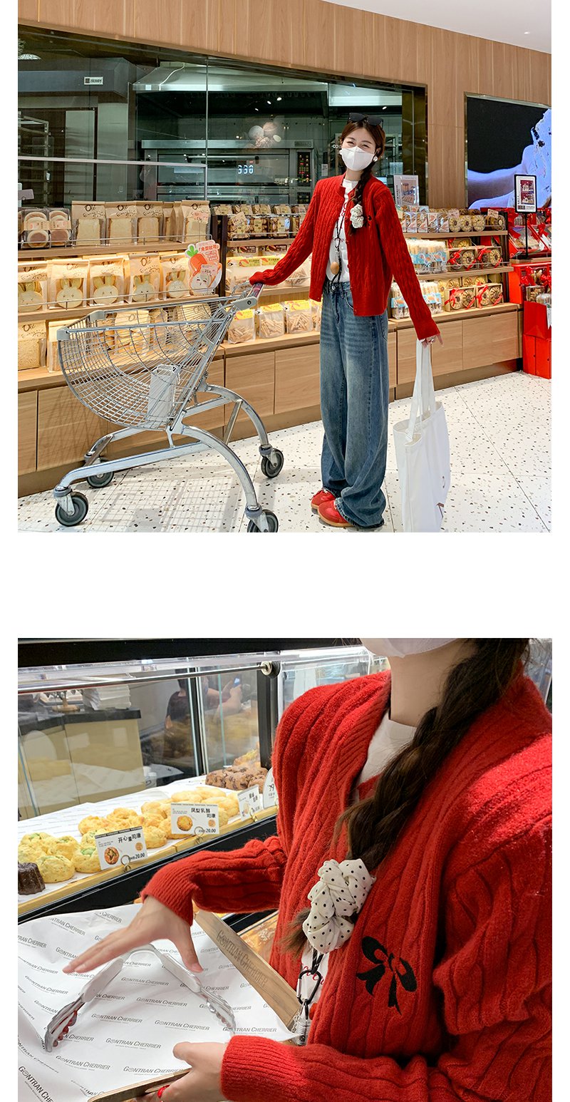 <曾小咸推荐>红色开衫+字母T恤+高腰牛仔裤