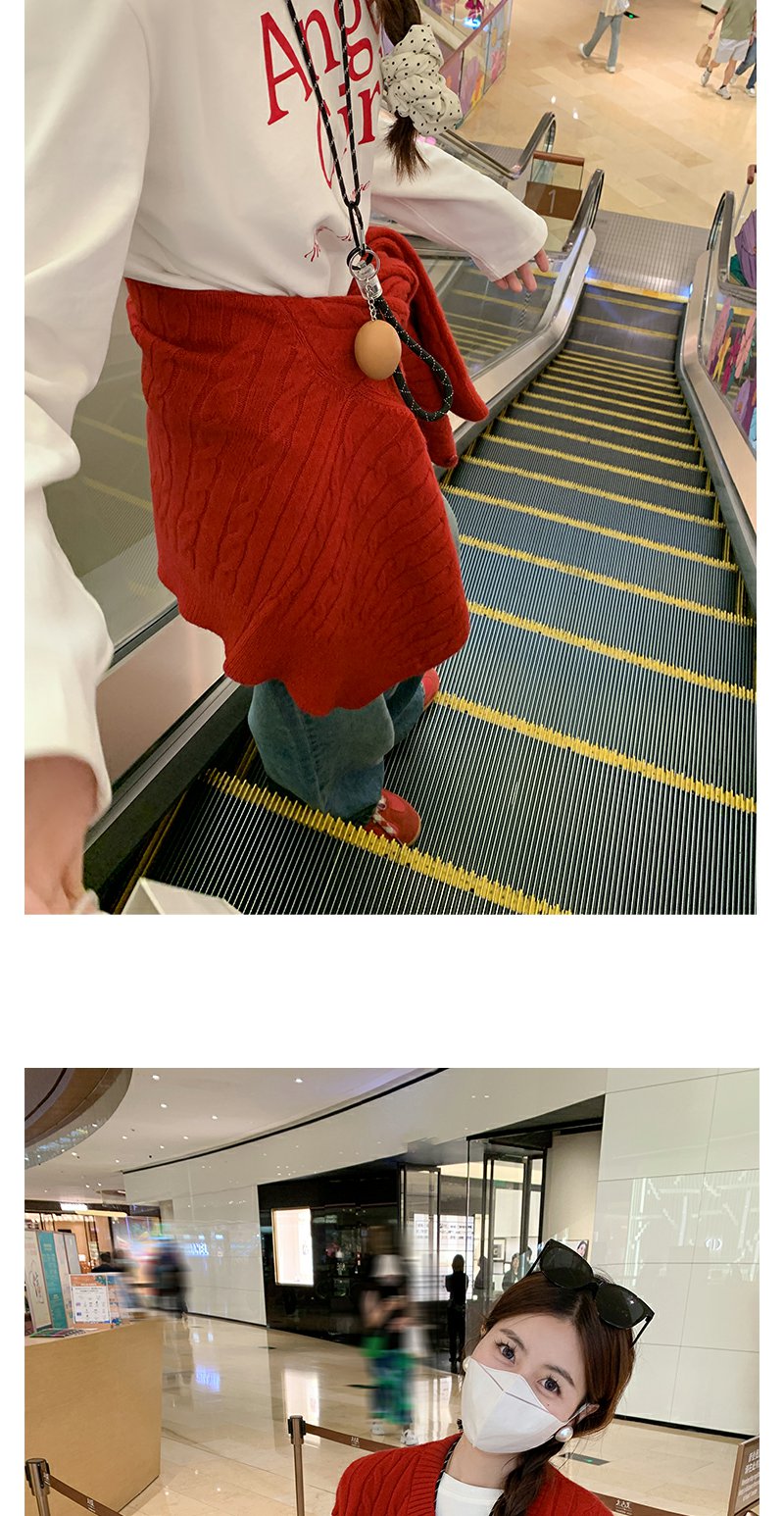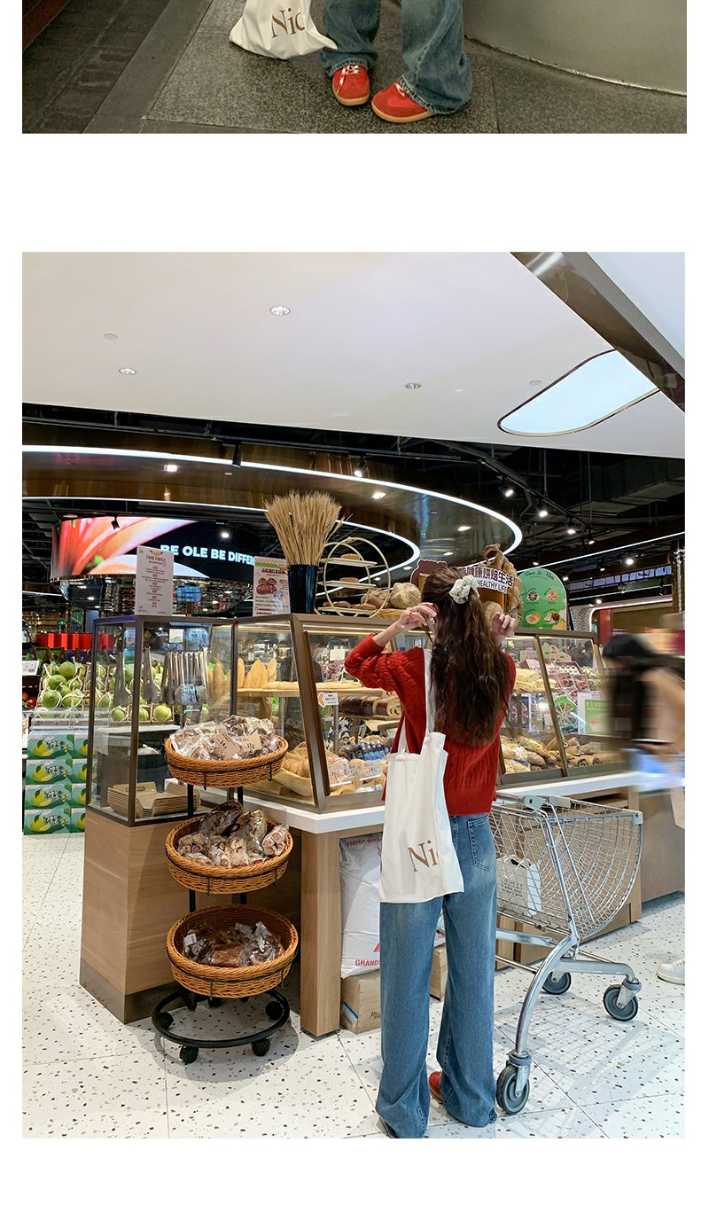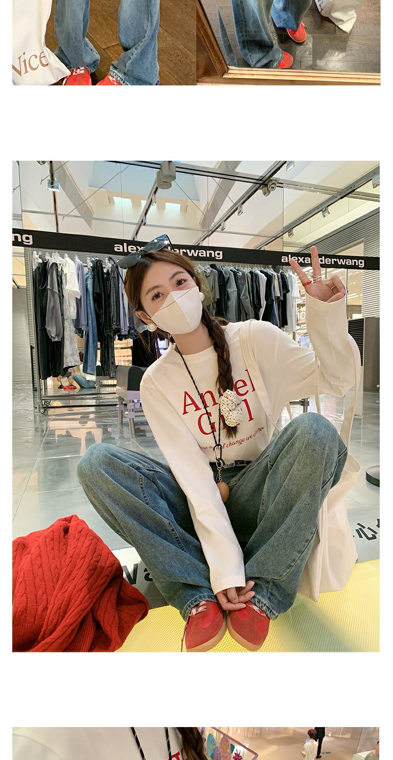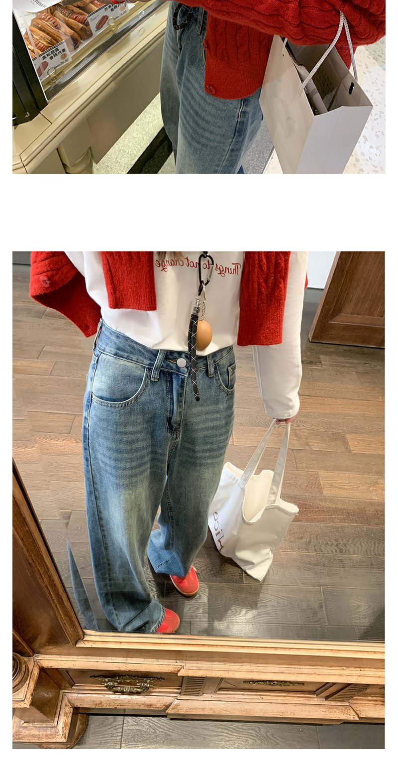 <曾小咸推荐>红色开衫+字母T恤+高腰牛仔裤