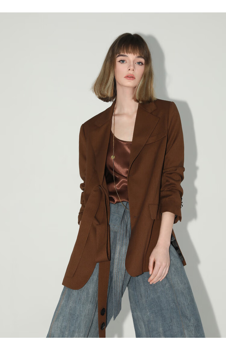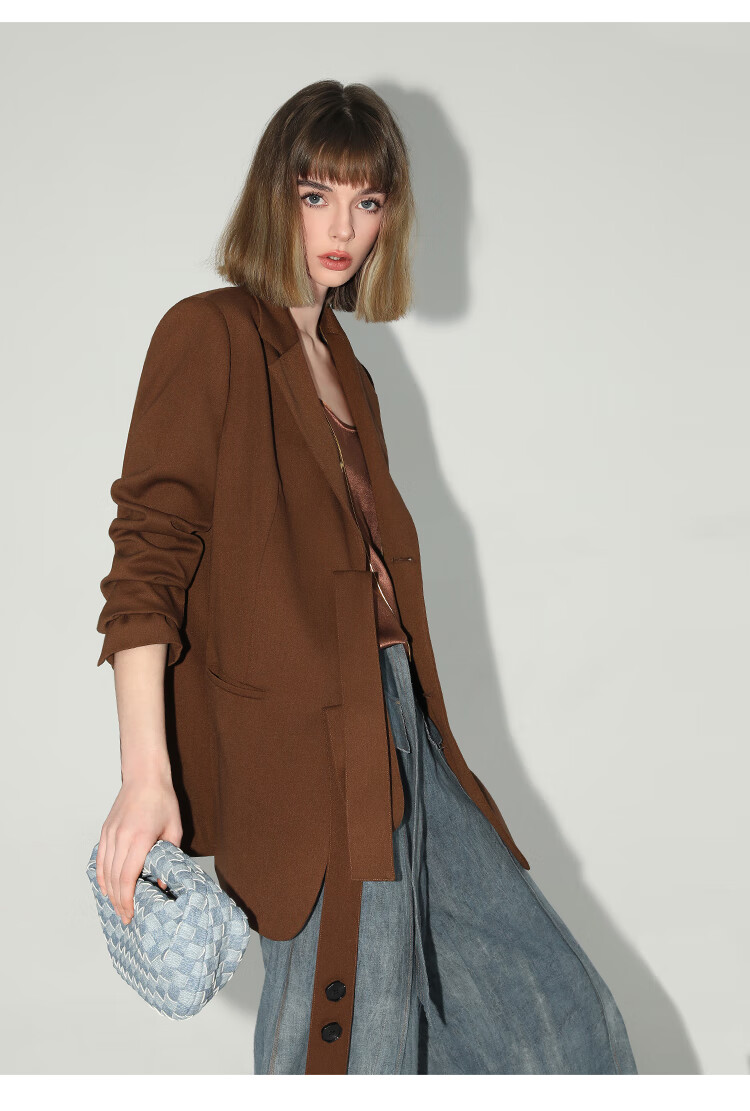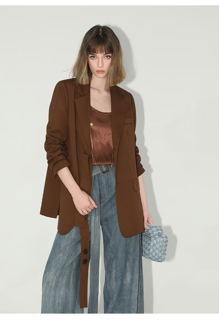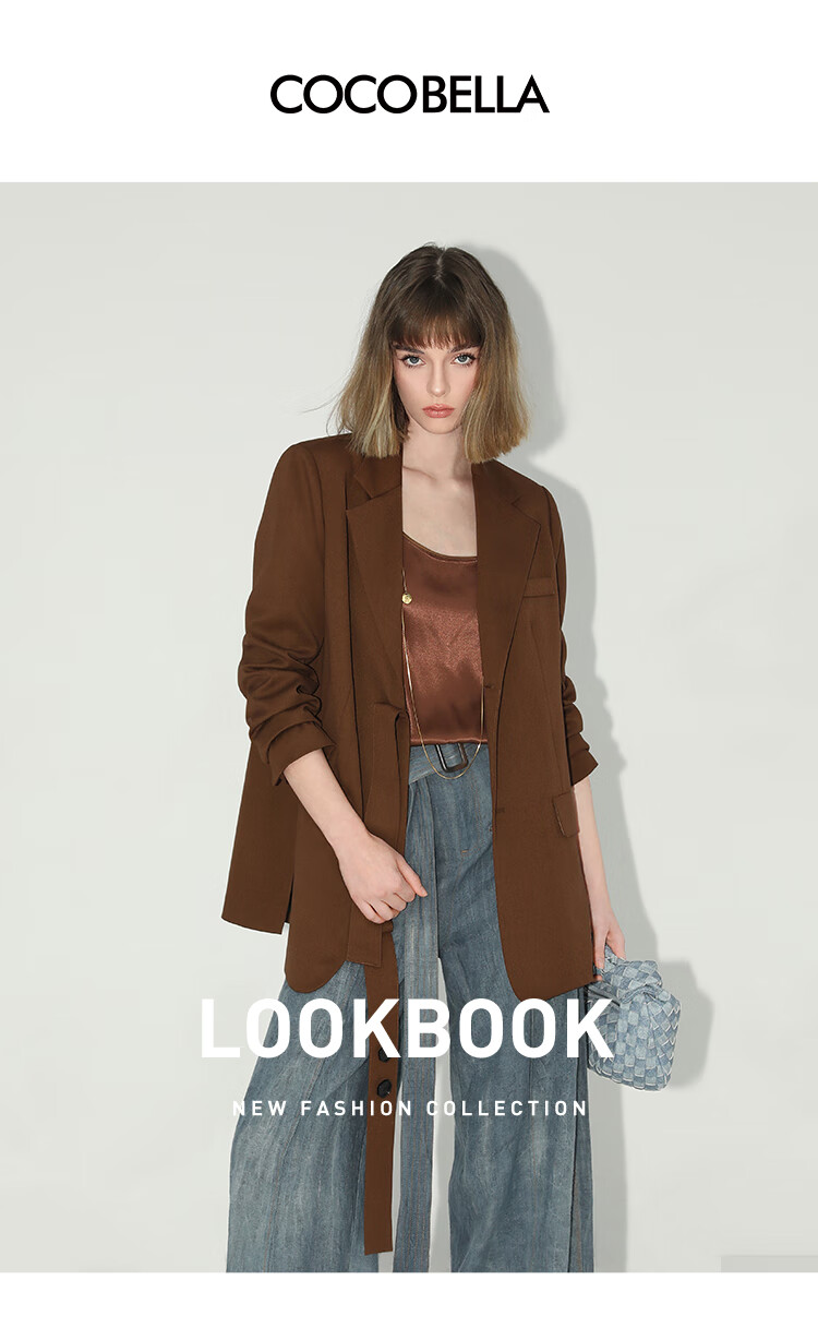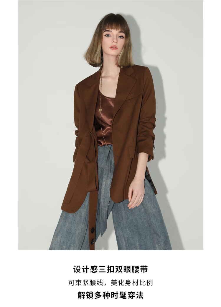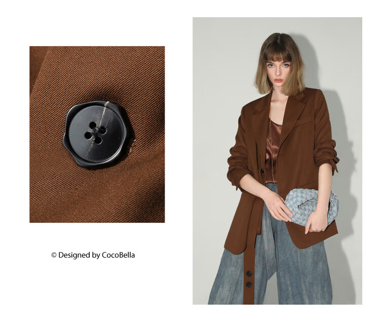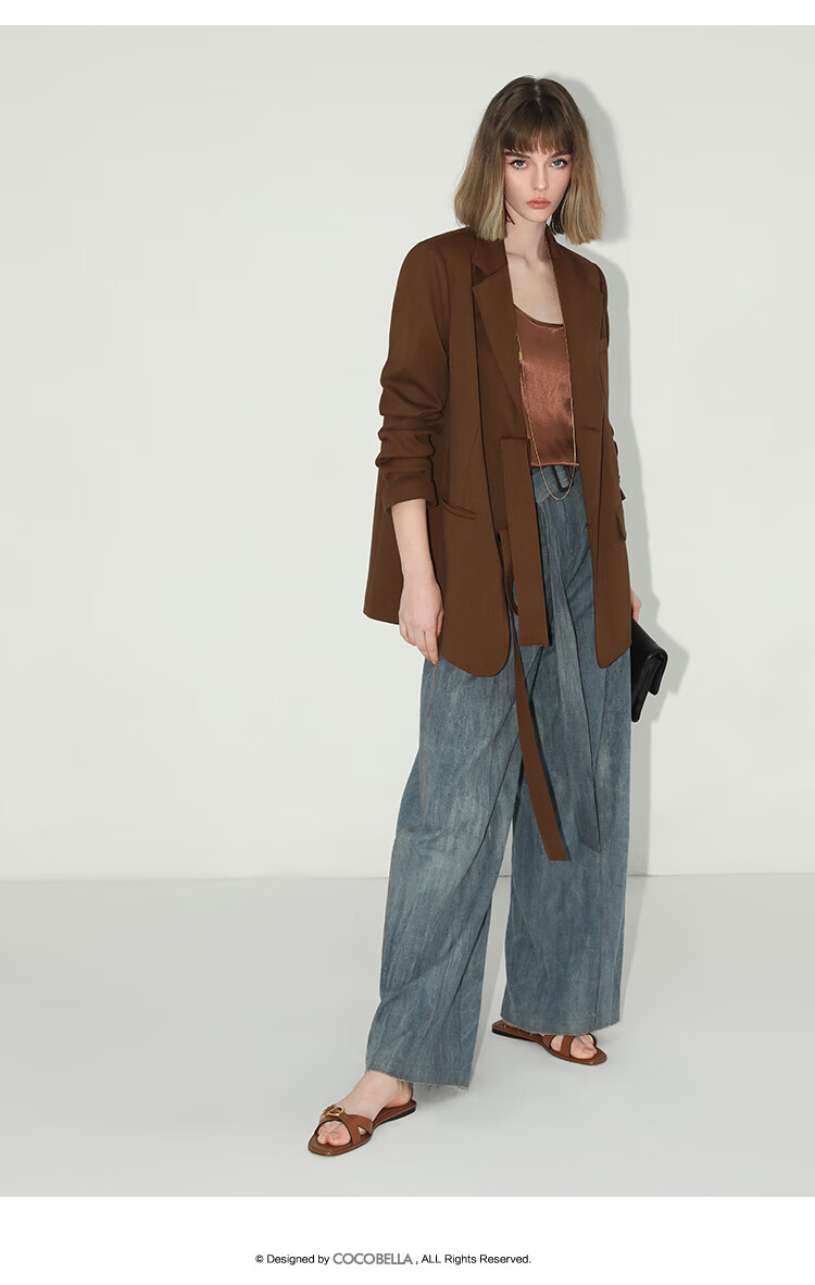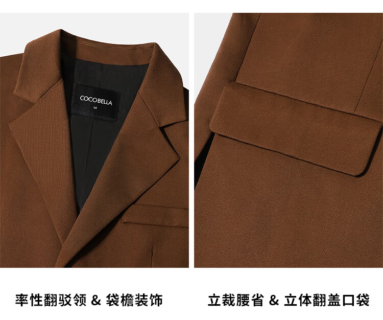 COCOBELLA美拉德穿搭开叉精纺西装多穿法腰带通勤西服SI3002