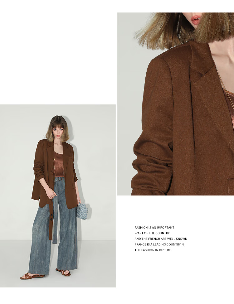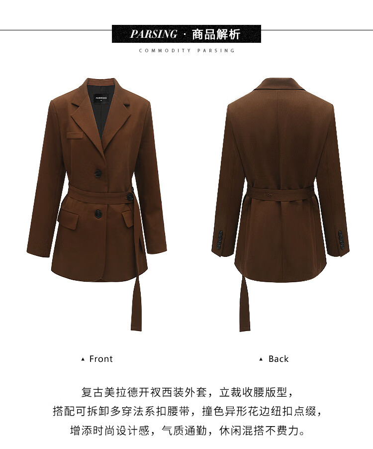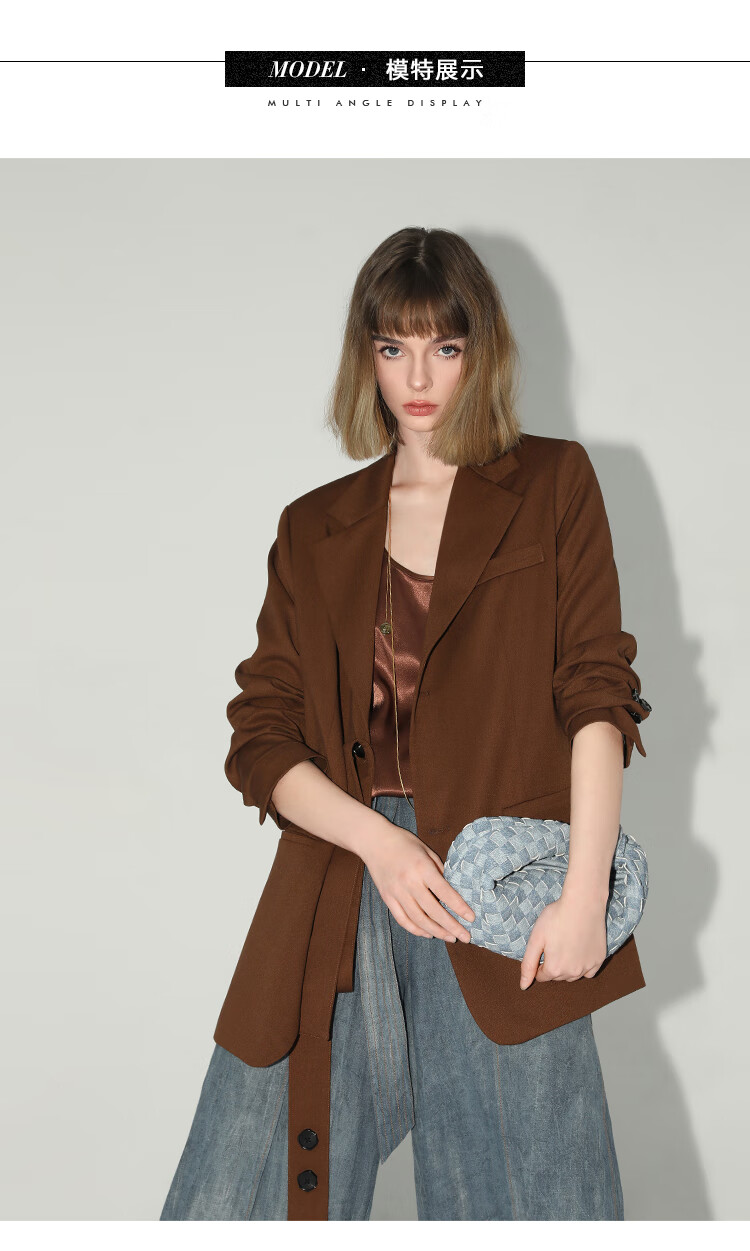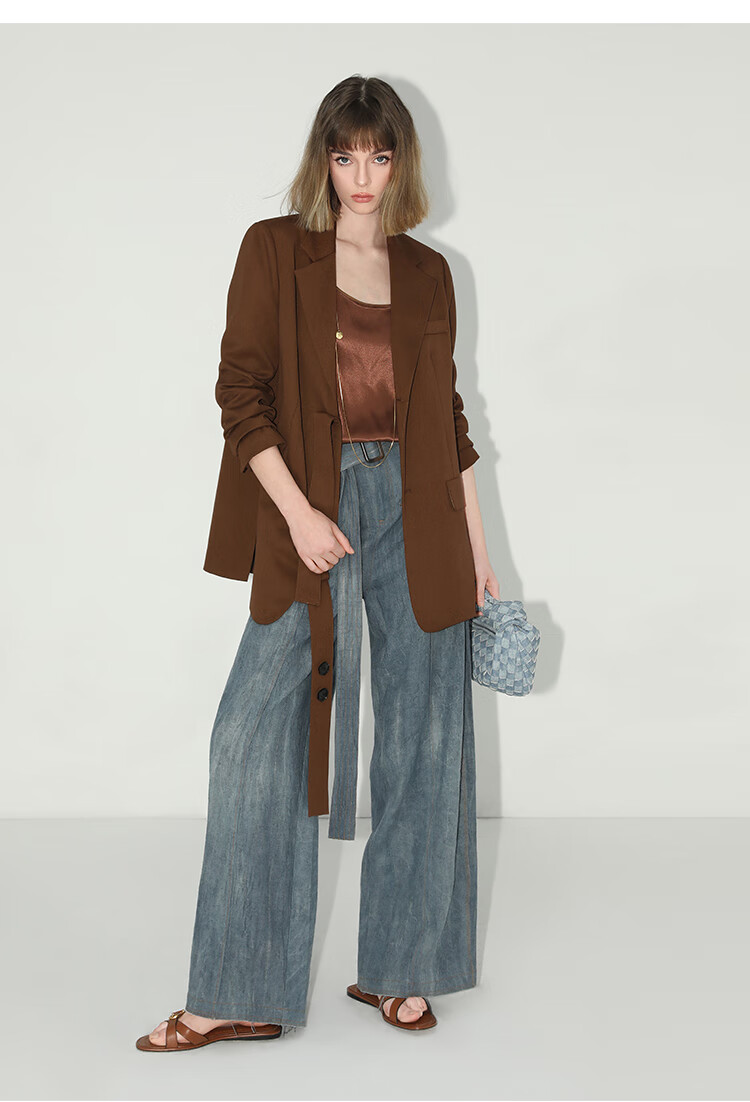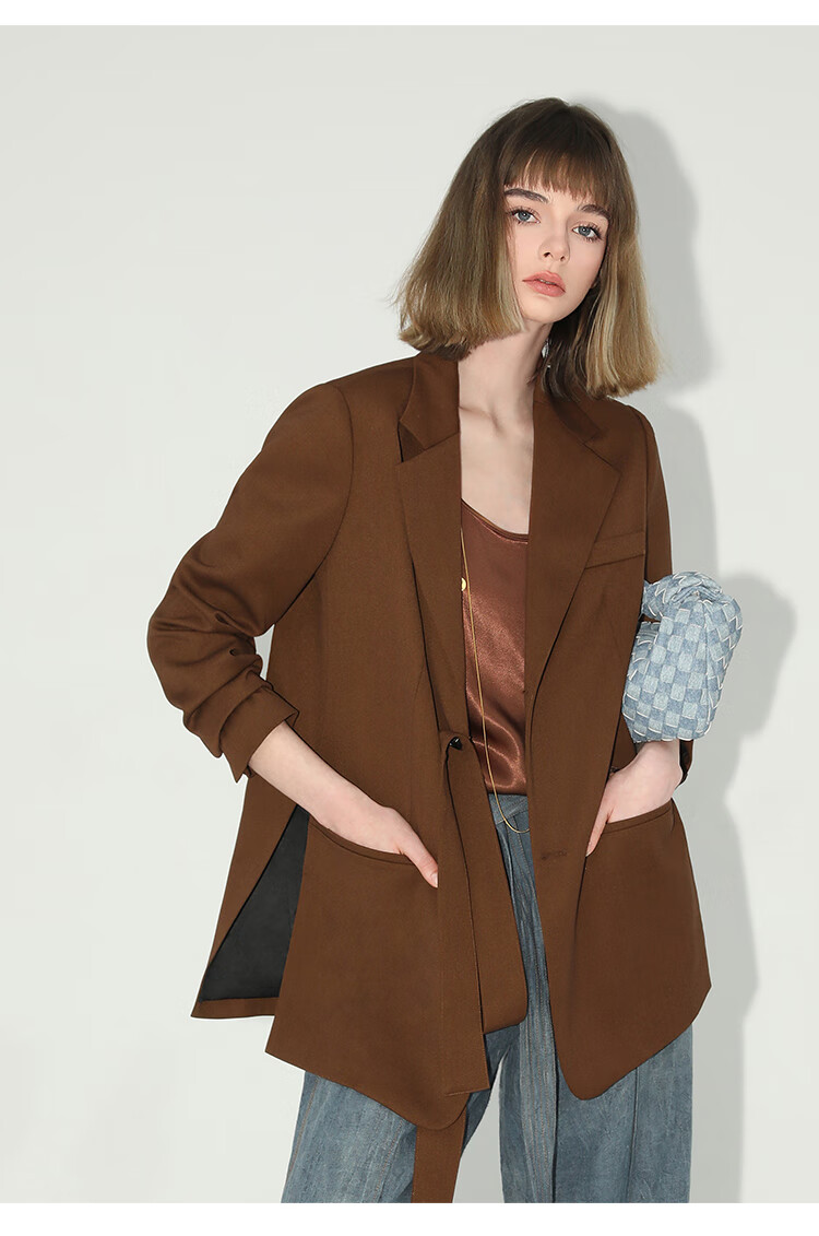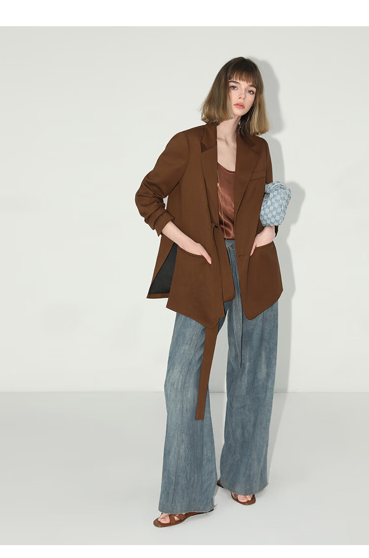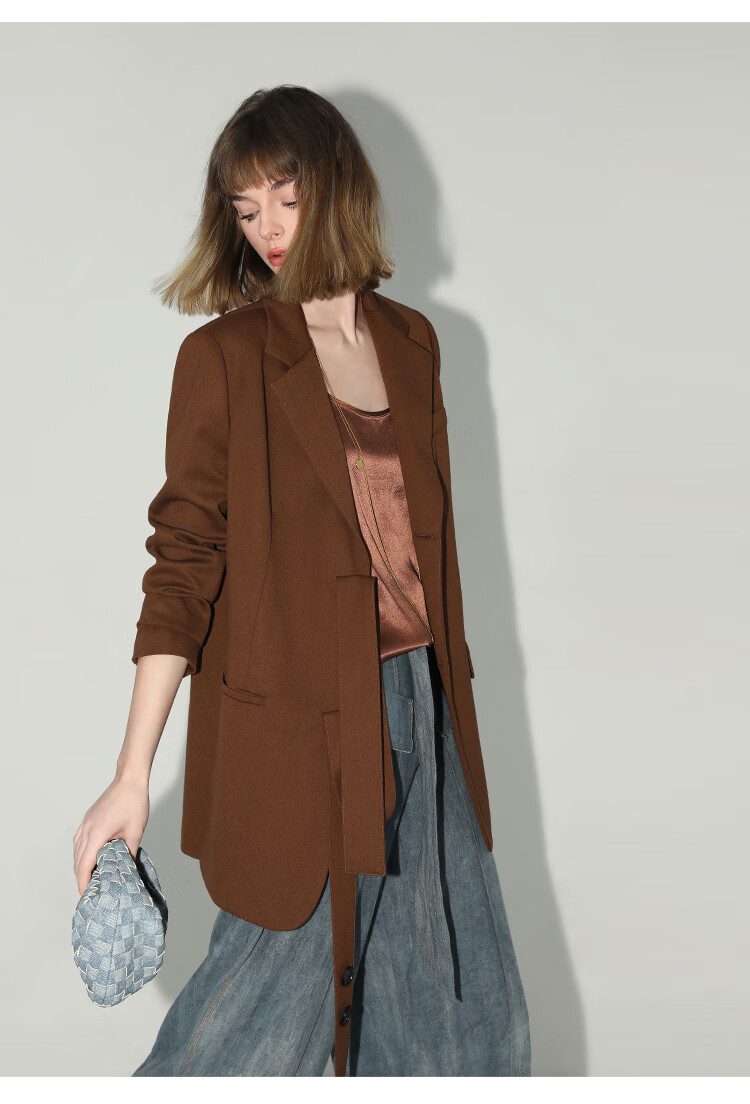 COCOBELLA美拉德穿搭开叉精纺西装多穿法腰带通勤西服SI3002