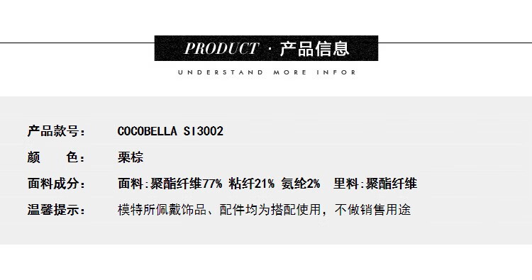 - COCOBELLA-极具时尚前瞻性高街品牌,将多元的潮流时装文化和设计理念融入设计中,打造最新、最火热、最流行的潮流服饰。