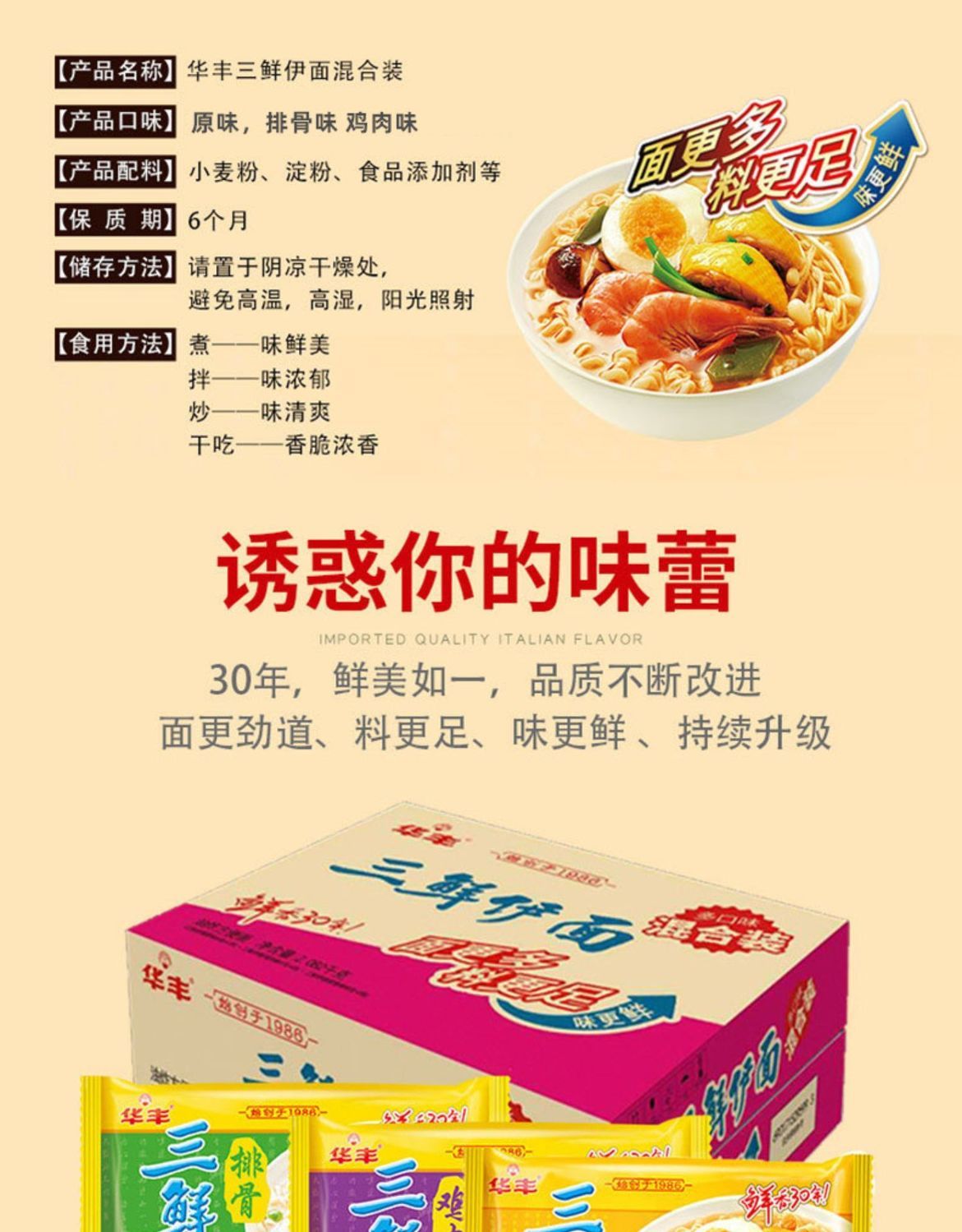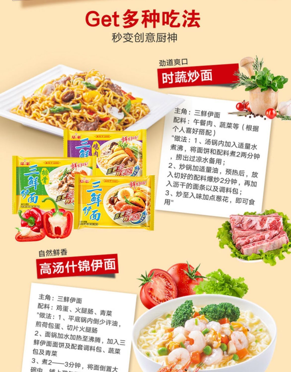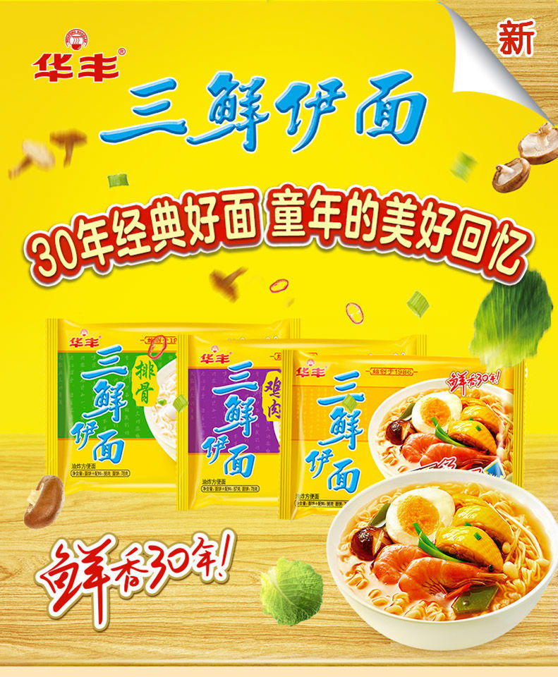 【24袋整箱】华丰三鲜伊面方便面整箱装袋装老式儿时怀旧干脆面泡面零食 粮油米面