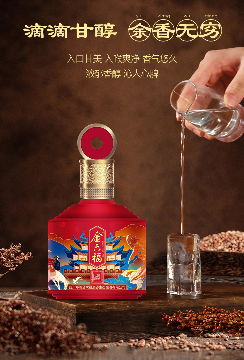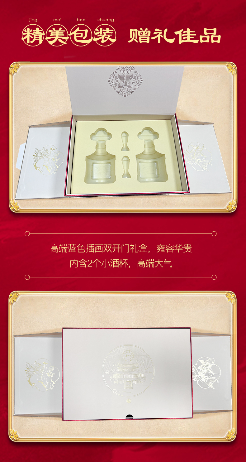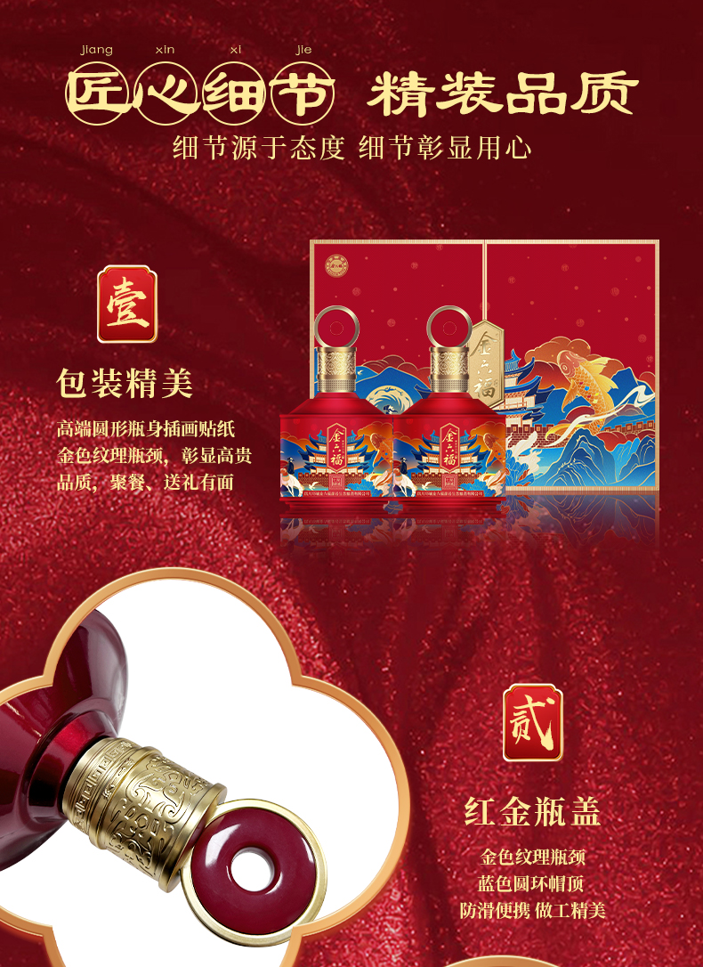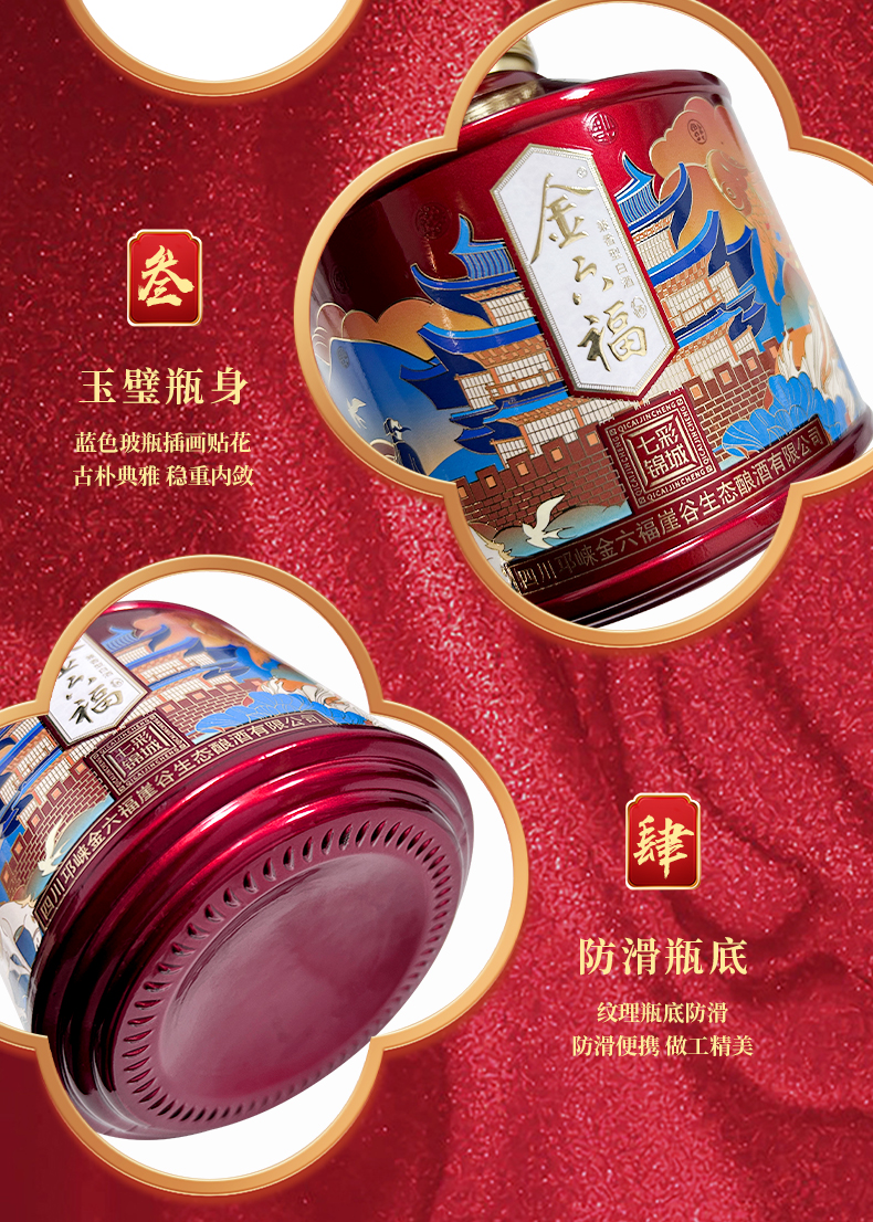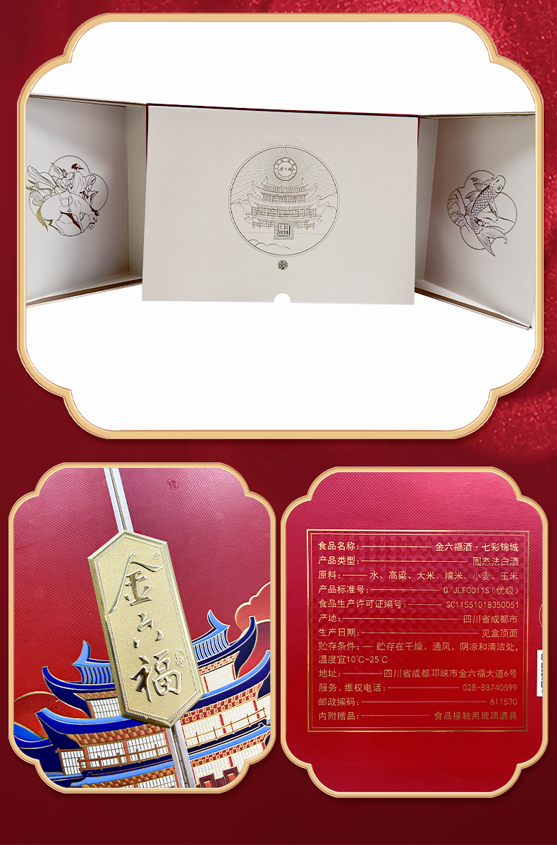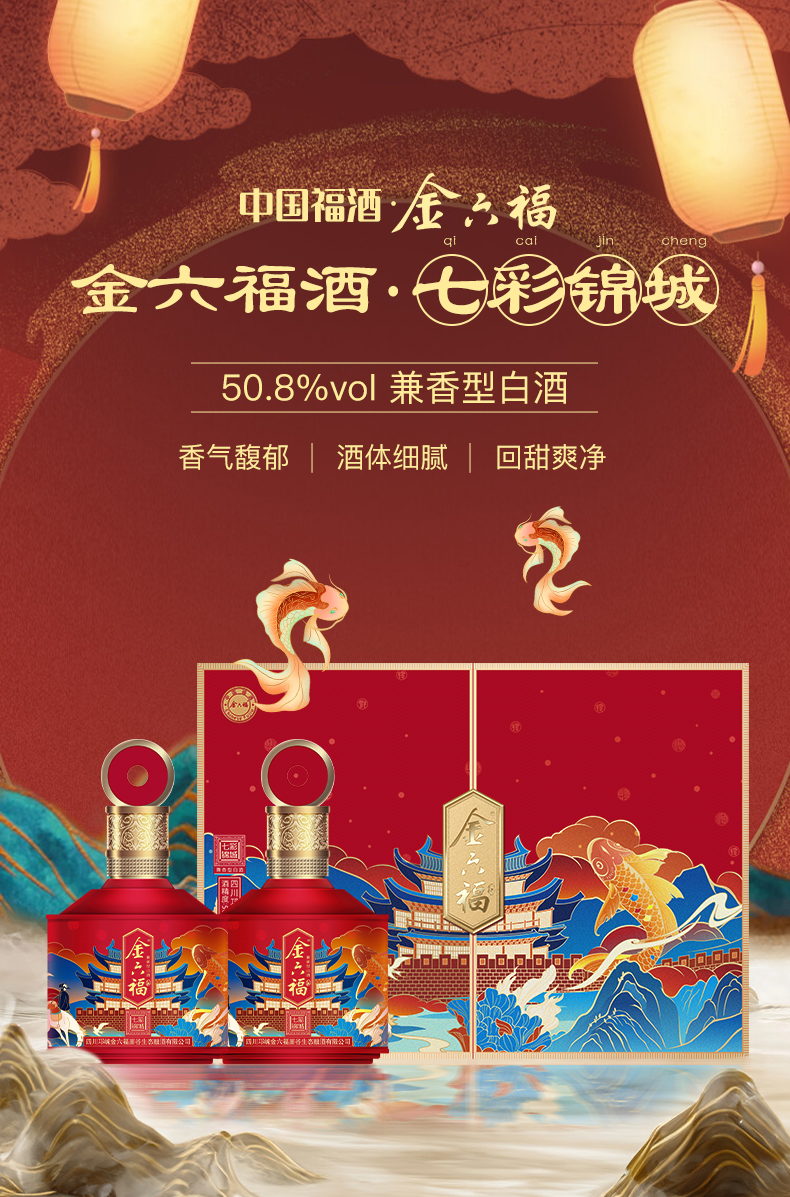 金六福酒七彩锦城50.8度双支礼盒装500mL*2瓶(红色)