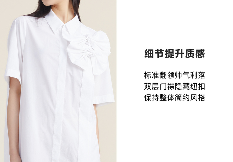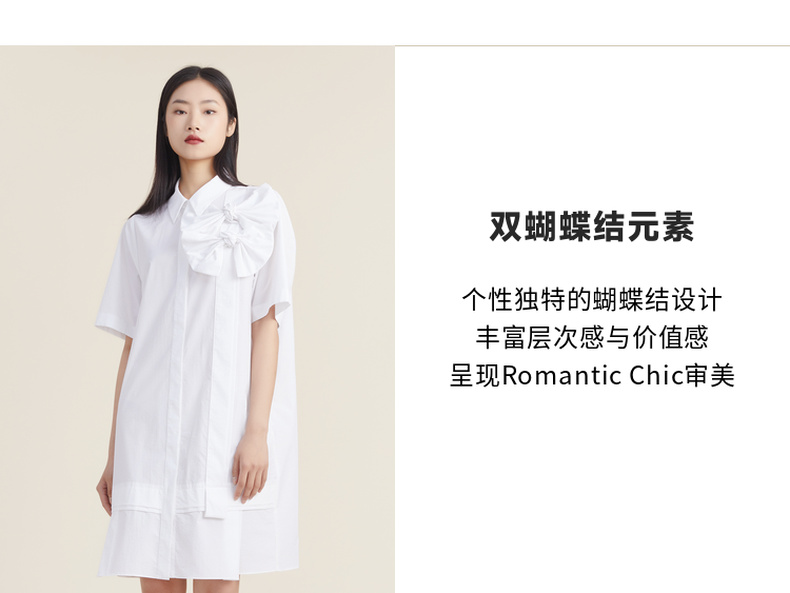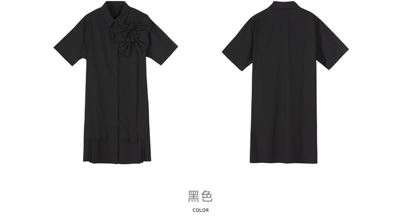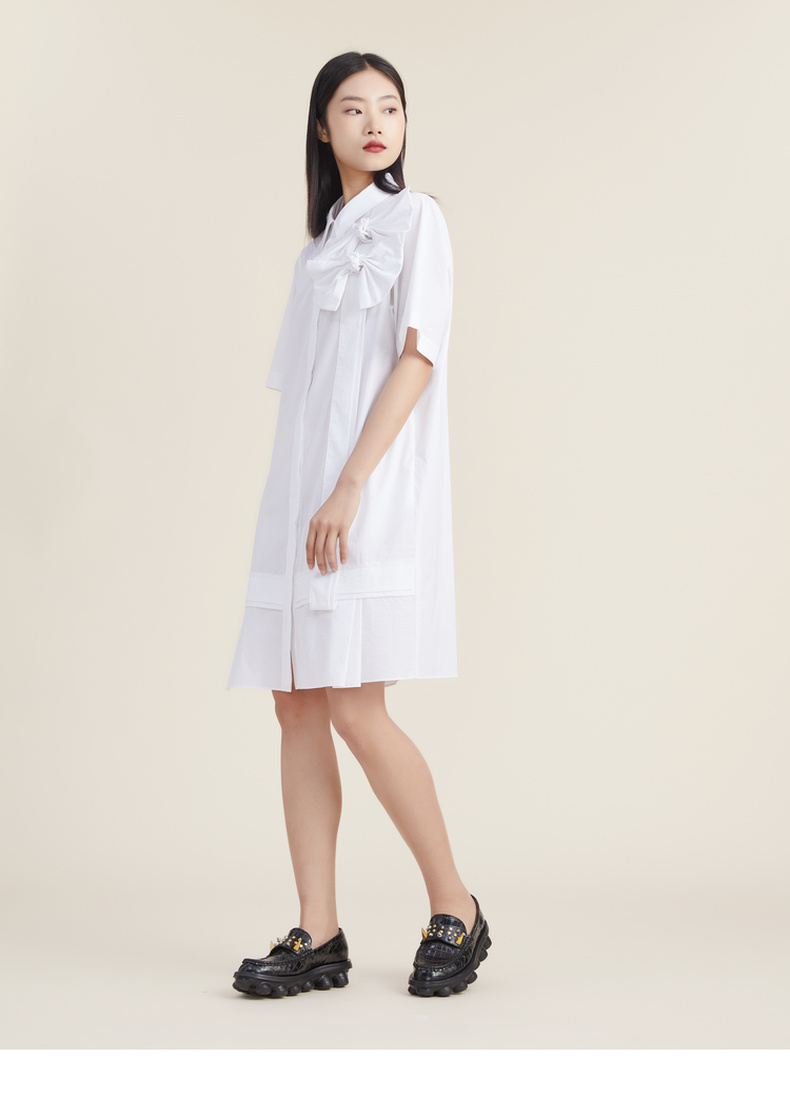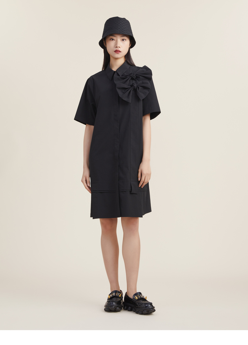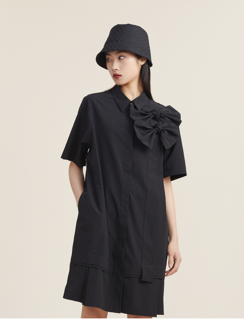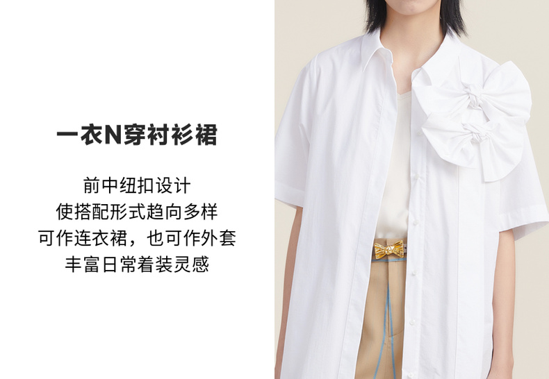 谜底短袖衬衫连衣裙2022秋新品设计立体蝴蝶结中长裙223ML1107
