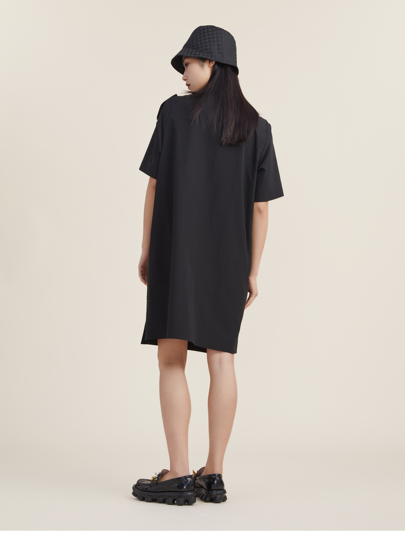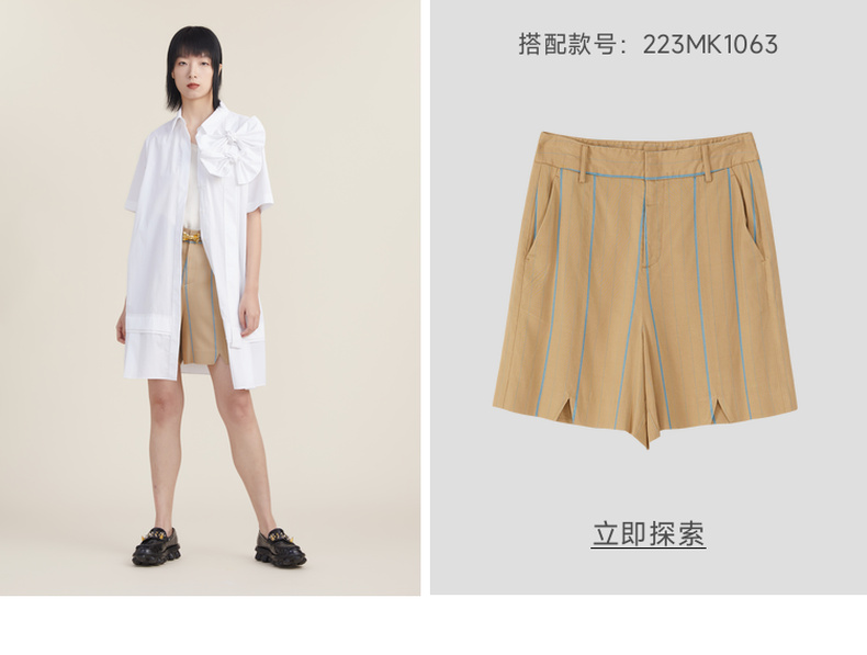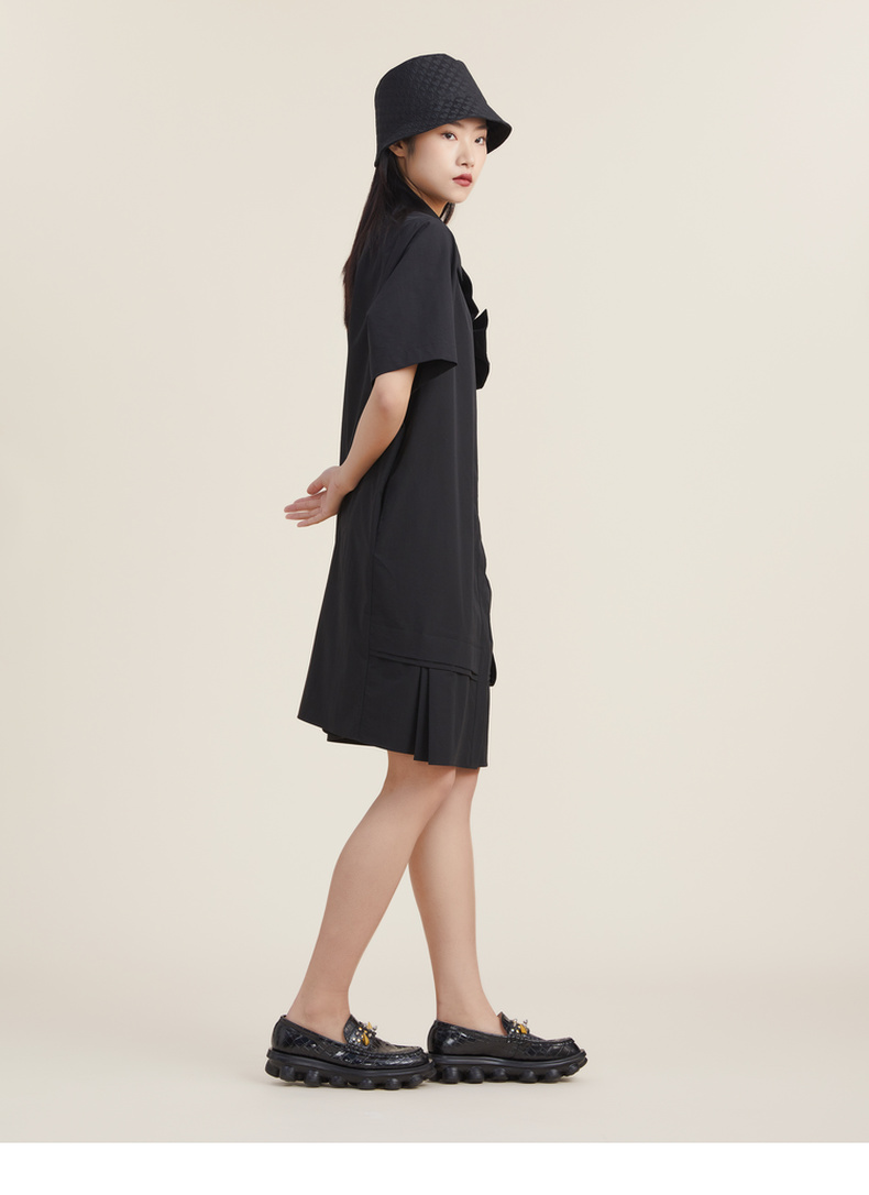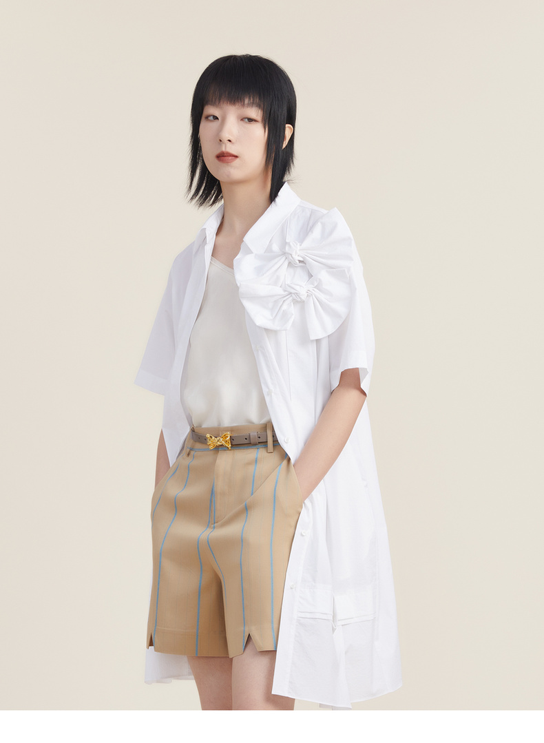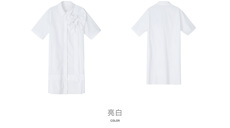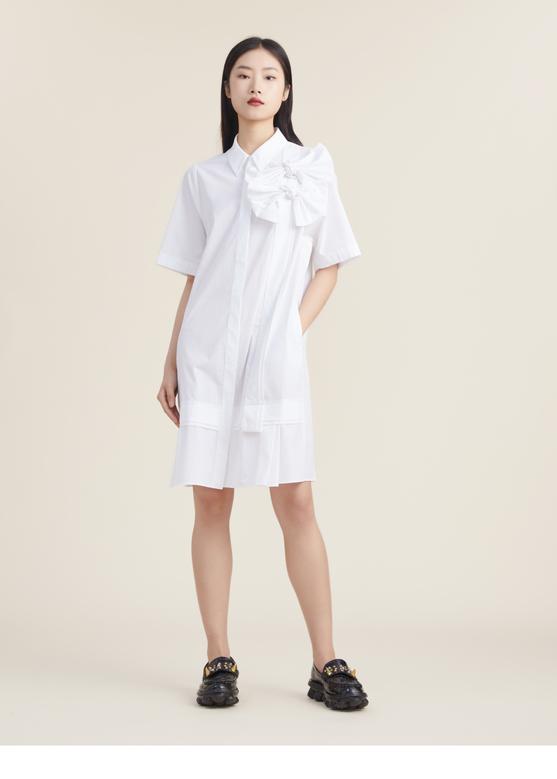 谜底短袖衬衫连衣裙2022秋新品设计立体蝴蝶结中长裙223ML1107