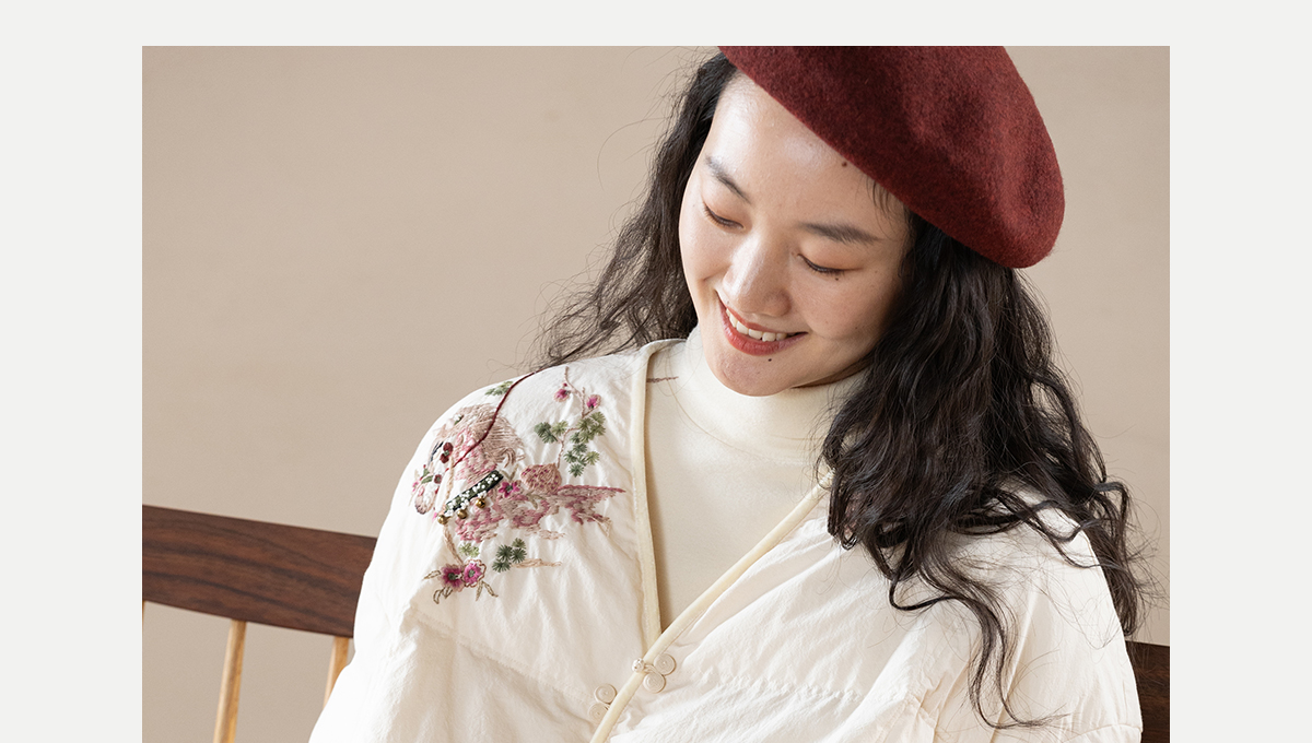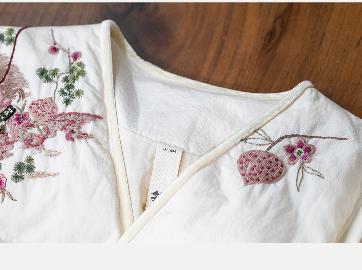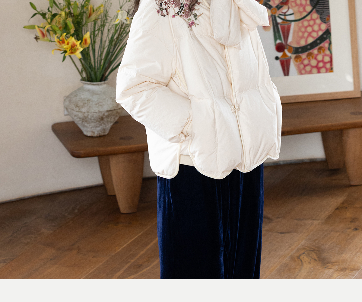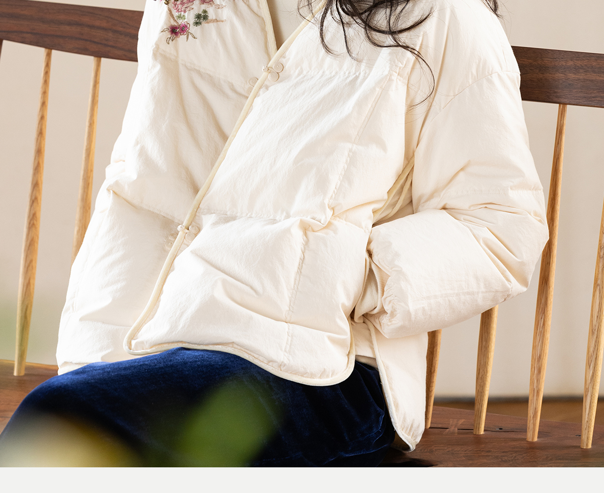 牧衣游原创 手工刺绣厚实棉红嘴雁绒短羽绒服保暖抗寒新中式 冷千