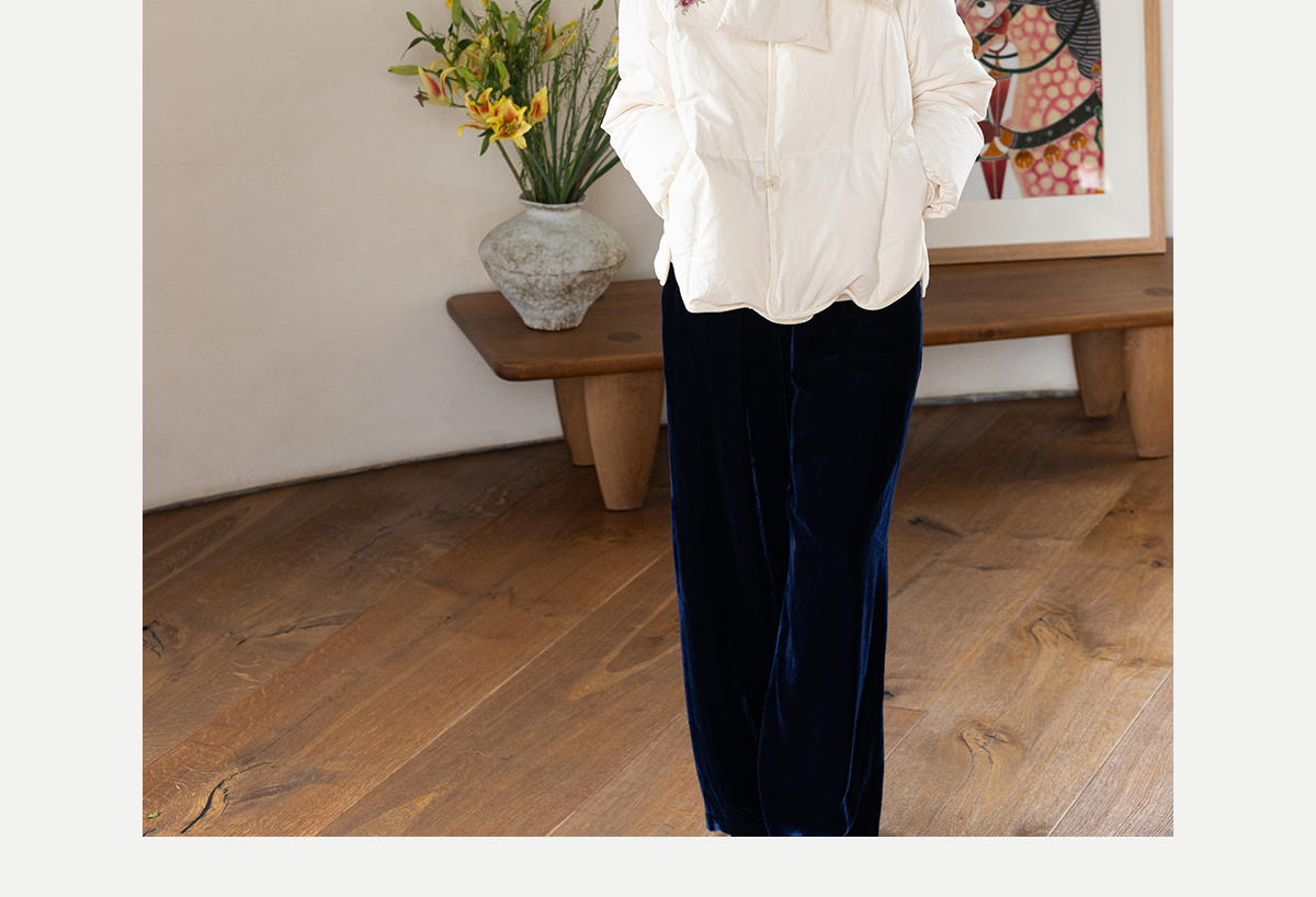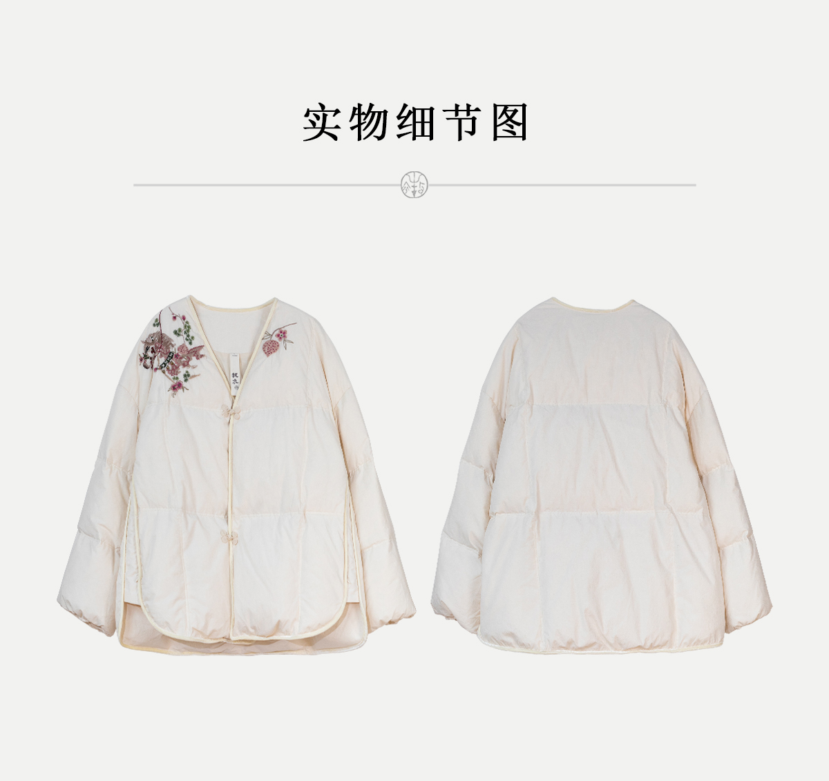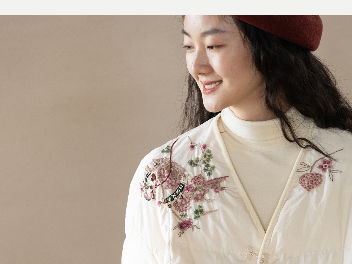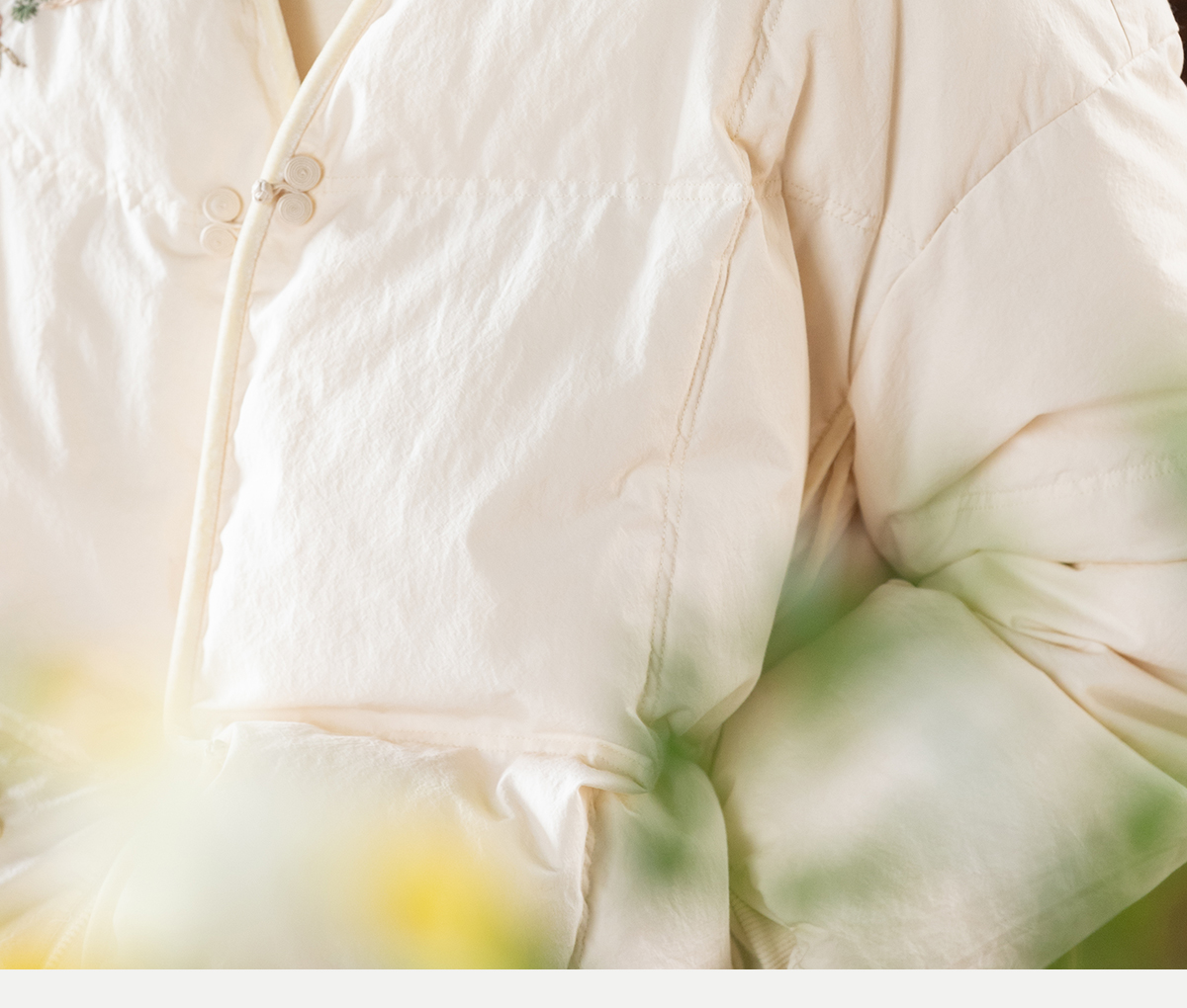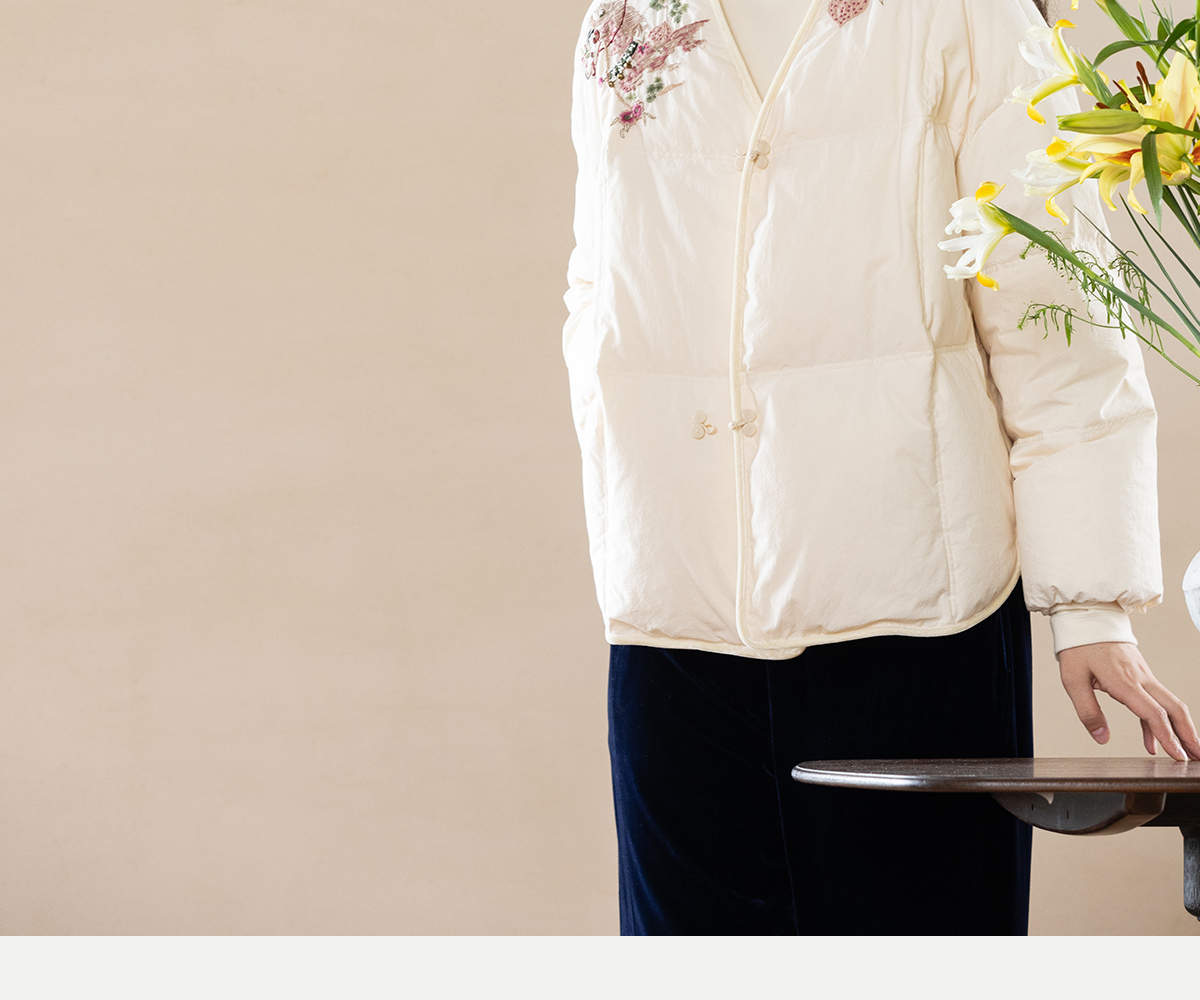 牧衣游原创 手工刺绣厚实棉红嘴雁绒短羽绒服保暖抗寒新中式 冷千